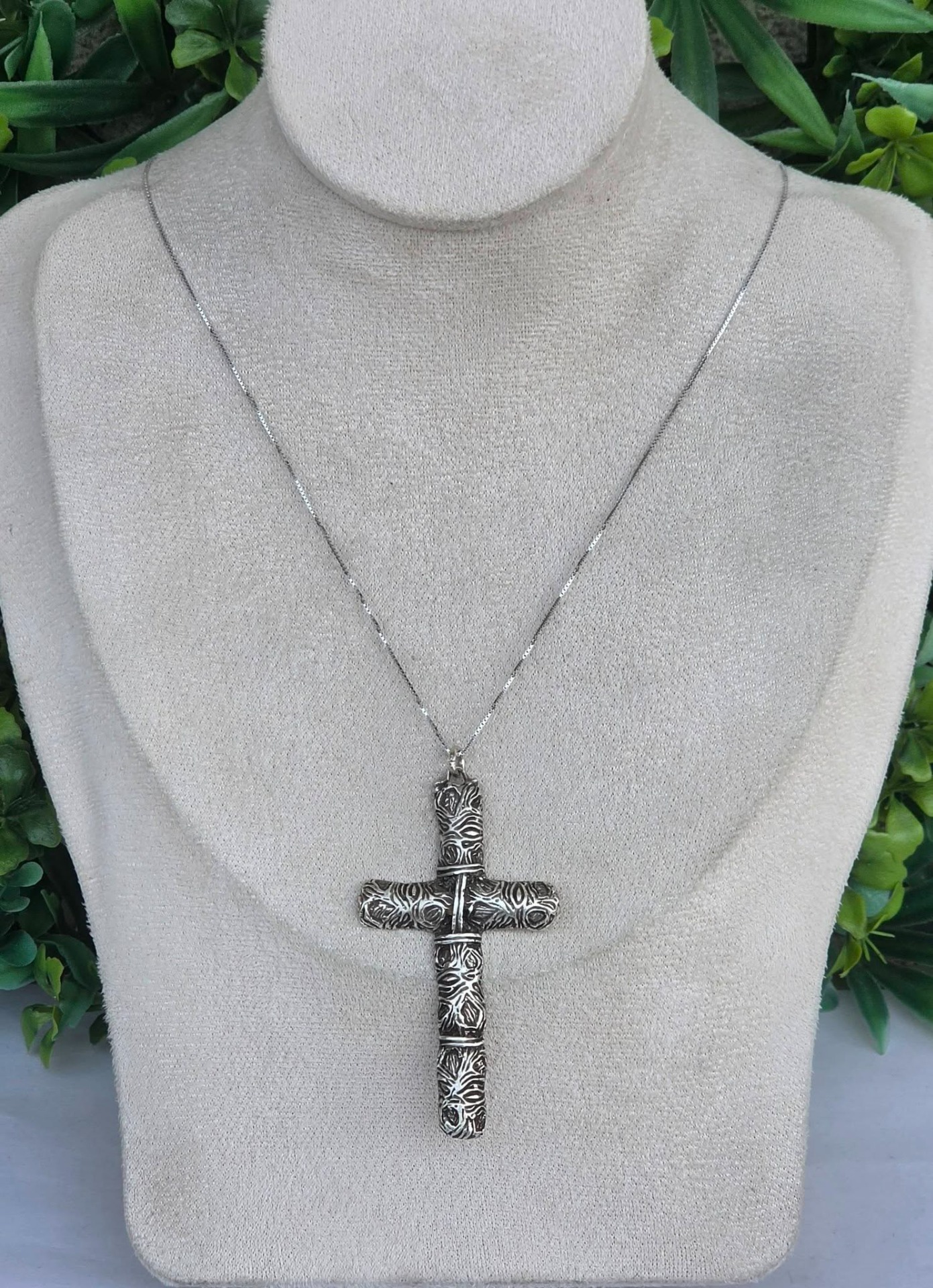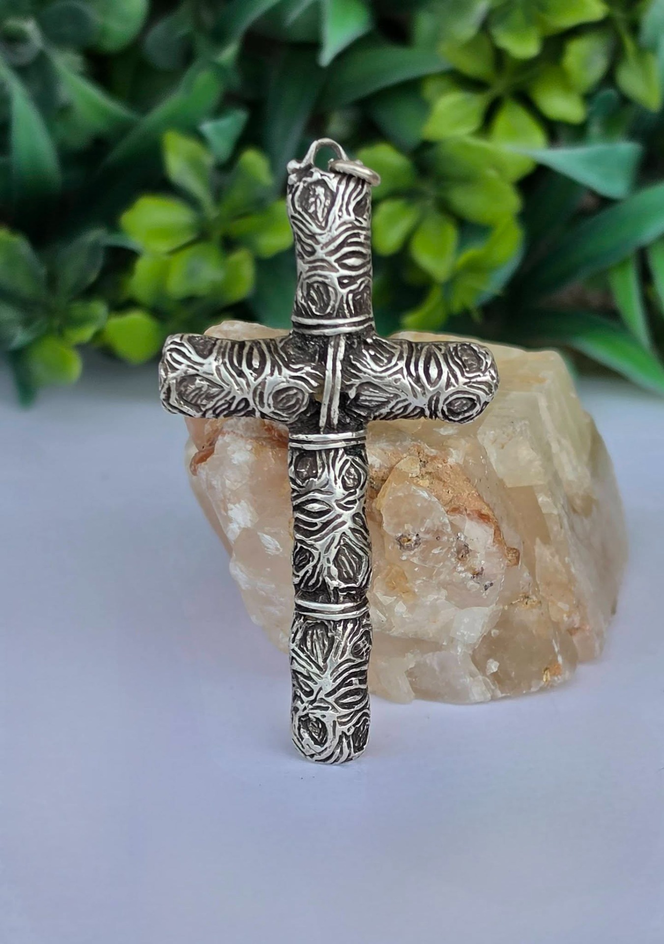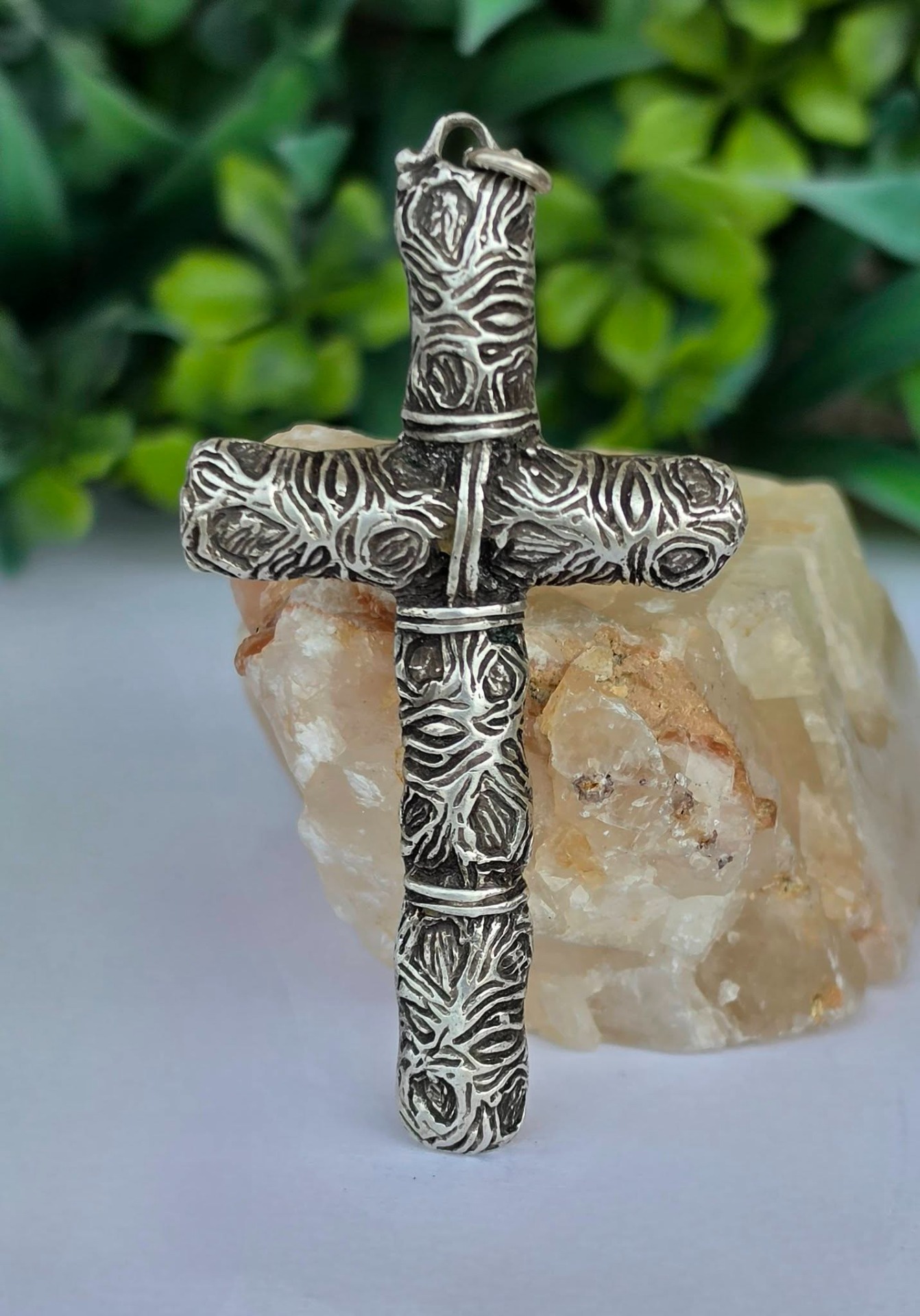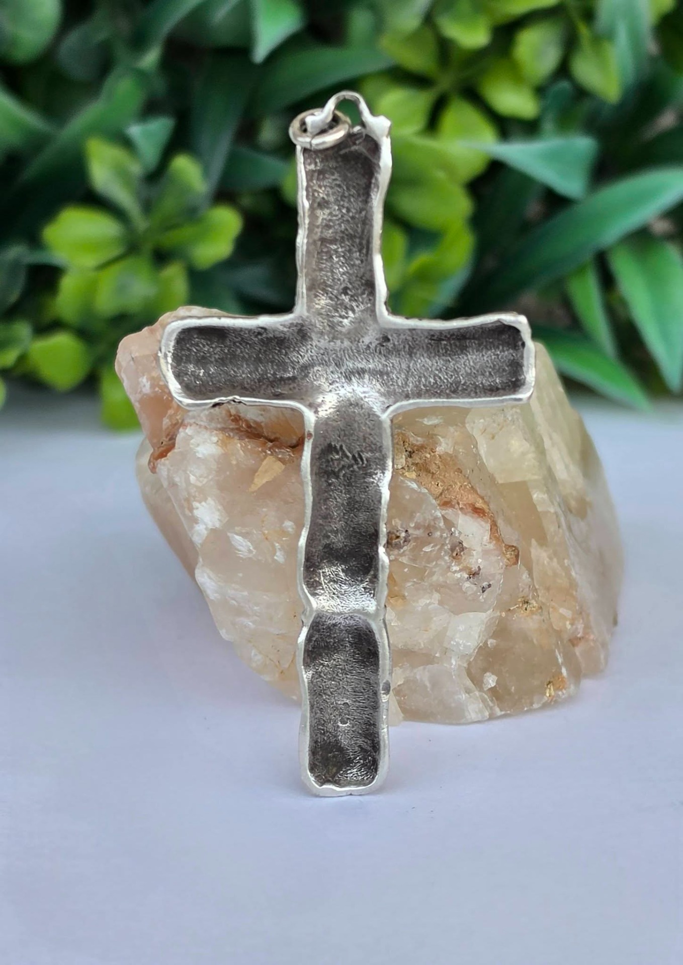 Pandantiv-cruce vechi din argint, manufactură deosebită în stil brutalist