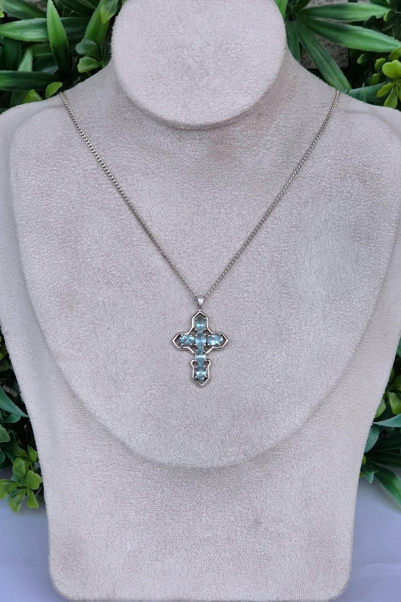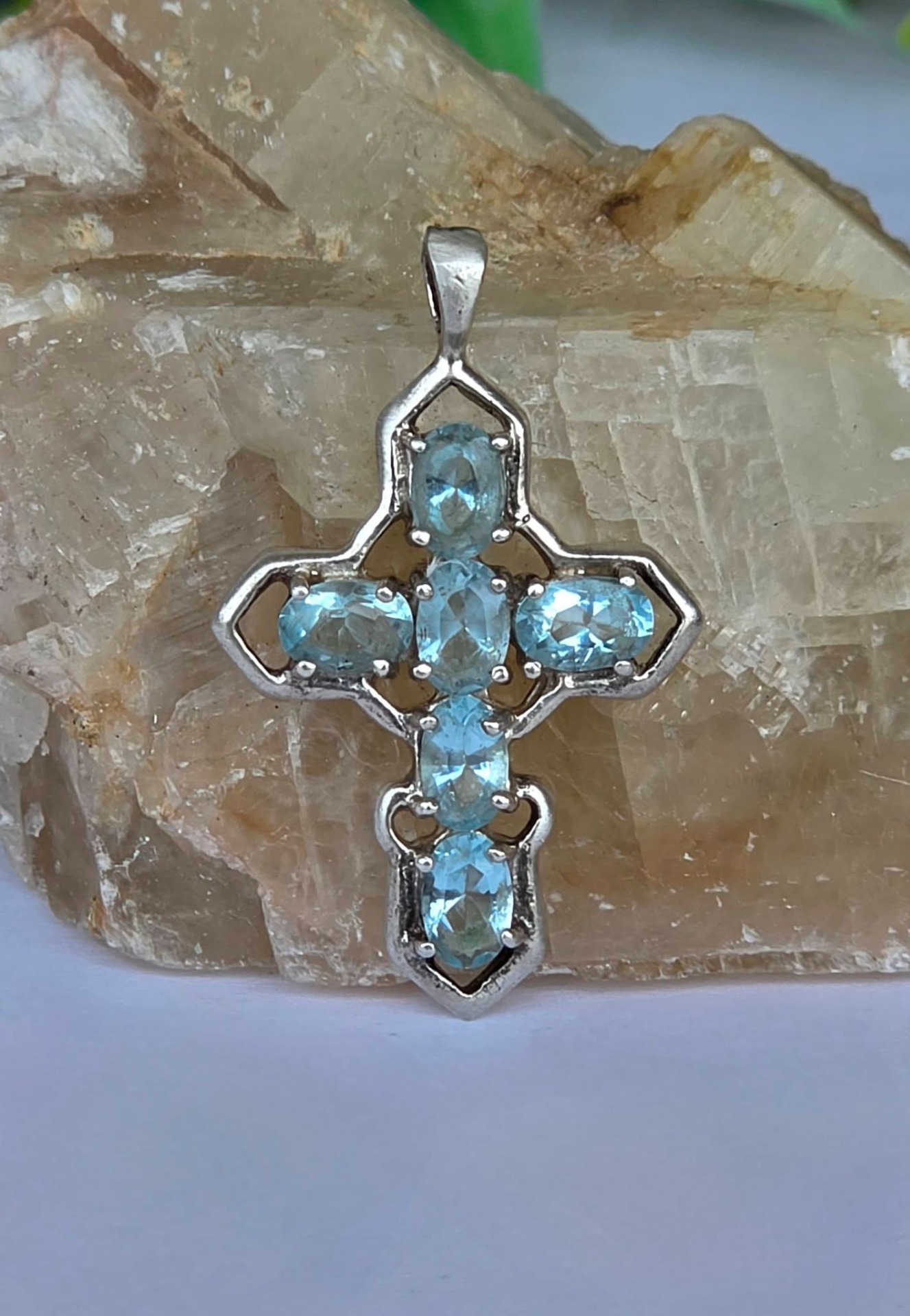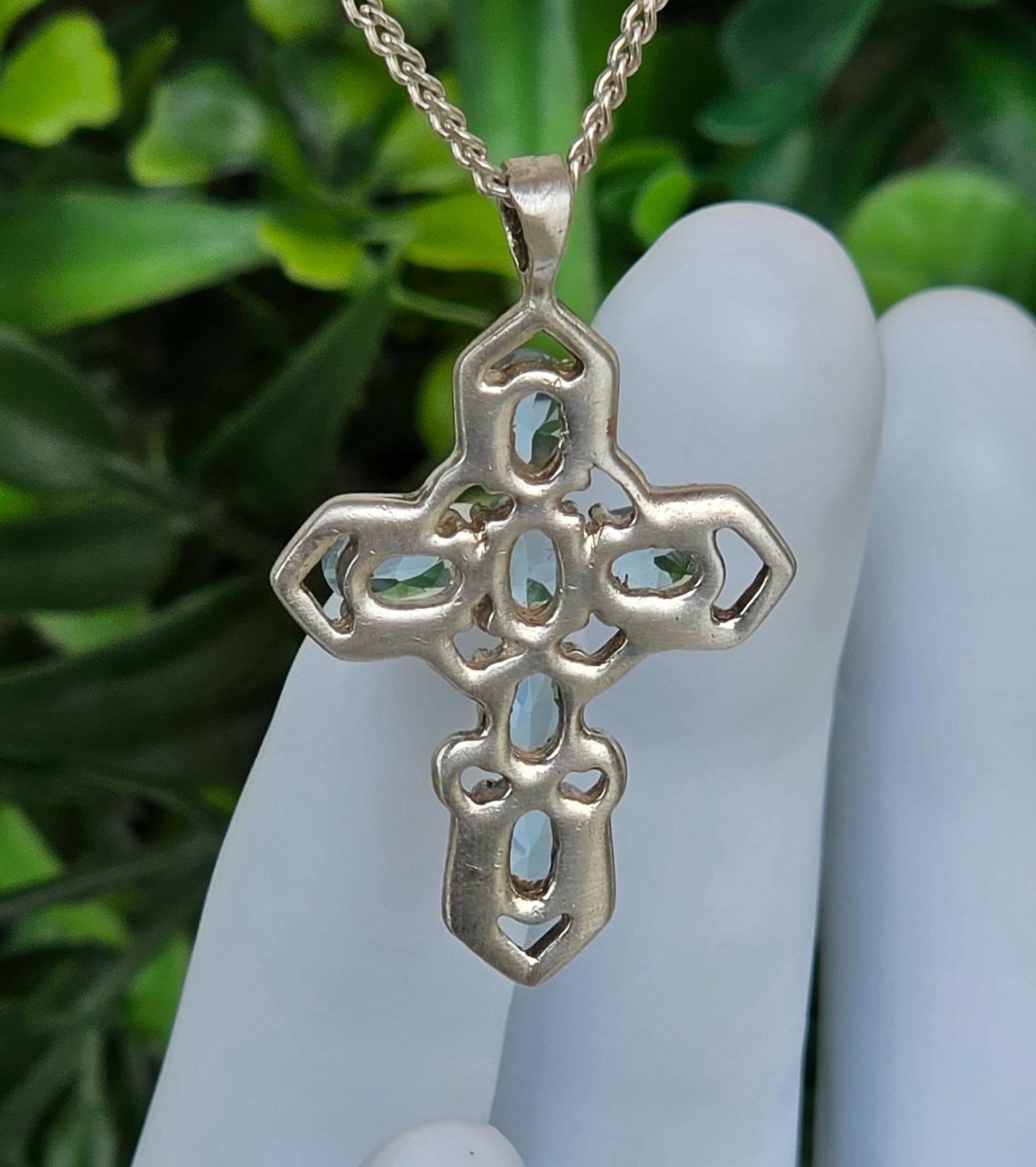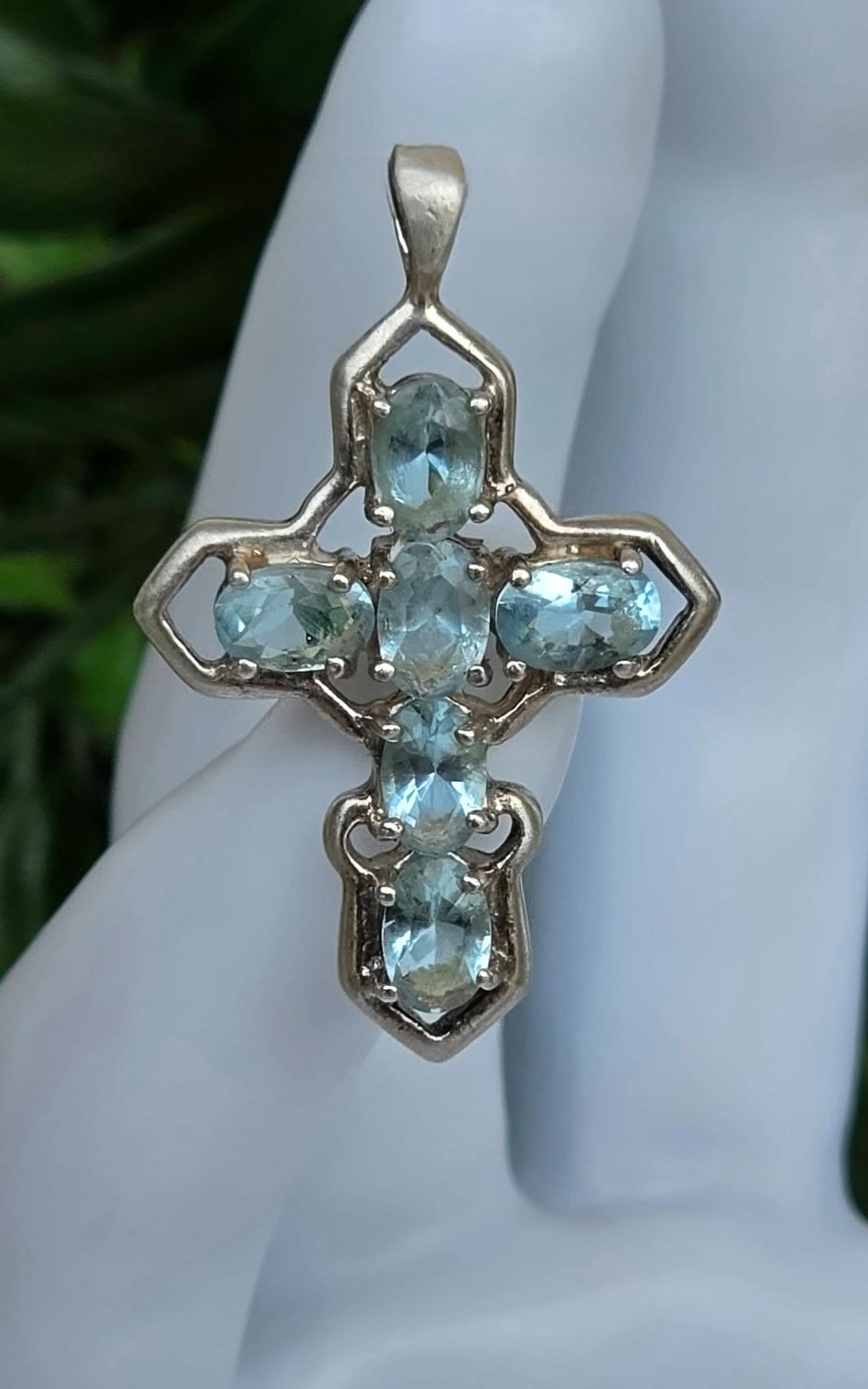 Pandantiv vechi, cruciuliță din argint cu pietre cubic zirconia.