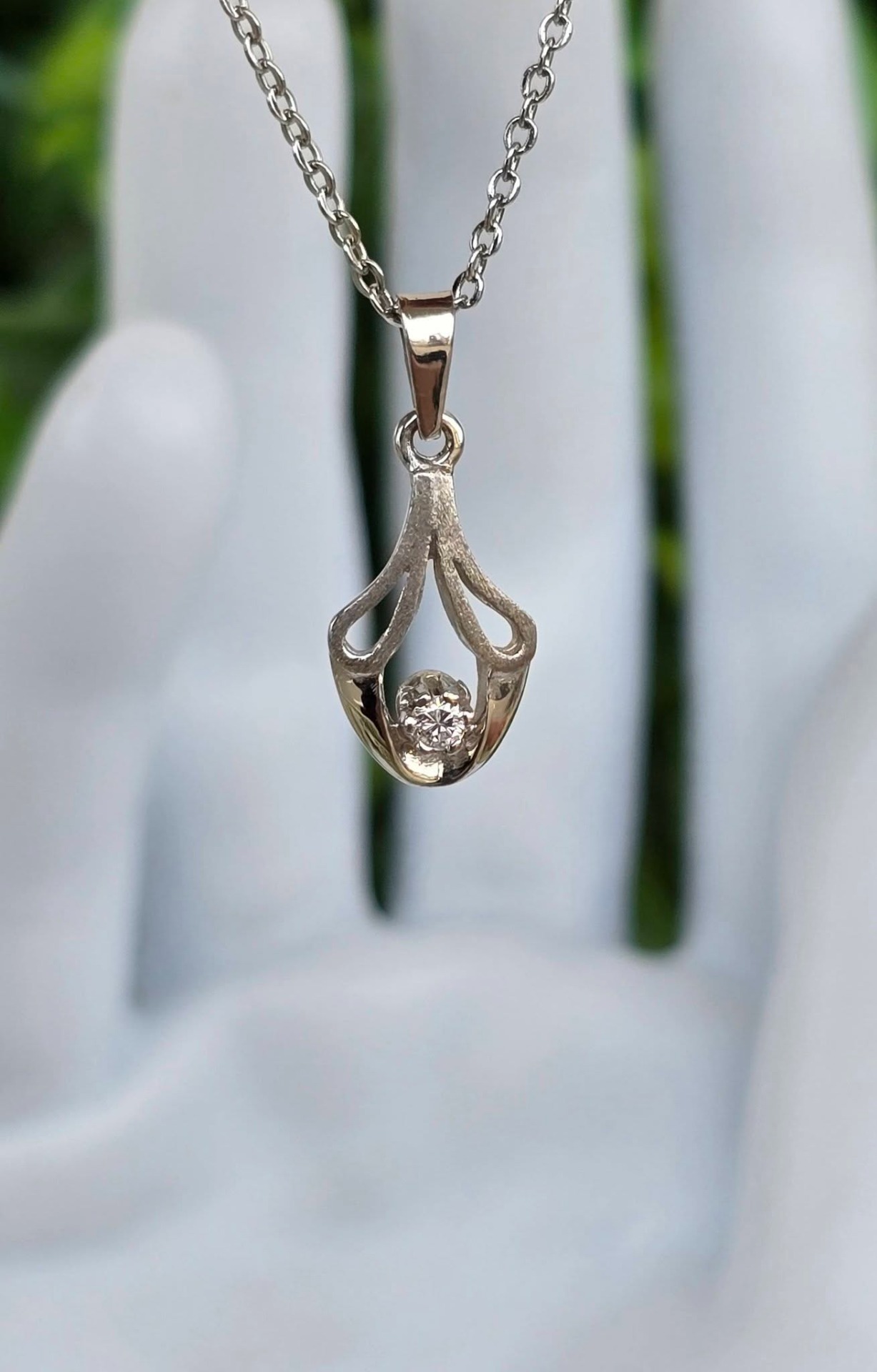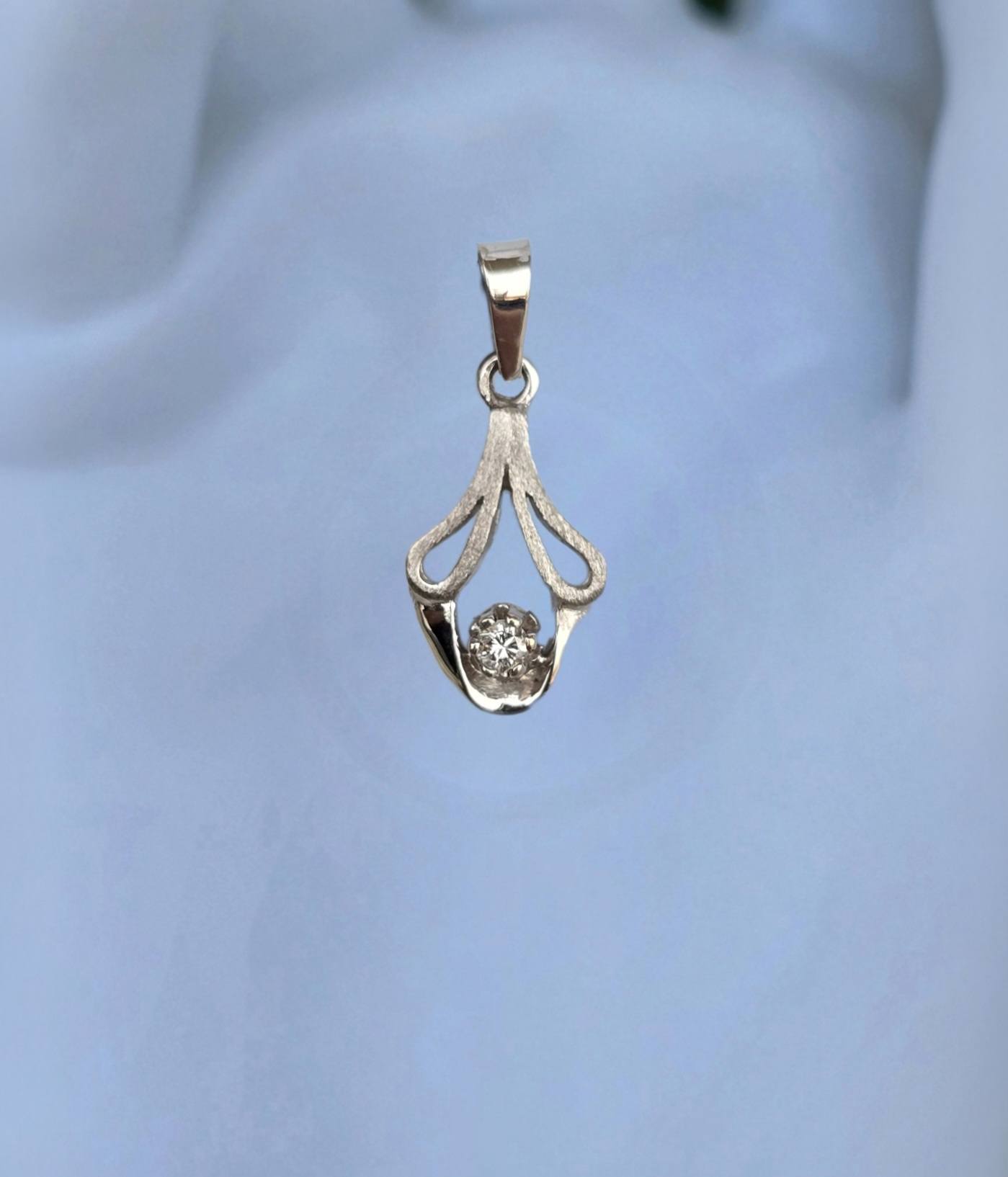 Pandantiv vechi delicat, din aur de 14K, cu diamant natural.