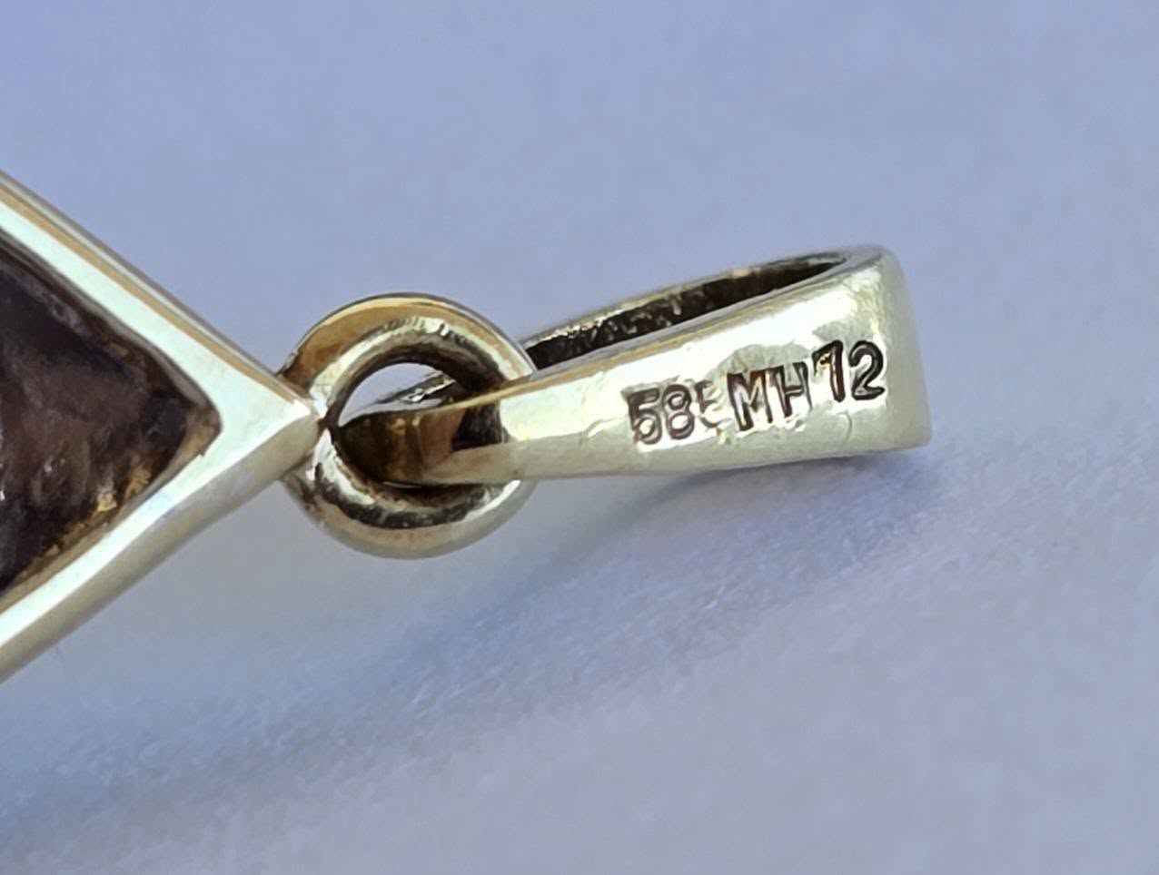 Prezintă marcaj 585 pentru puritate aur de 14K și marcaj de meșter.