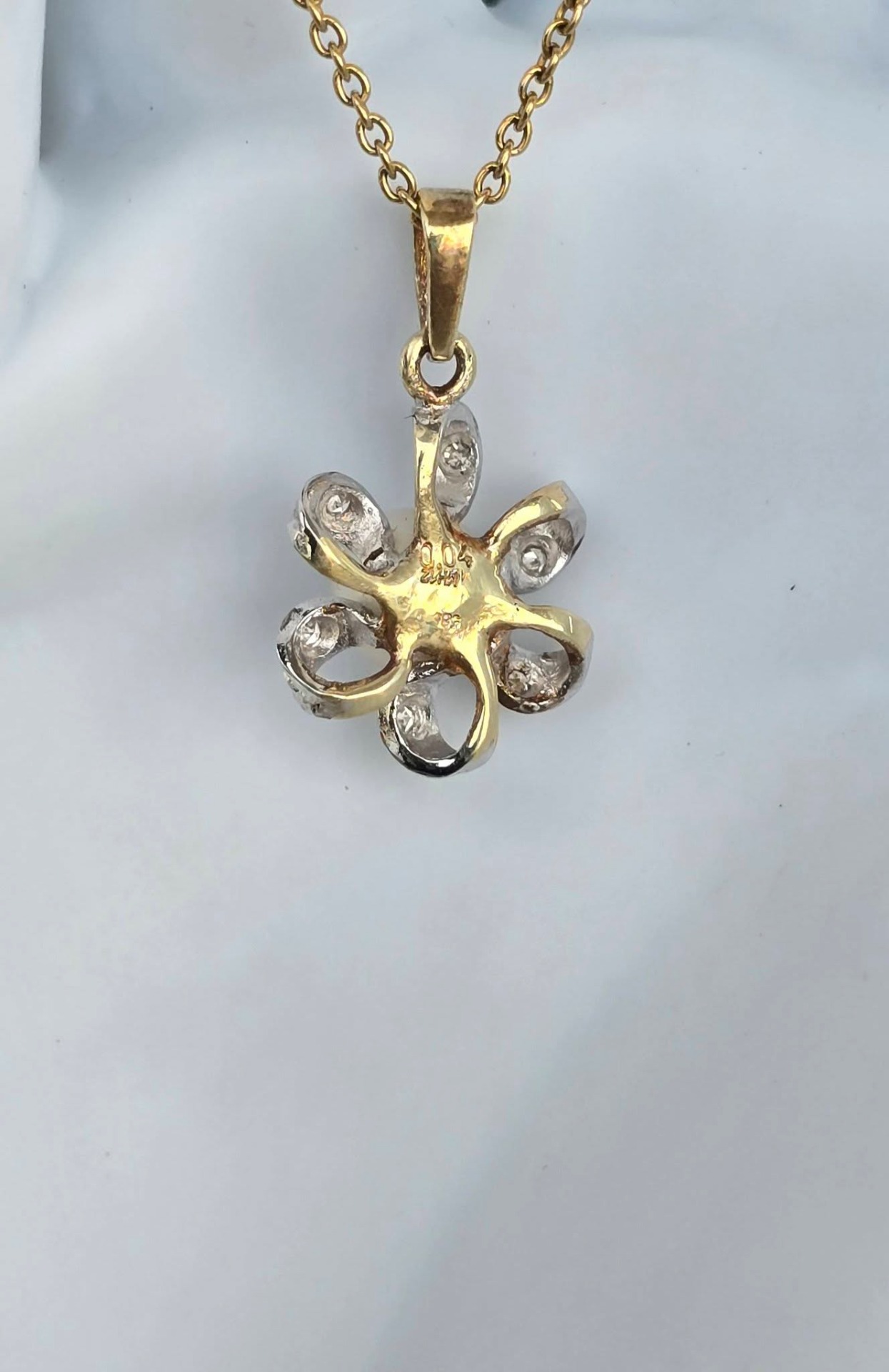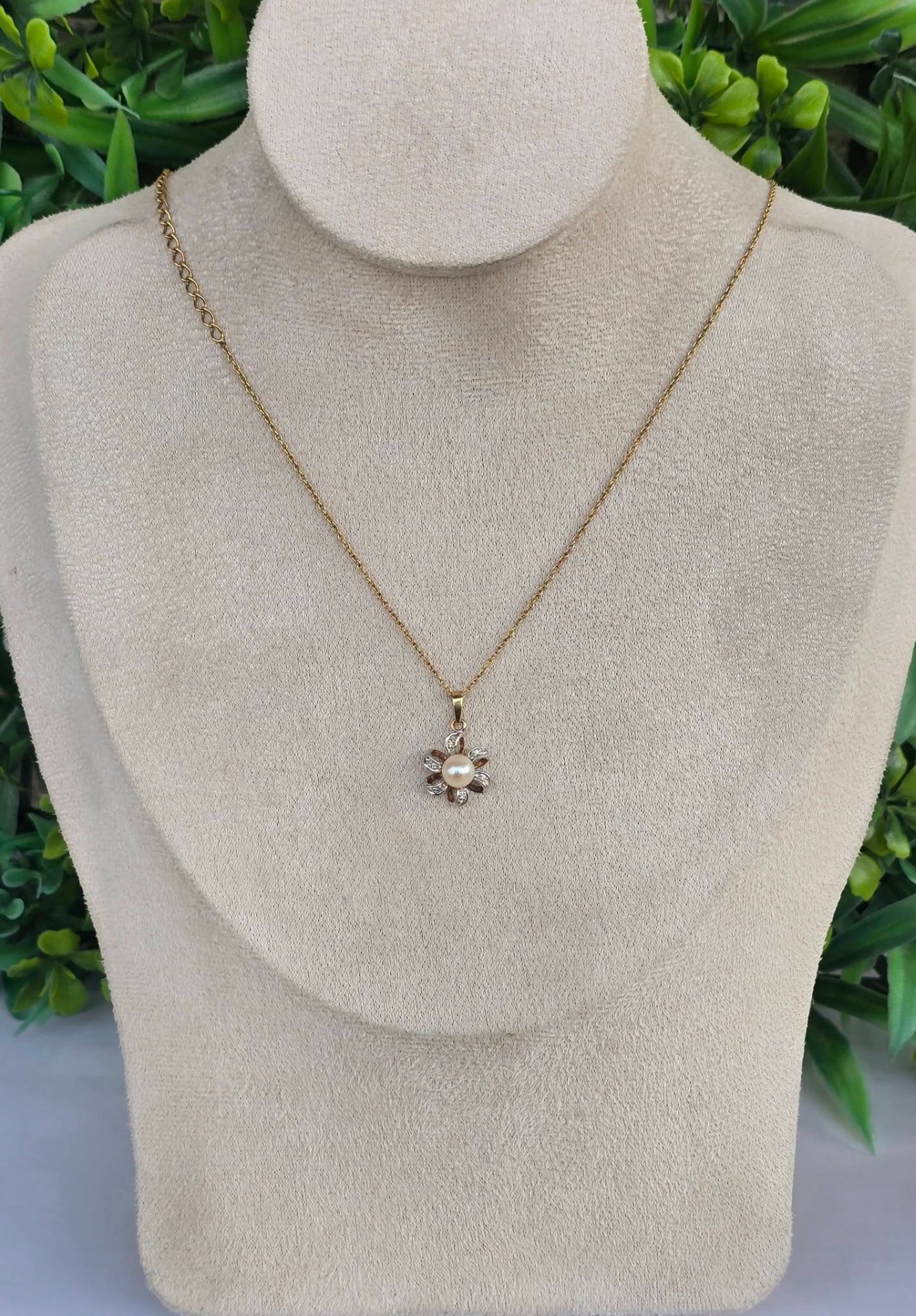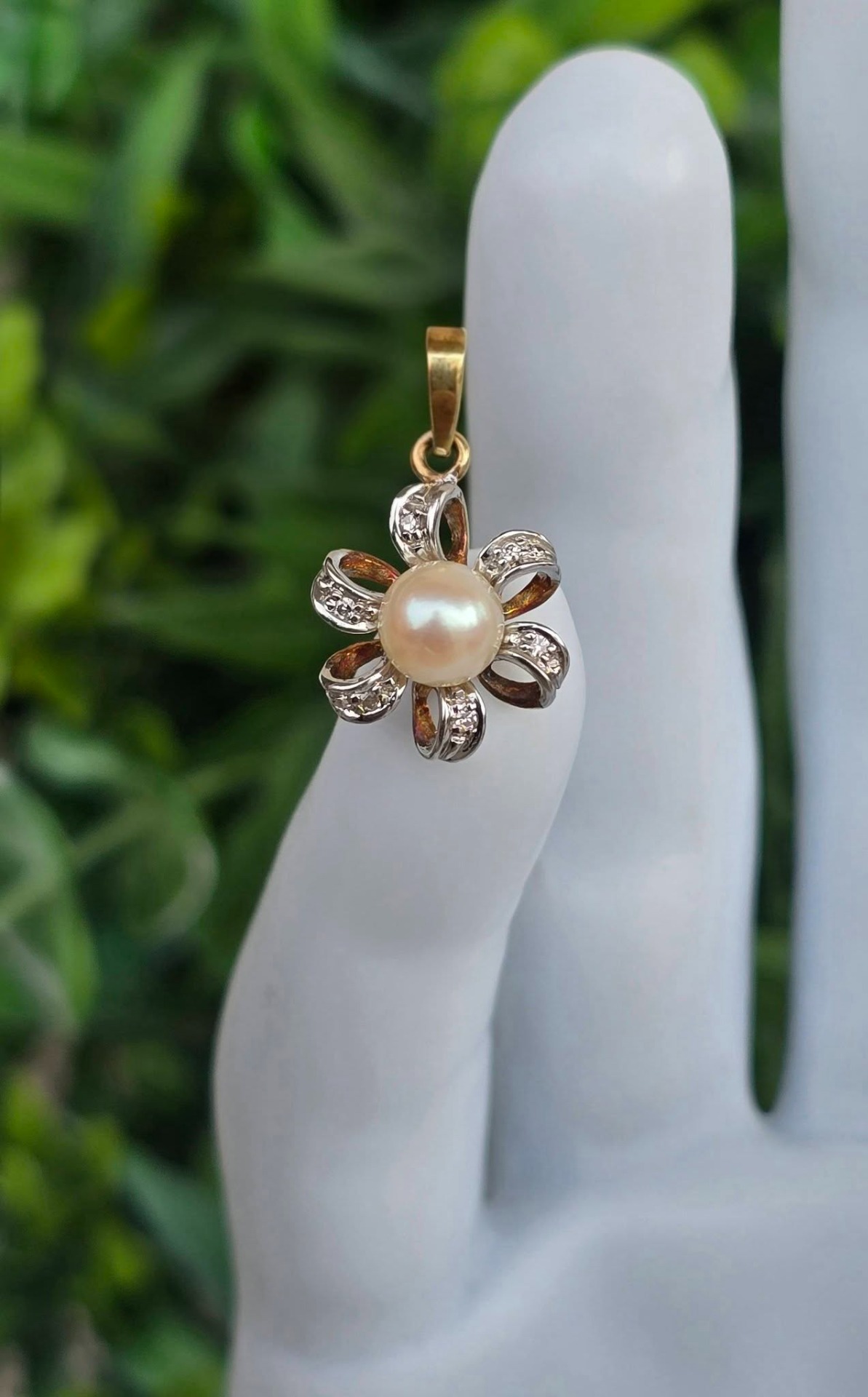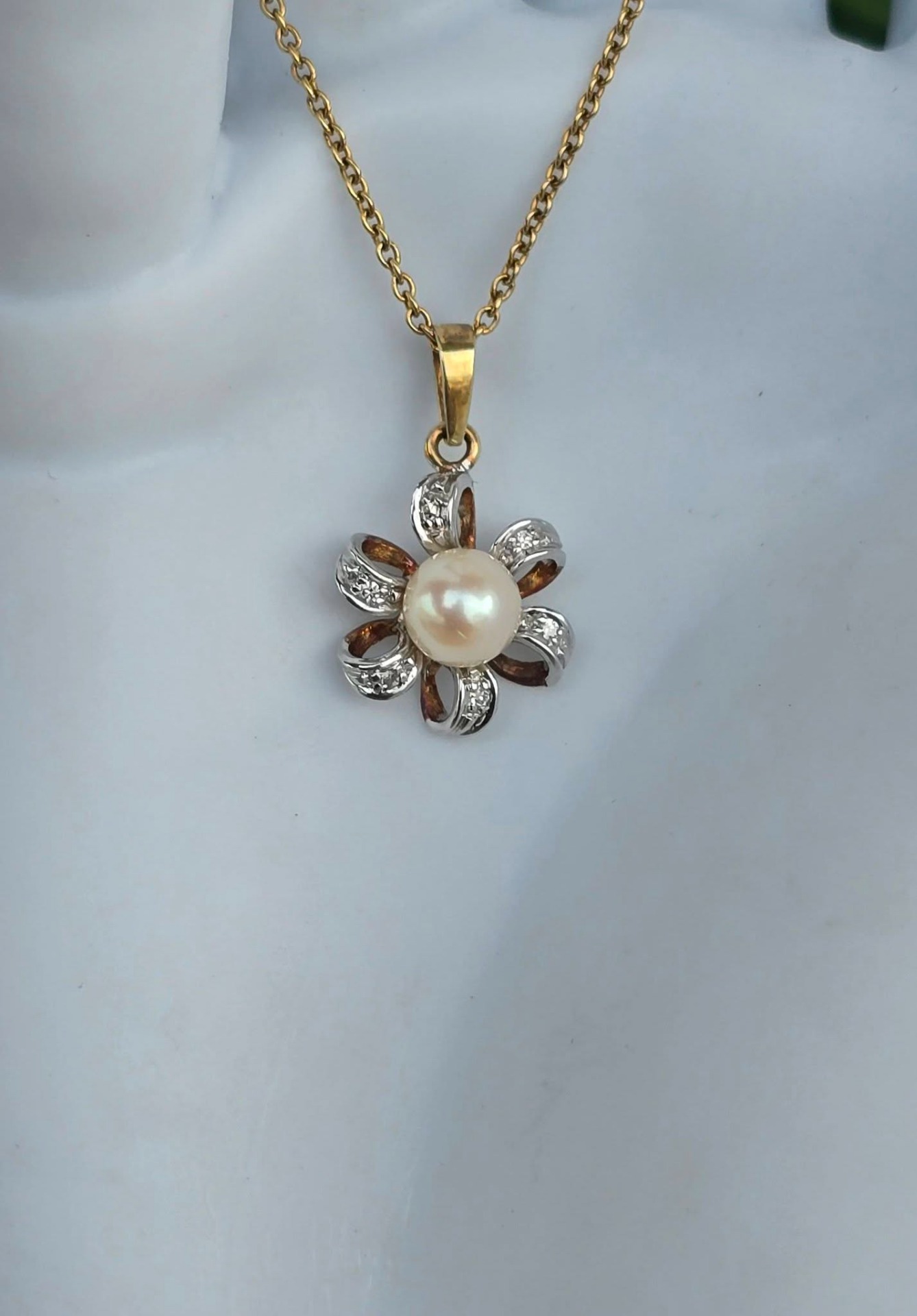 Pandantiv vechi deosebit, din aur de 14K, cu perlă naturală de cultură și 6 diamante naturale.