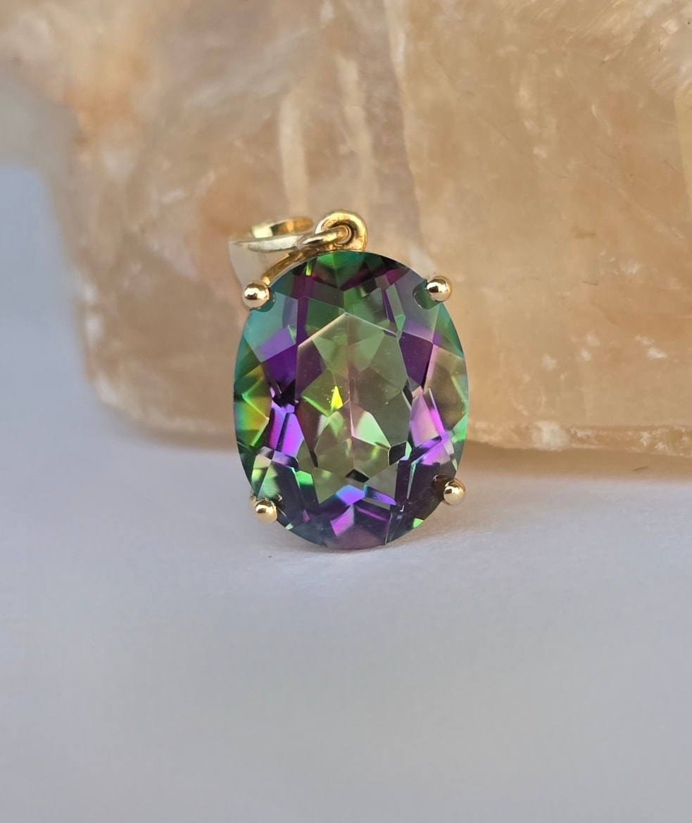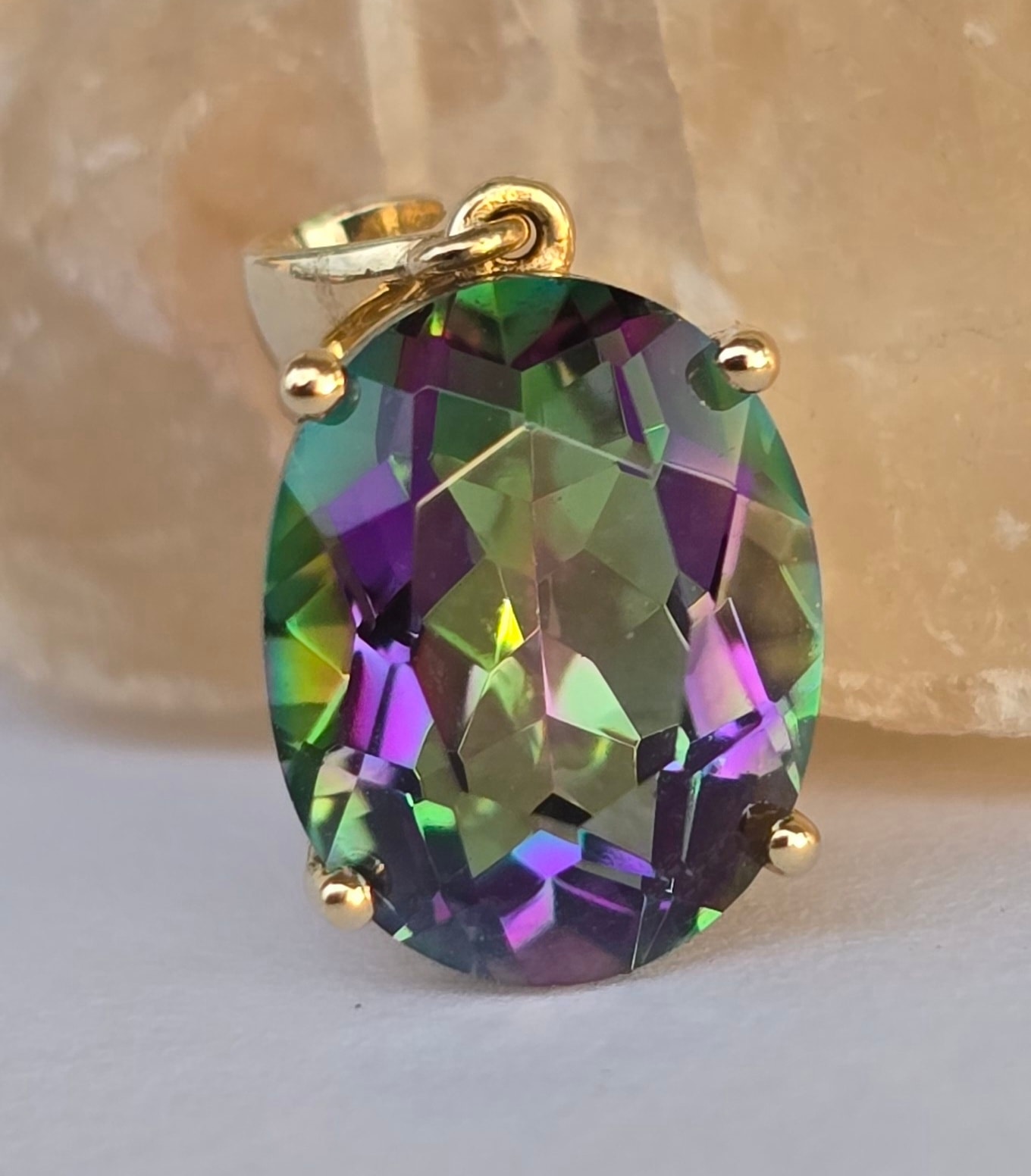 Pandantiv vechi deosebit, din aur de 9K, cu cuarț mistic natural.