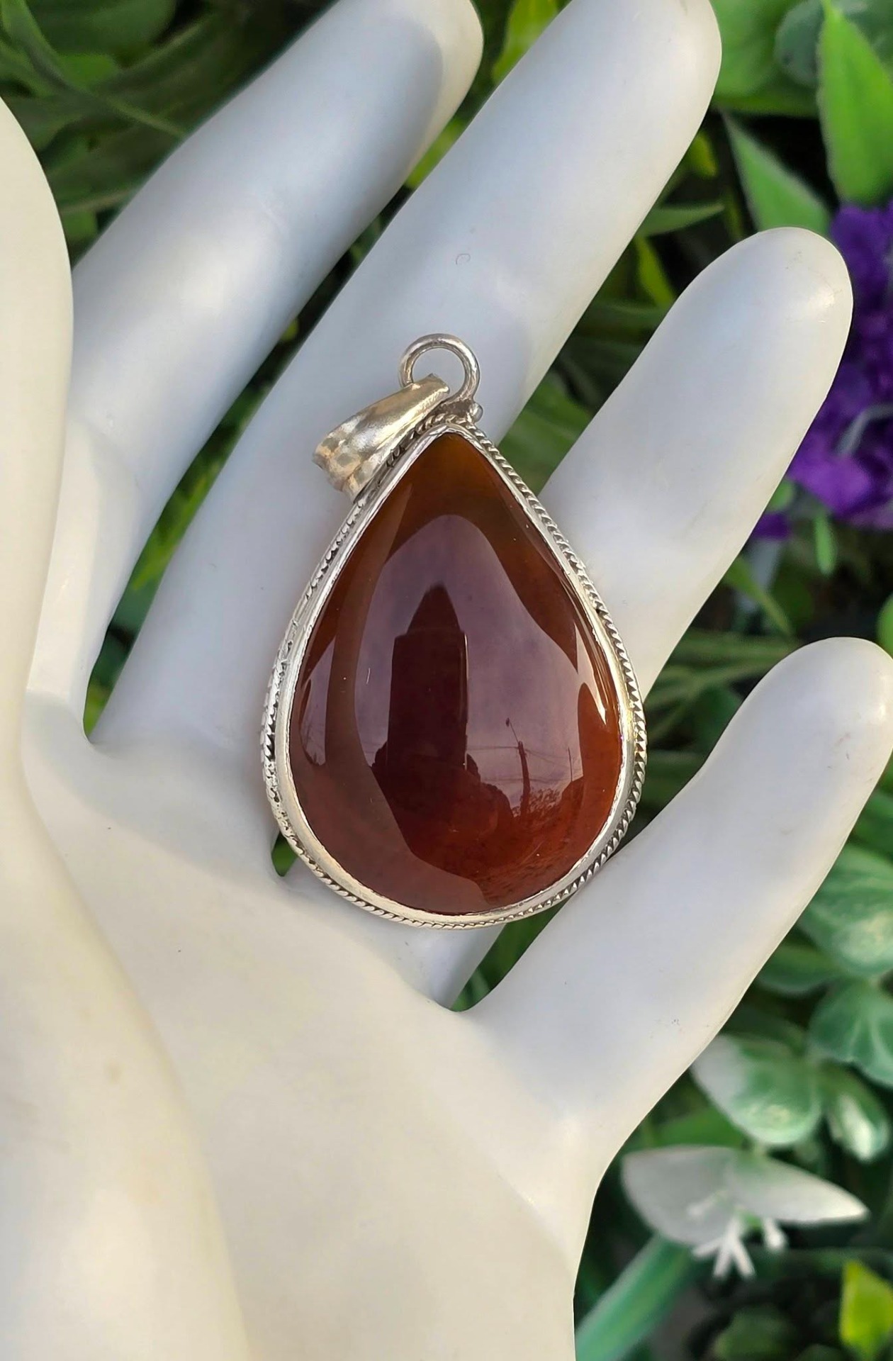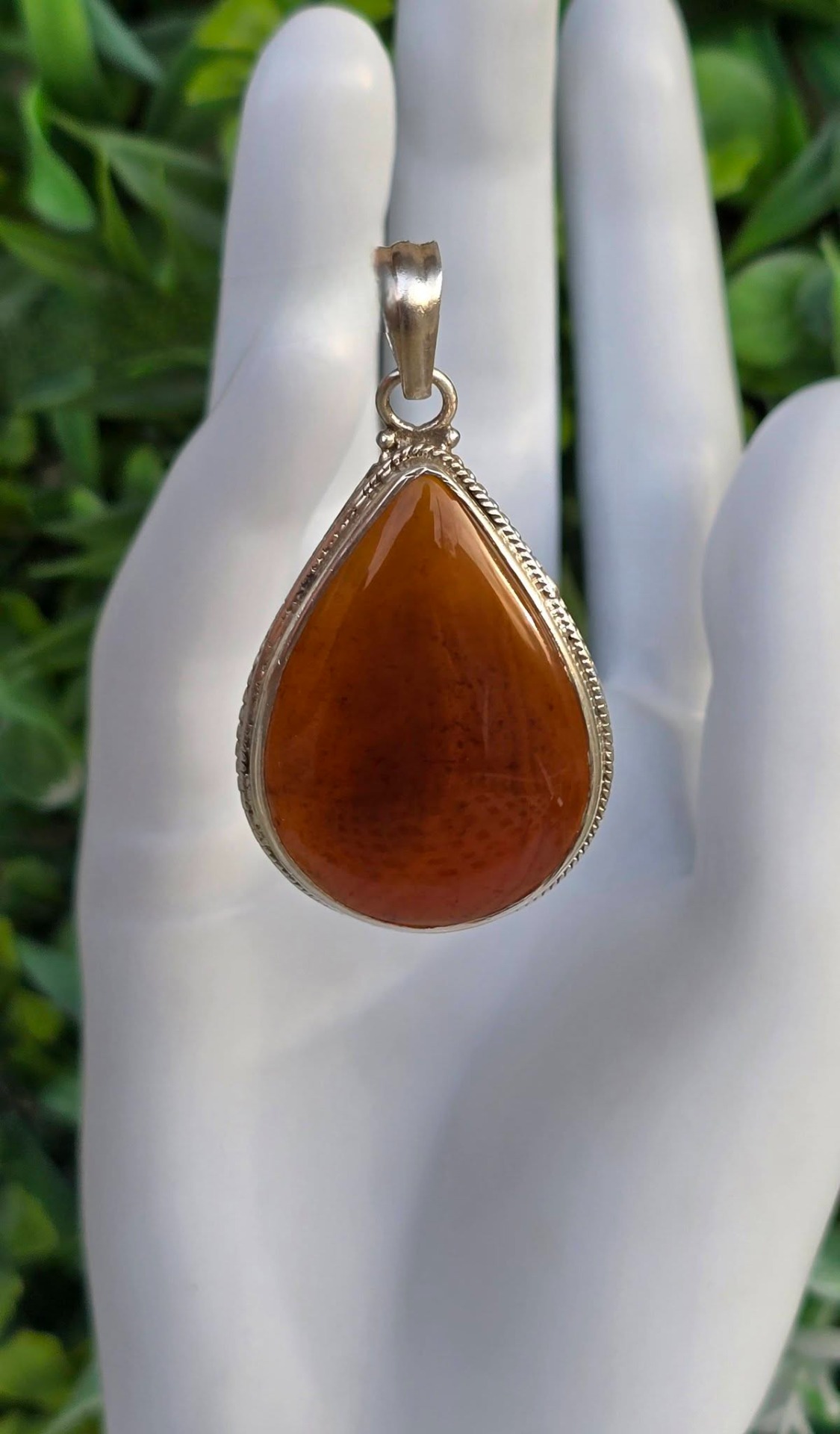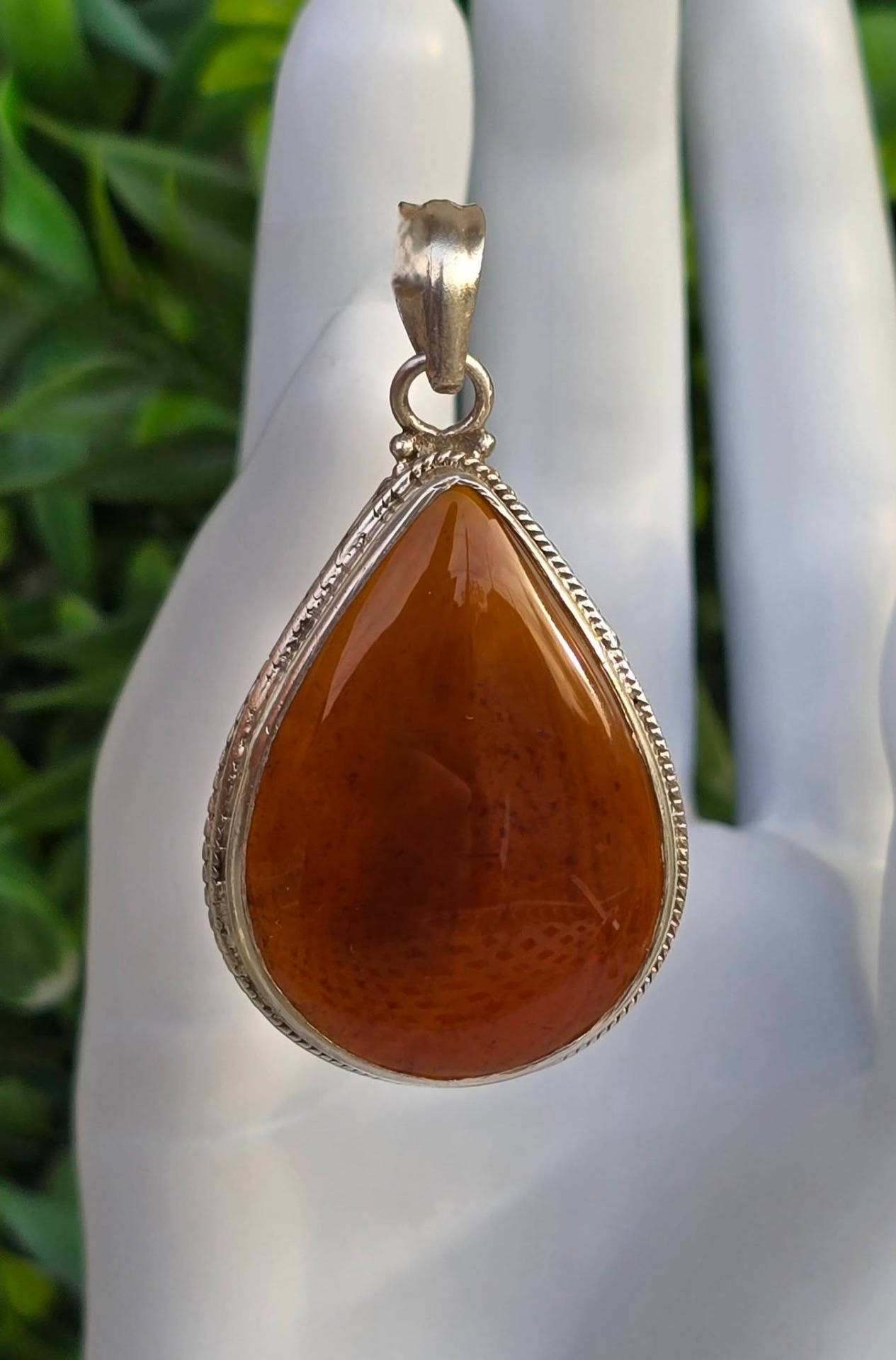 Pandantiv vechi deosebit, grandios, din argint, cu carneol natural.
