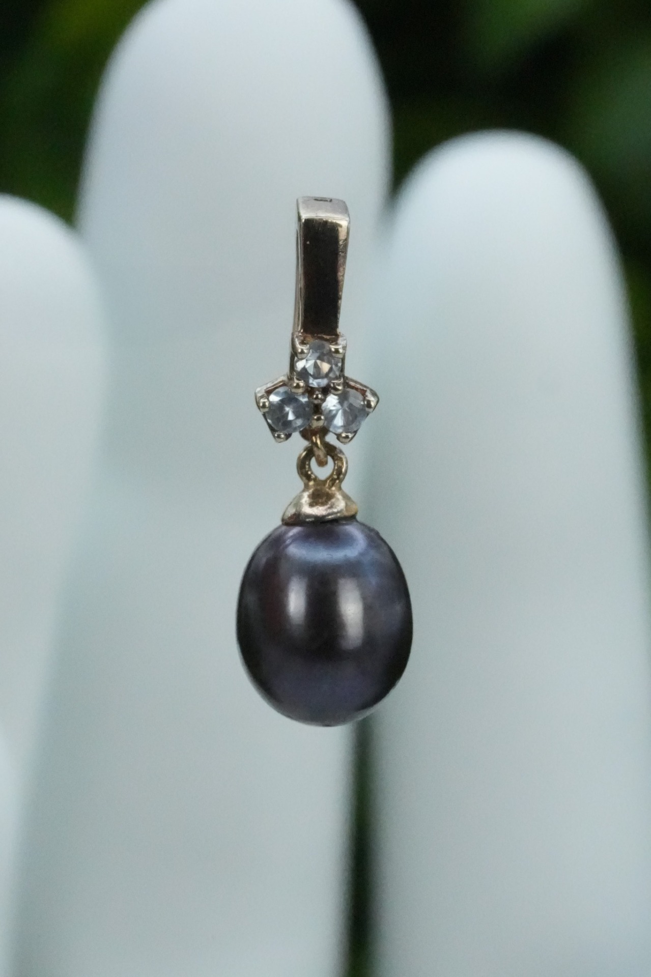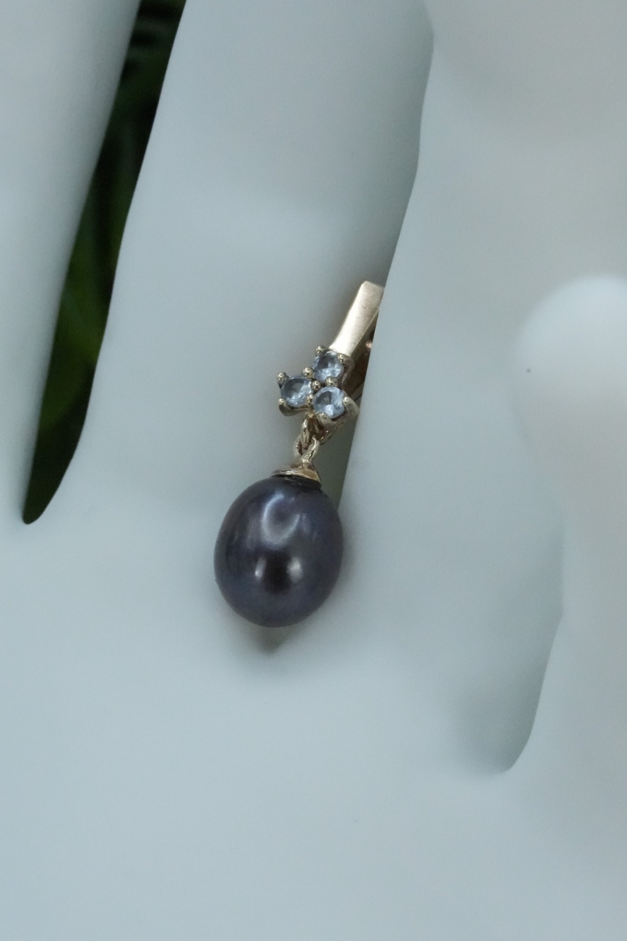 Pandantiv vechi din argint aurit, cu perlă naturală și topaze naturale.