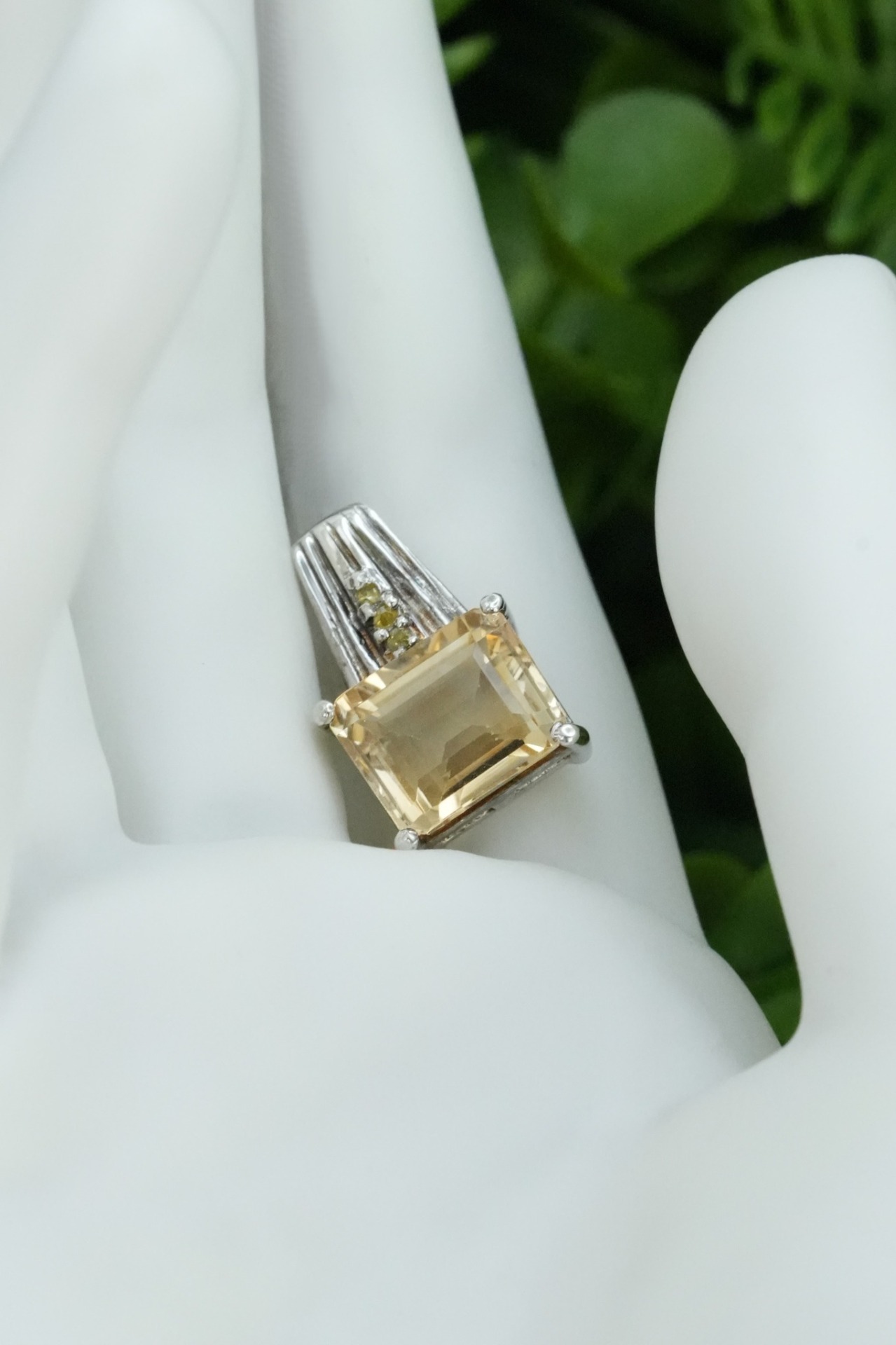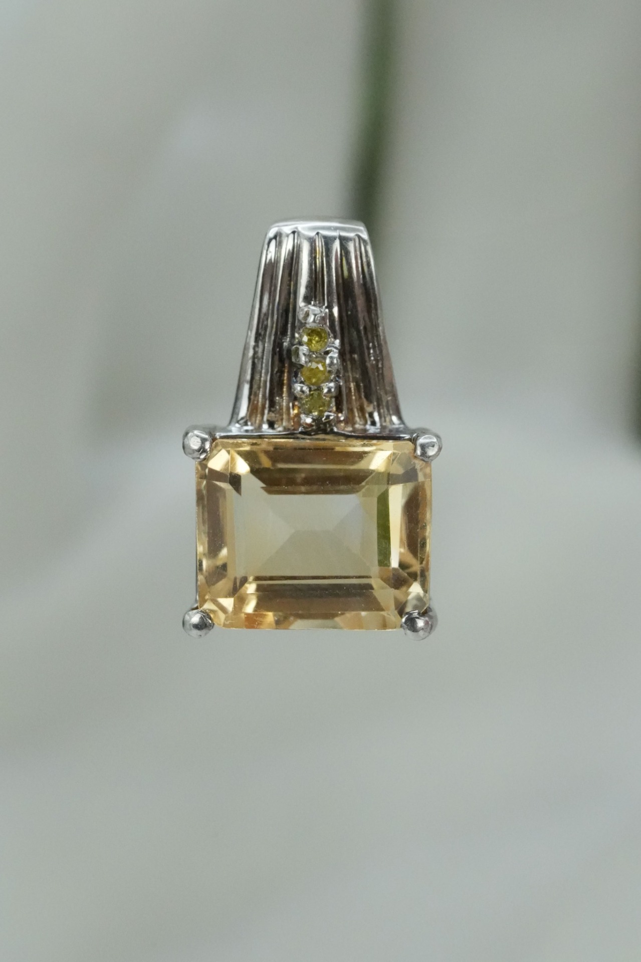 Pandantiv vechi din argint, cu 3 diamante "champagne" naturale și citrin natural.