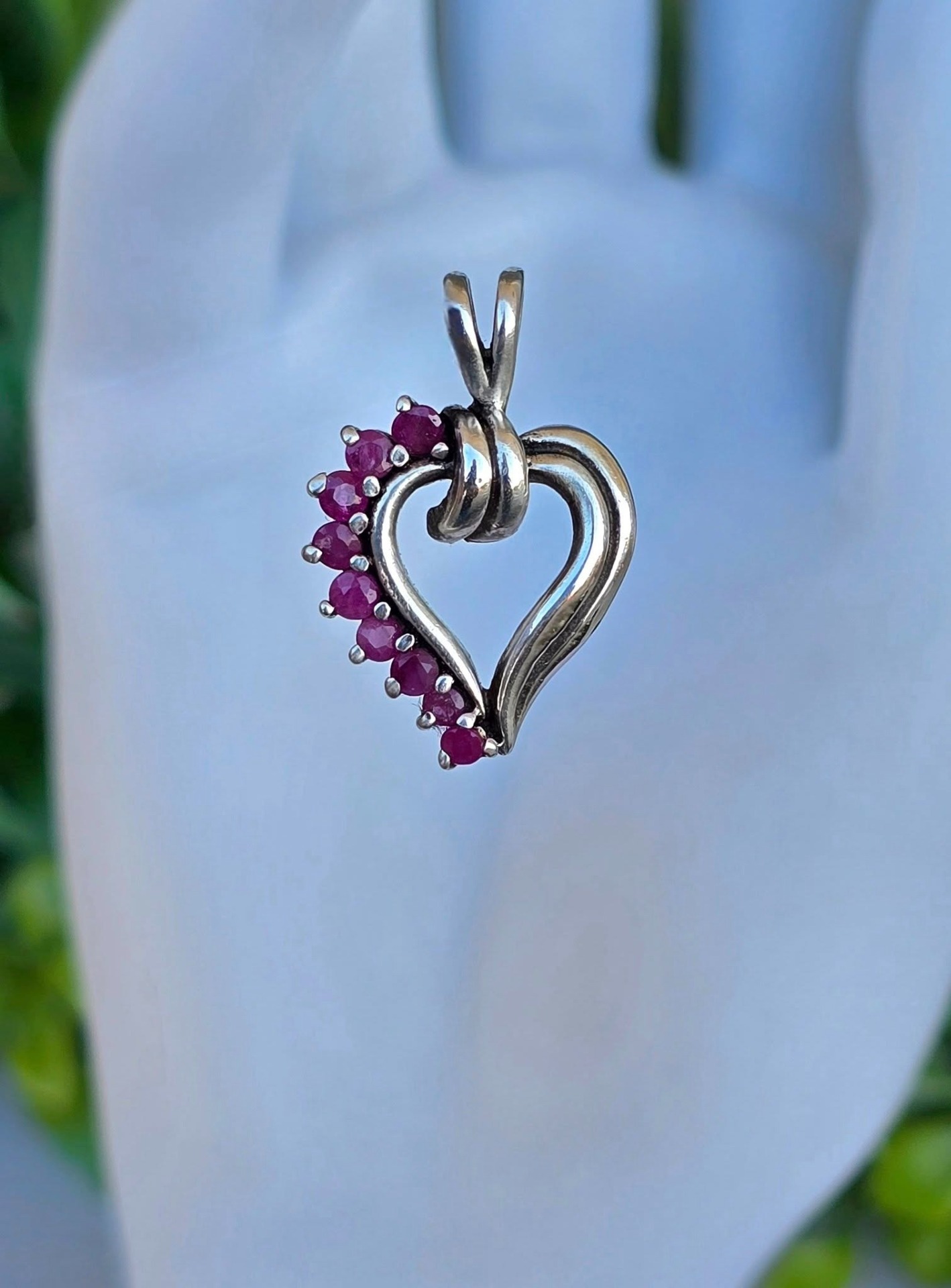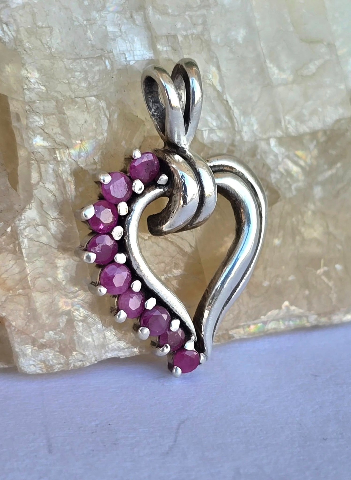 Pandantiv vechi din argint, cu 9 rubine naturale, frumos lucrat manual.