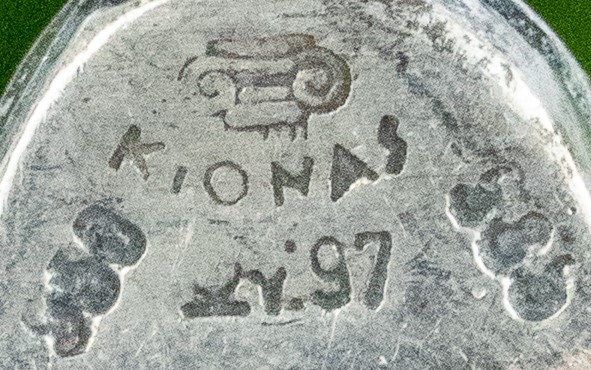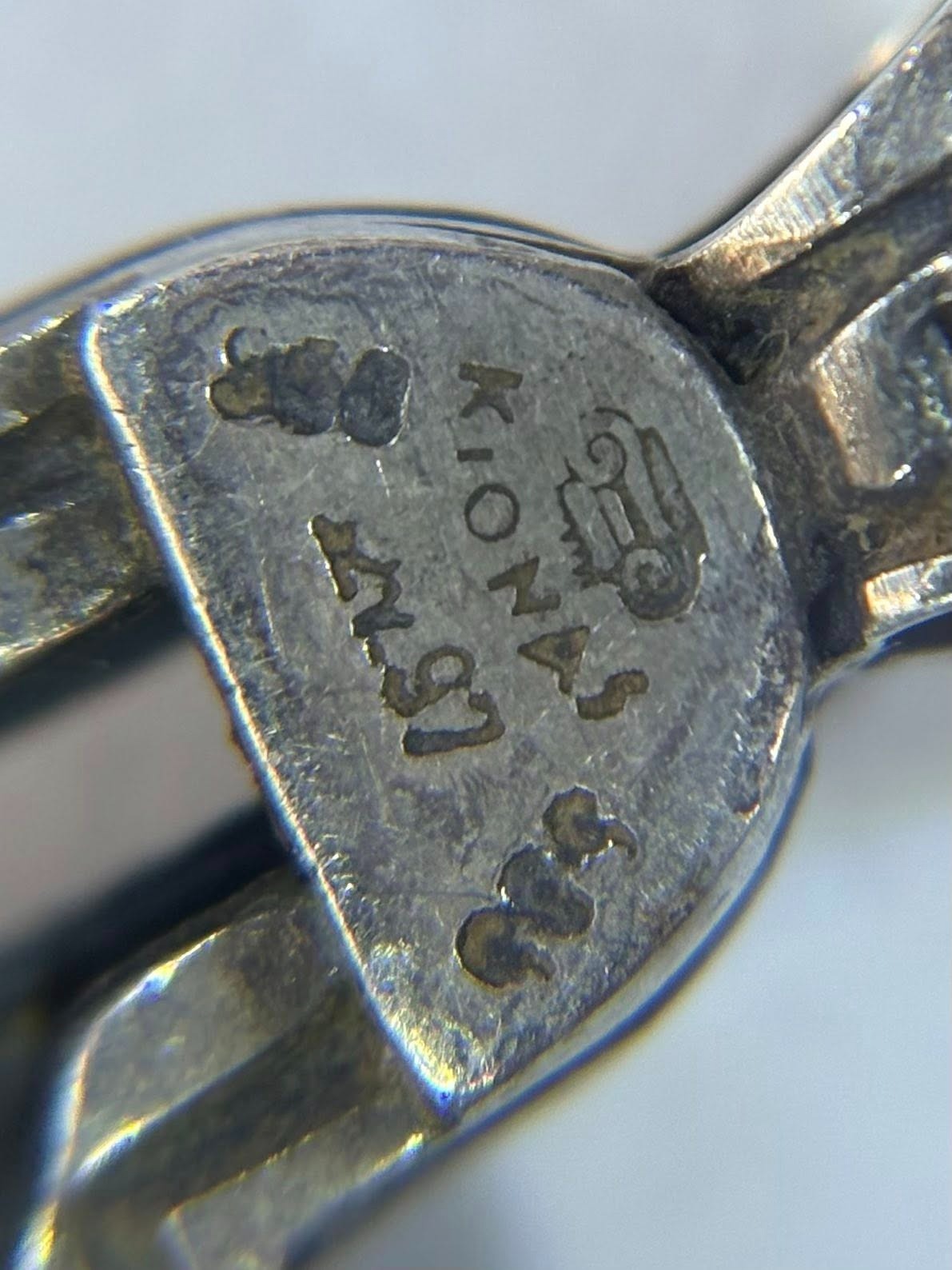 Prezintă marcaj de argint 950 și marcaj de meșter.