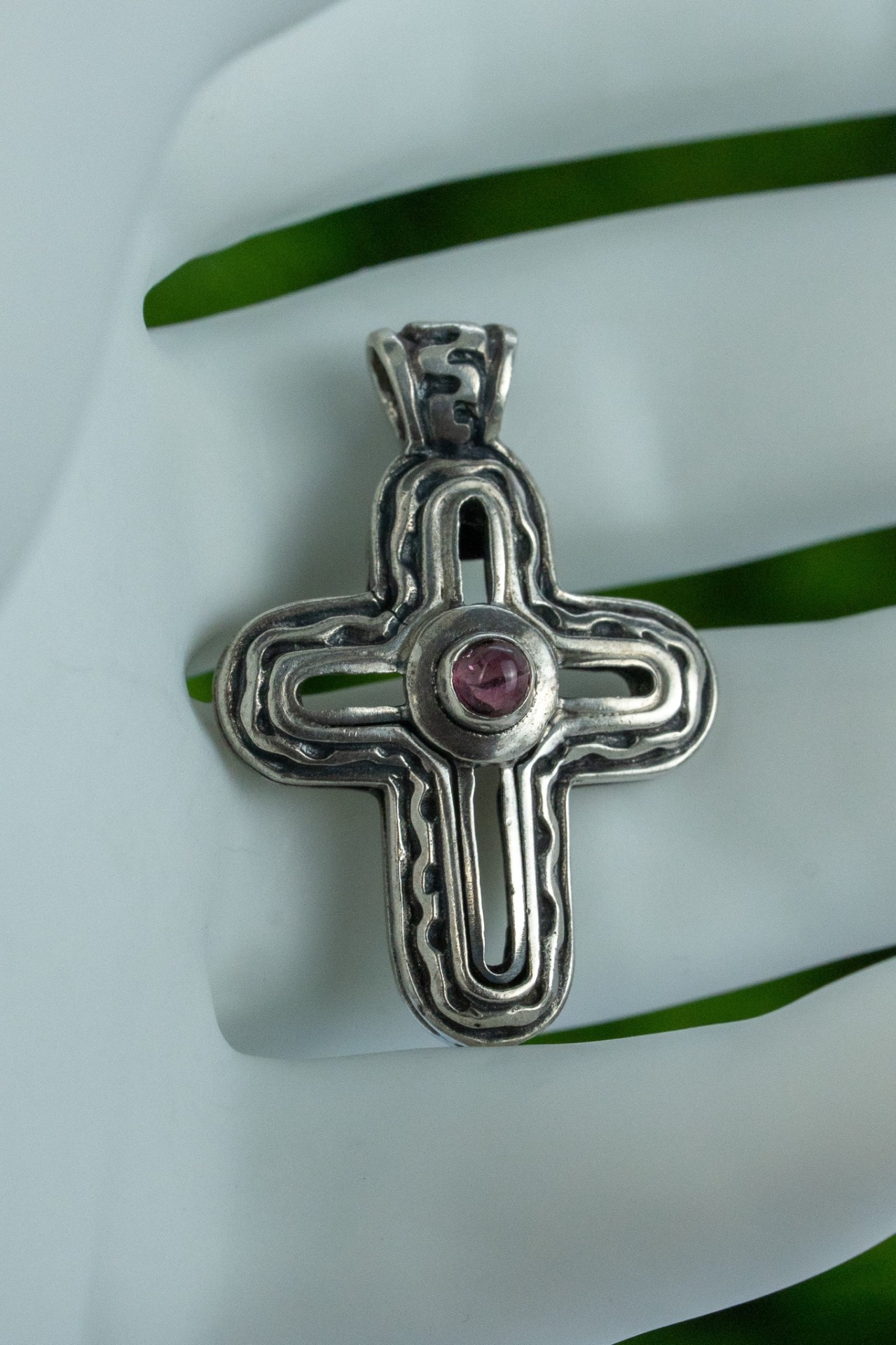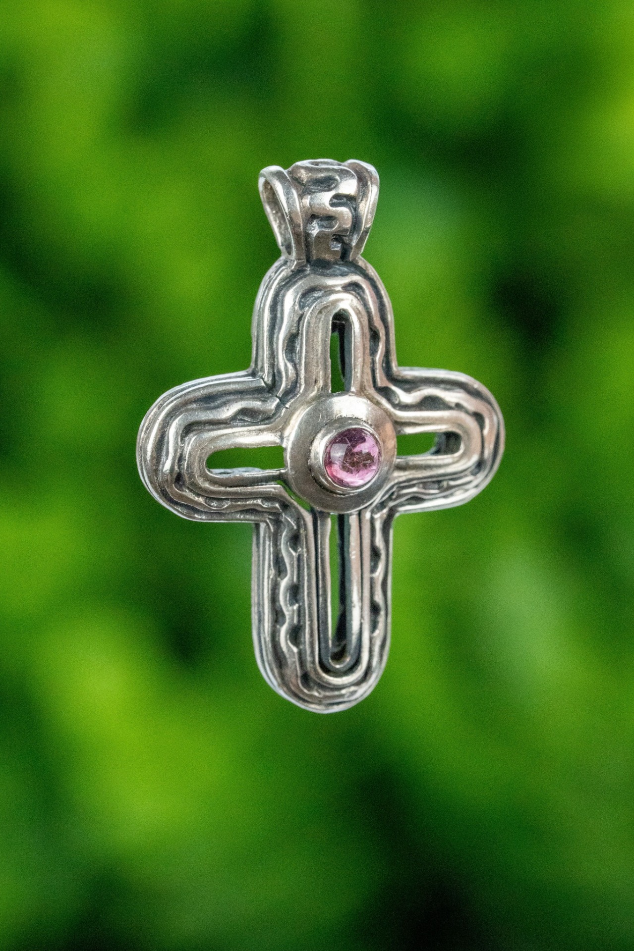 Pandantiv vechi din argint, cu ametist natural.
