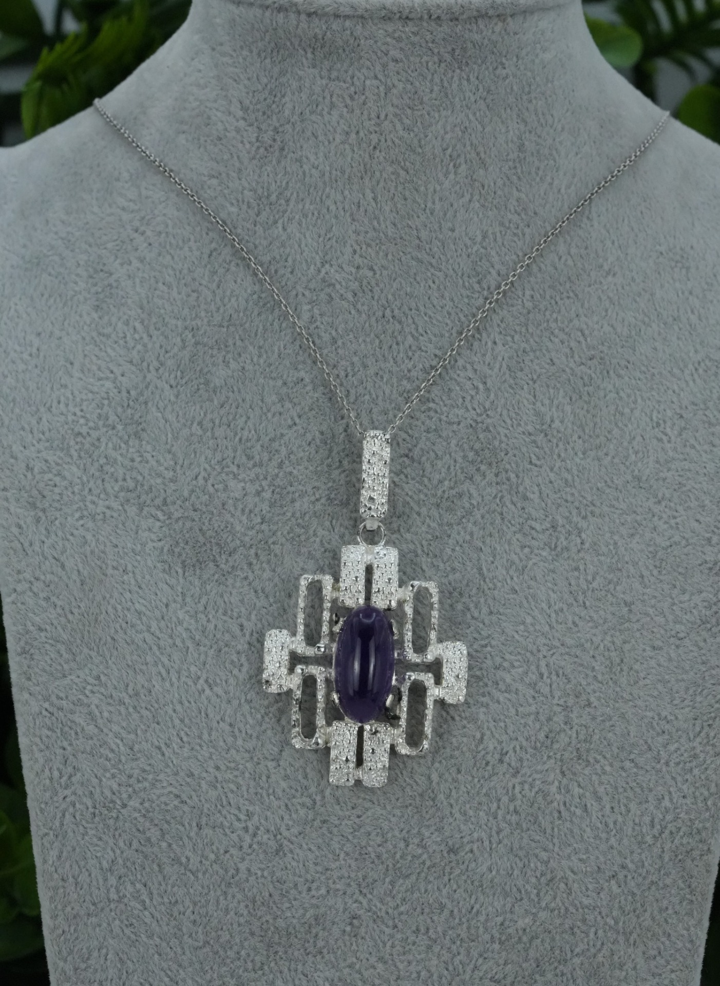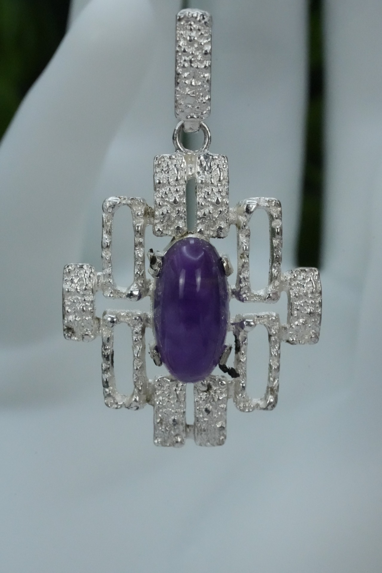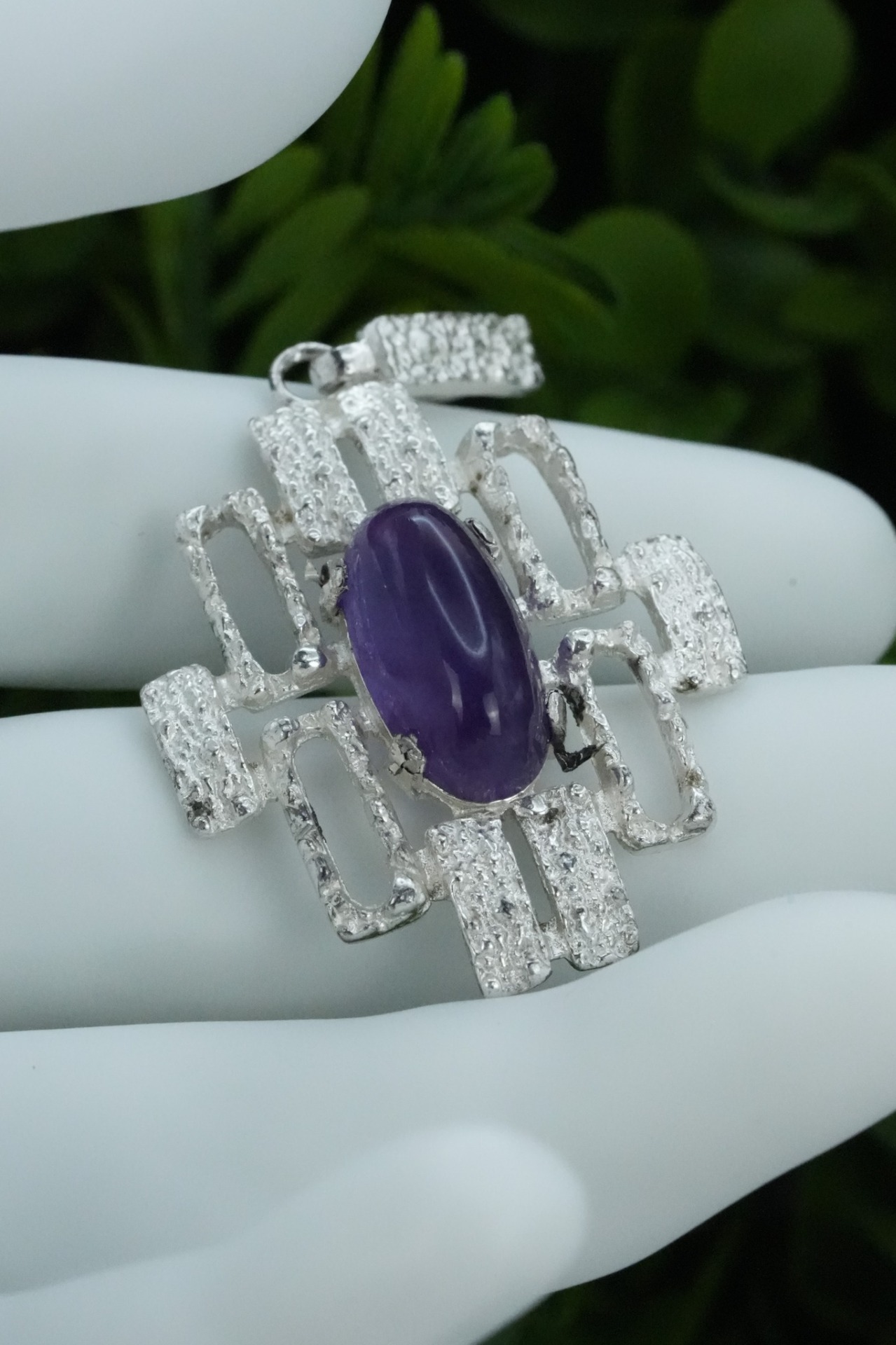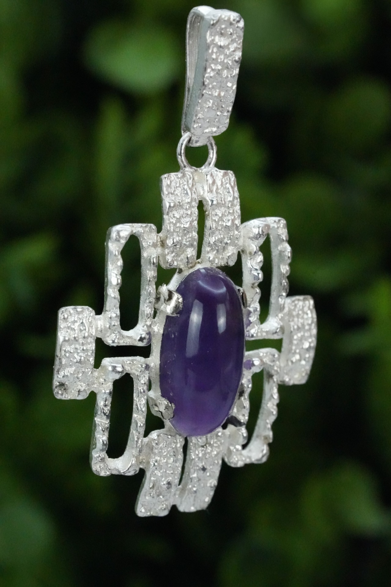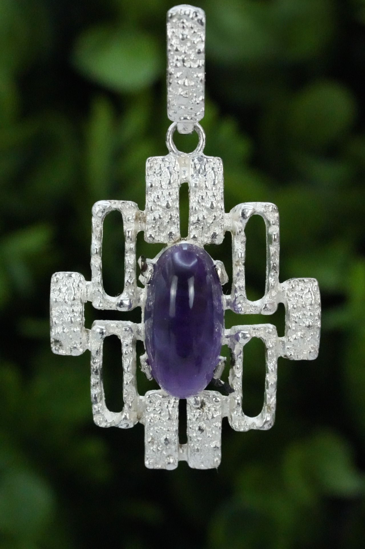 Pandantiv vechi din argint, cu ametist natural.