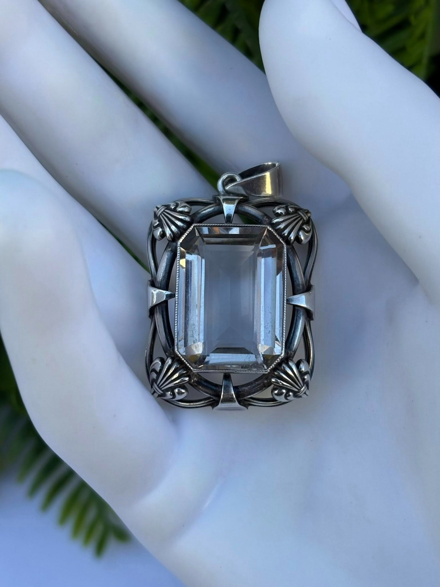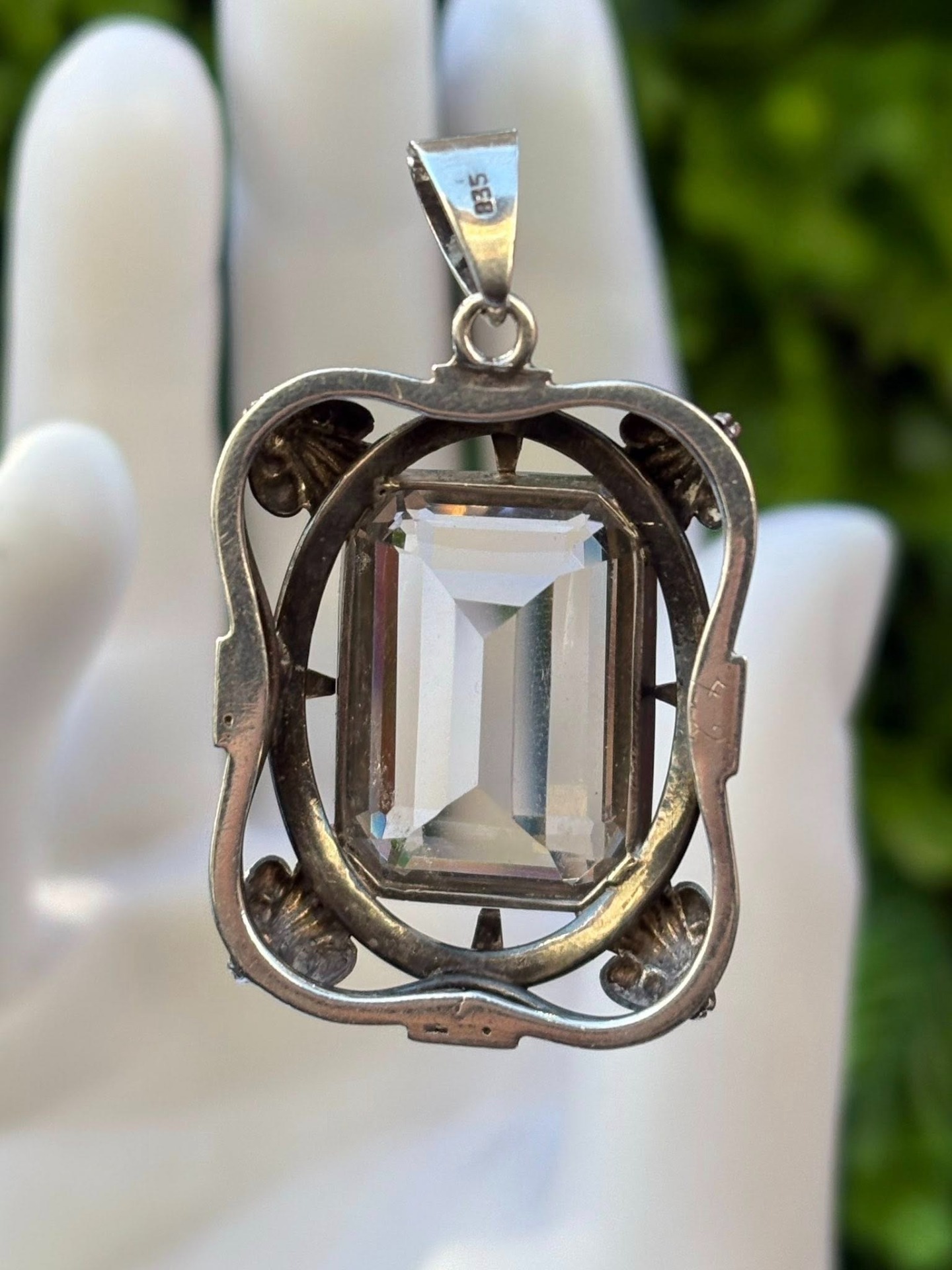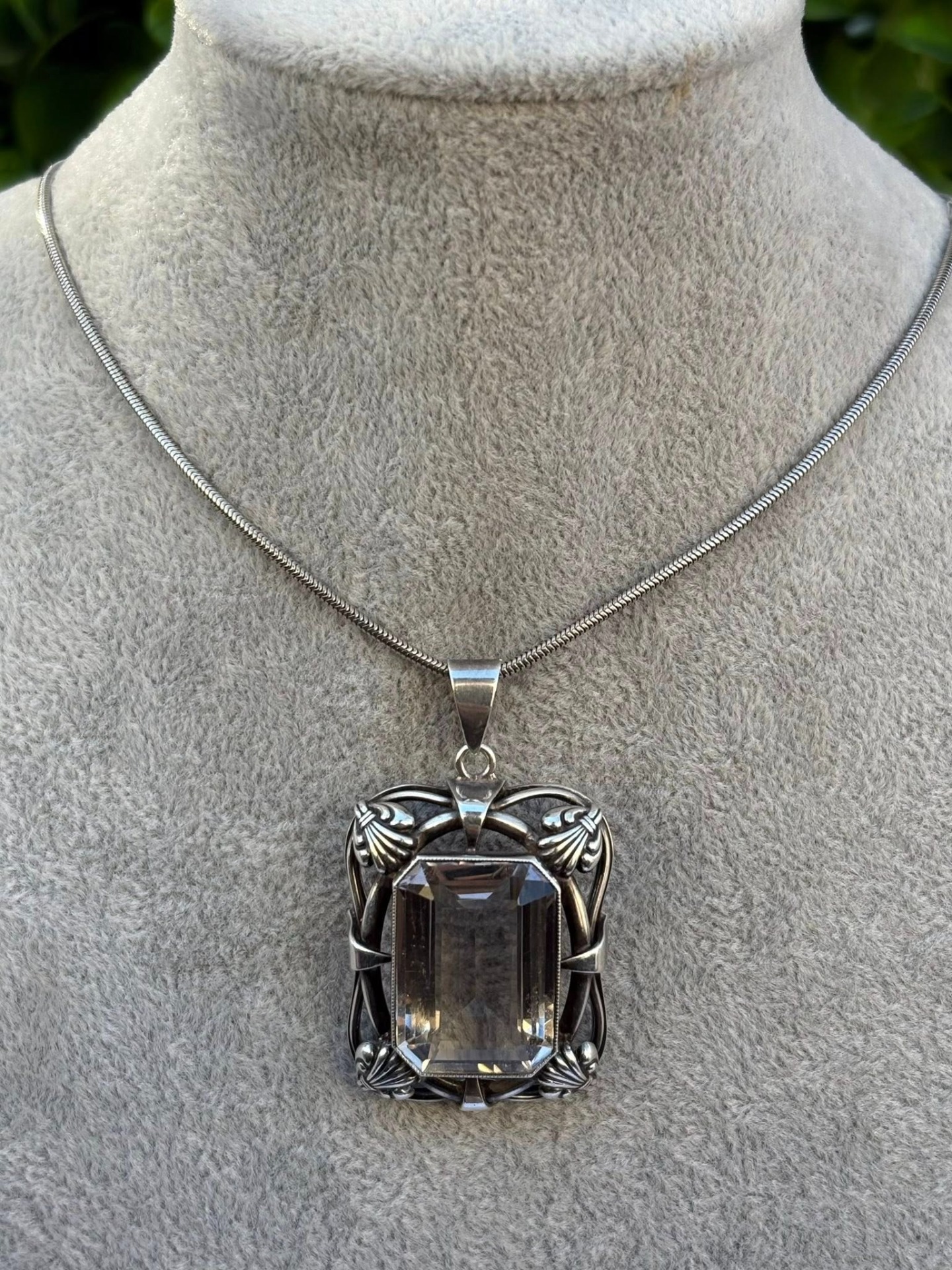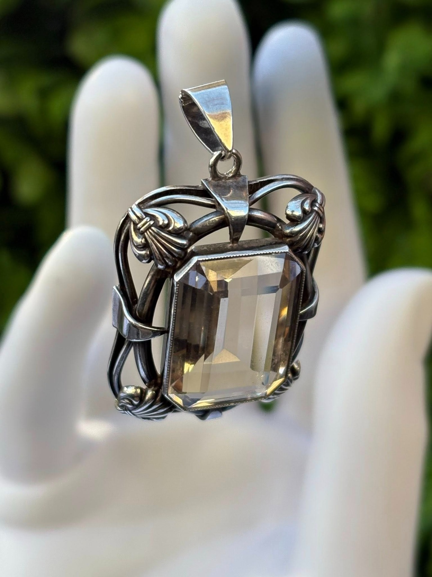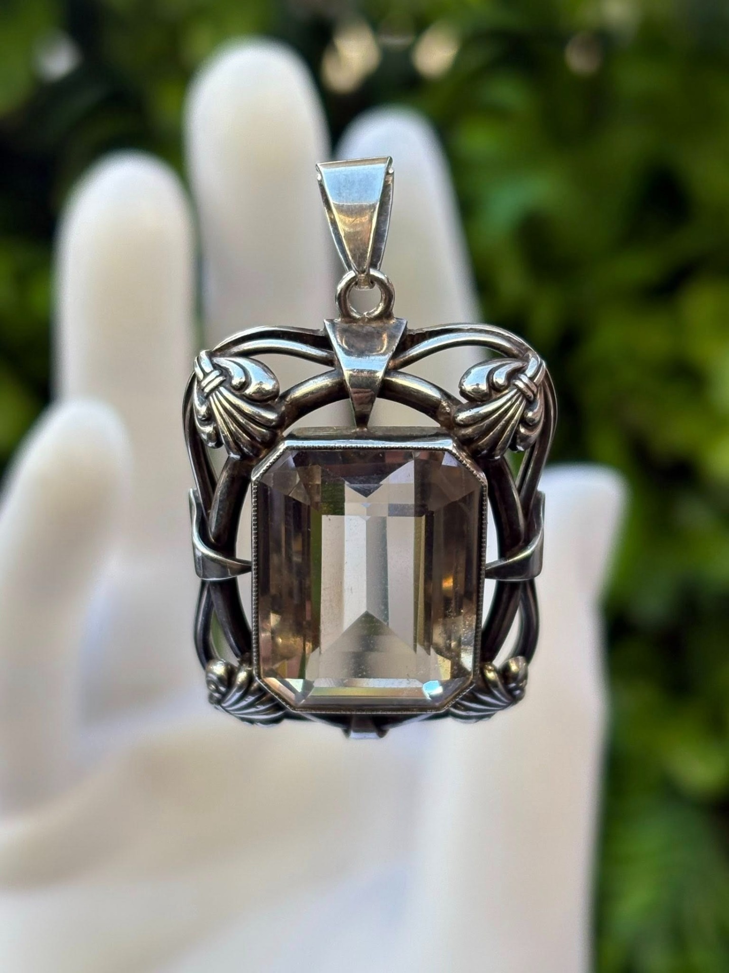 Pandantiv vechi din argint, cu cuarț fumuriu natural.