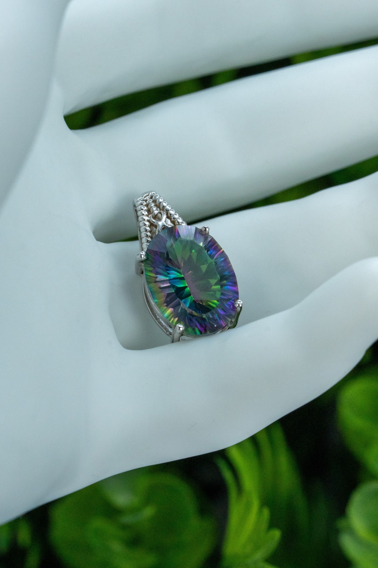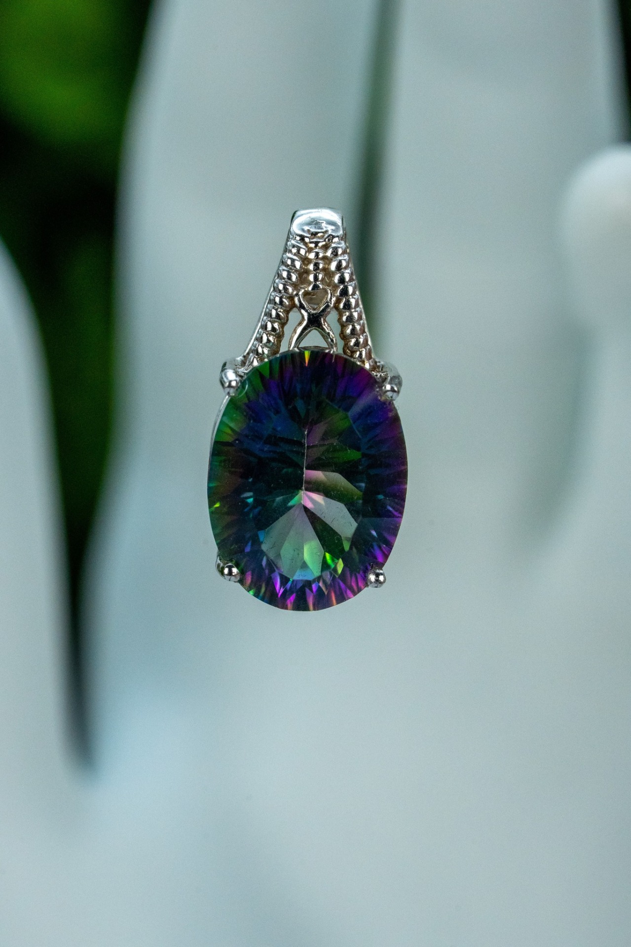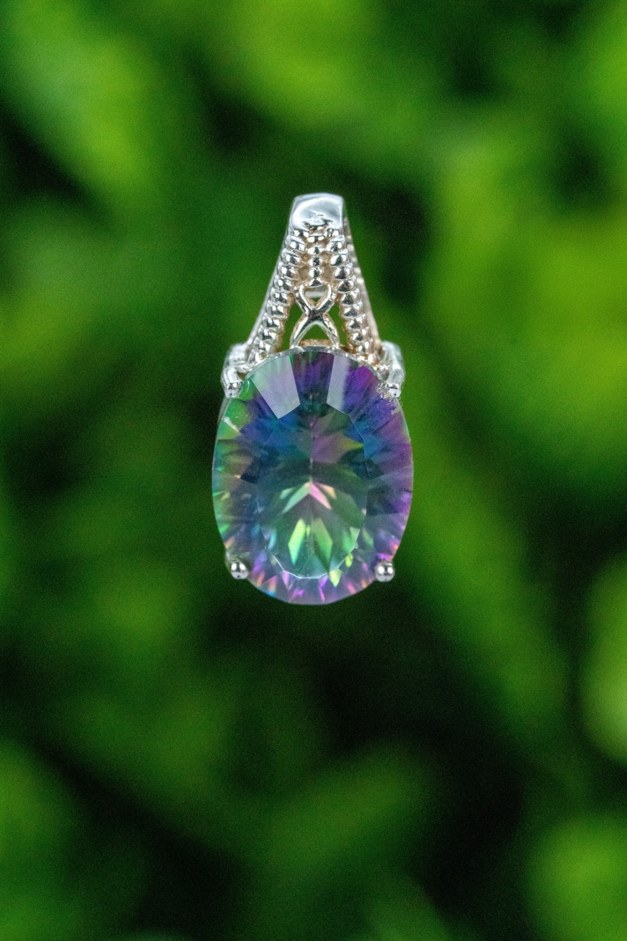 Pandantiv vechi din argint, cu cuarț mistic ( Mystic Quartz ) natural.