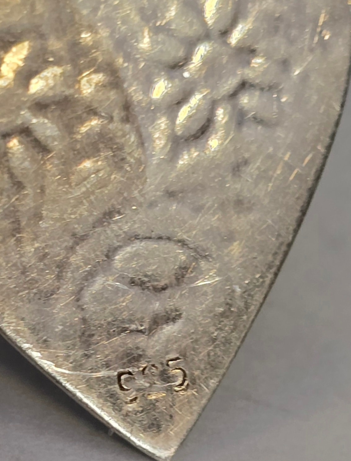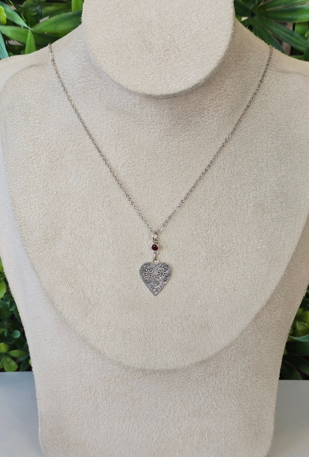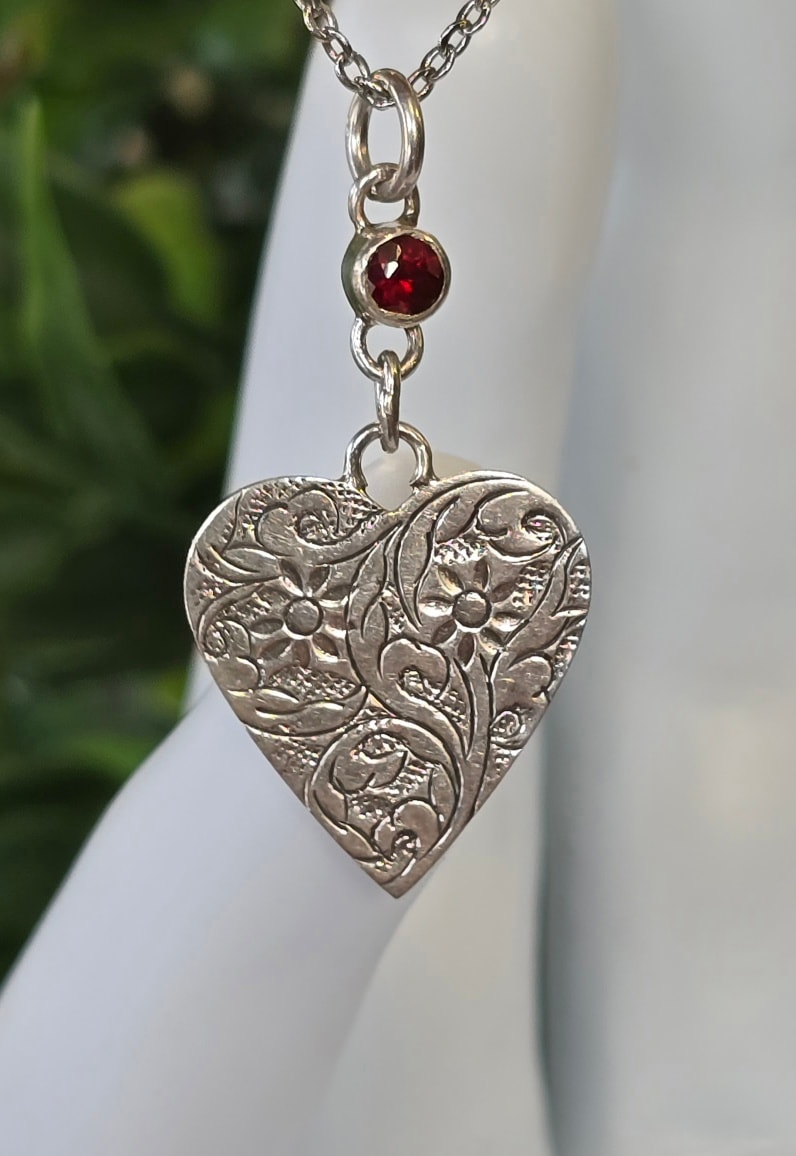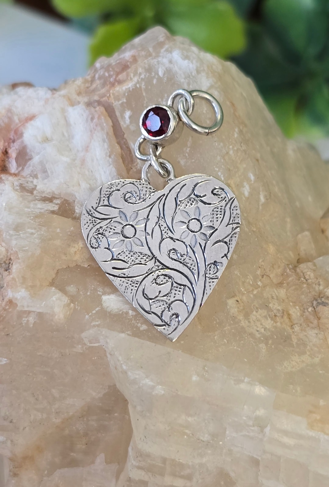 Pandantiv vechi din argint, cu granat natural, frumos gravat manual.