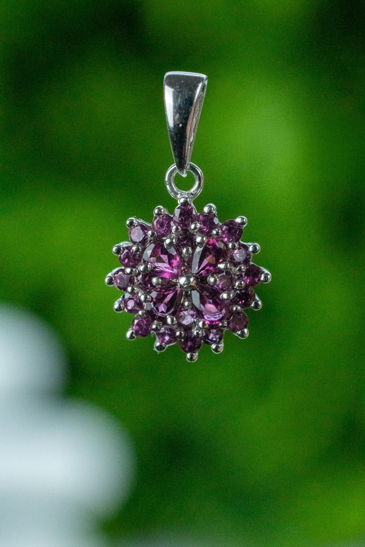 Pandantiv vechi din argint, cu granate naturale.