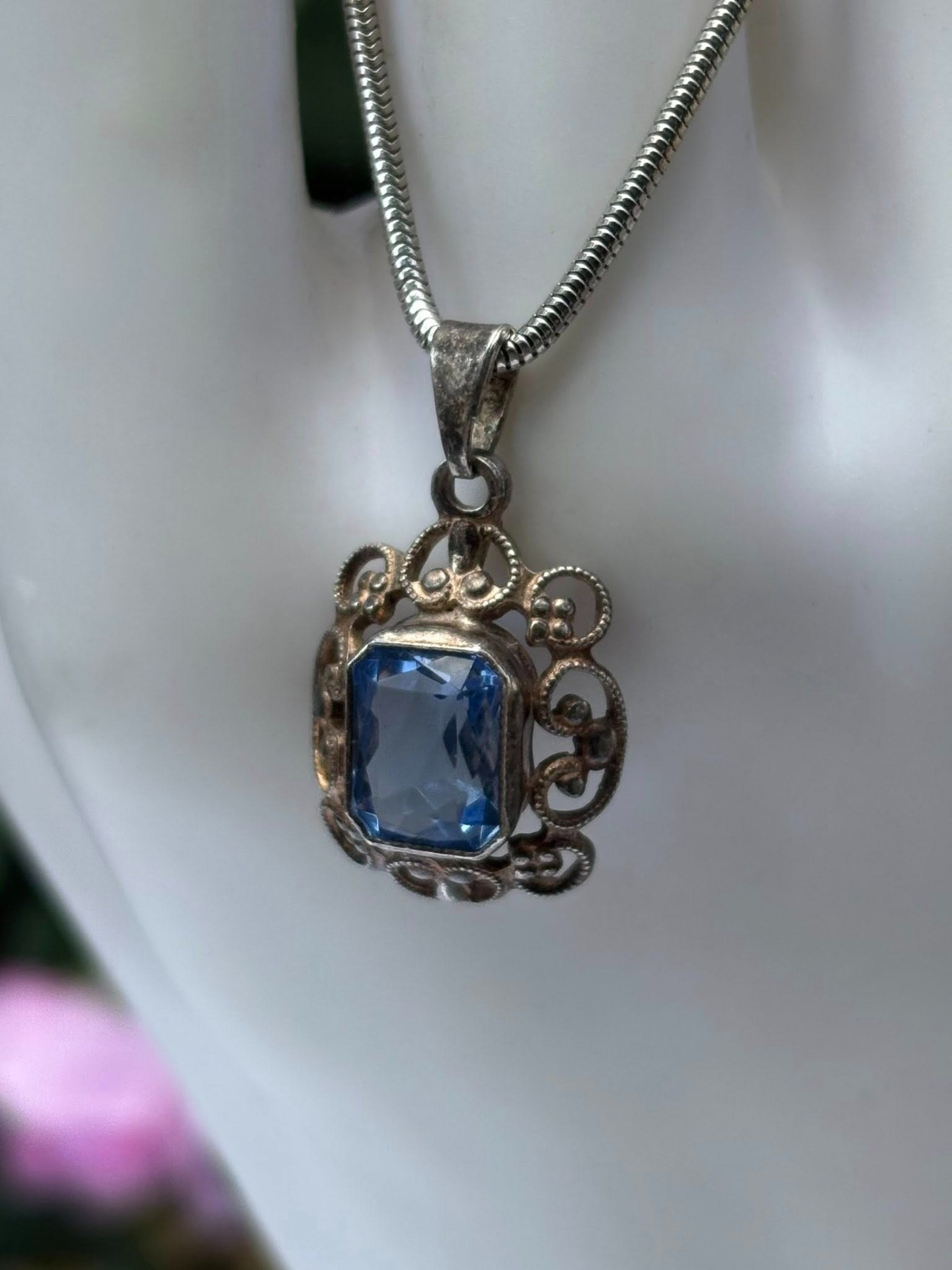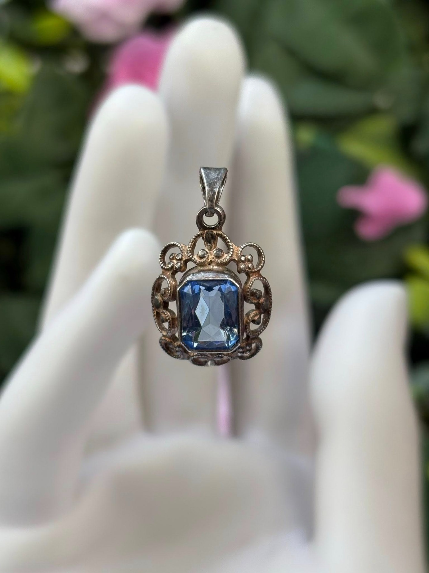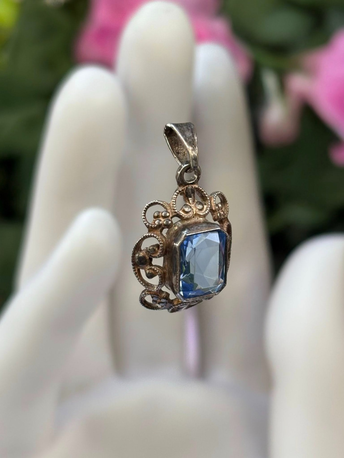 Pandantiv vechi din argint, cu piatră cubic zirconia.