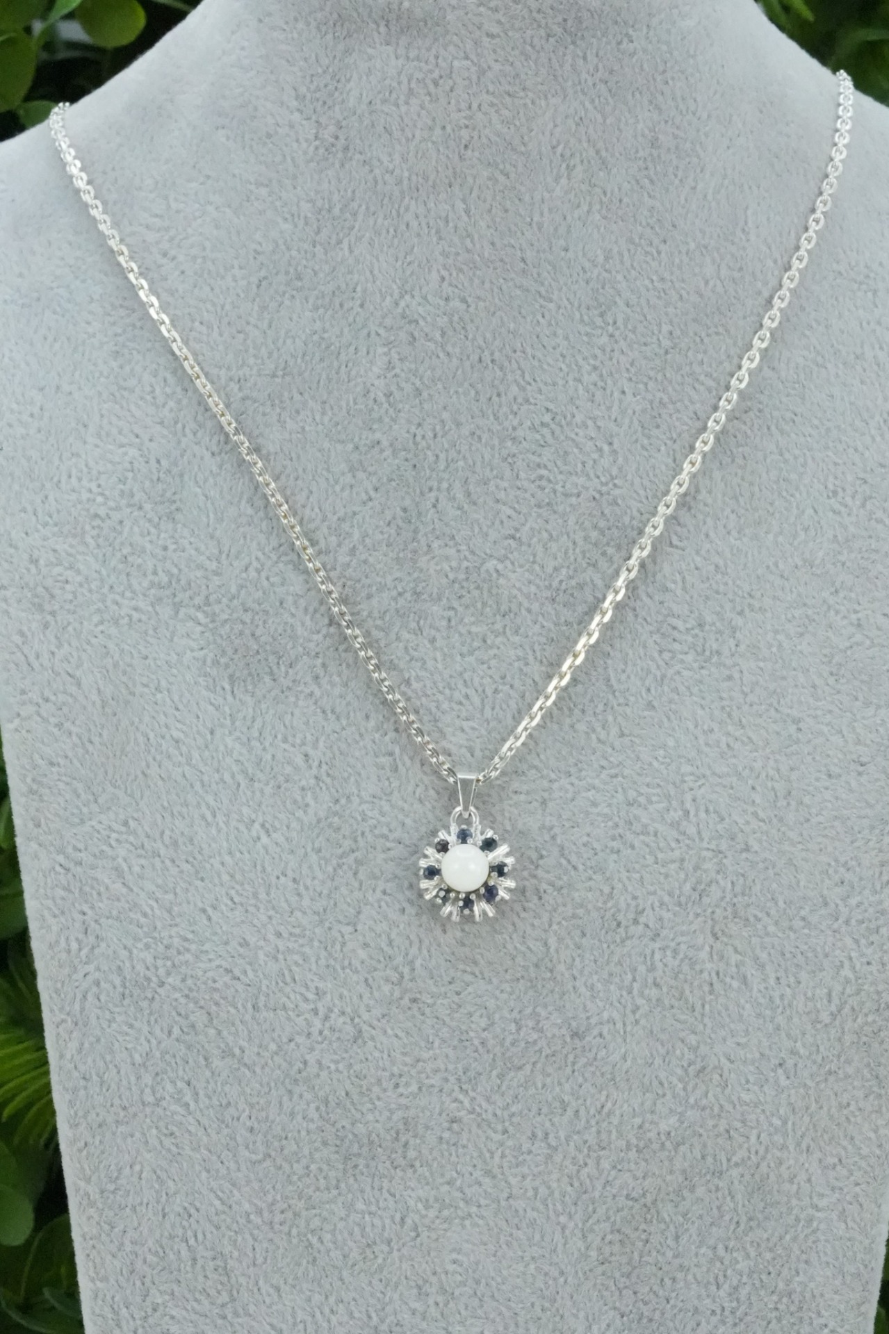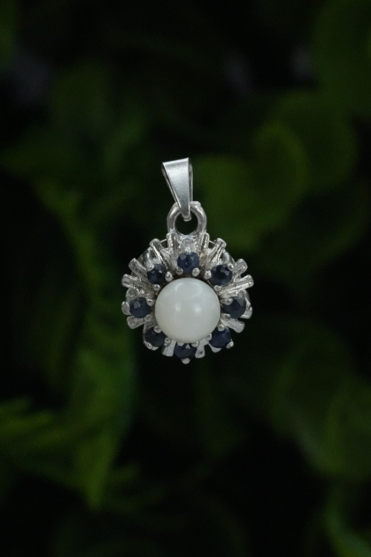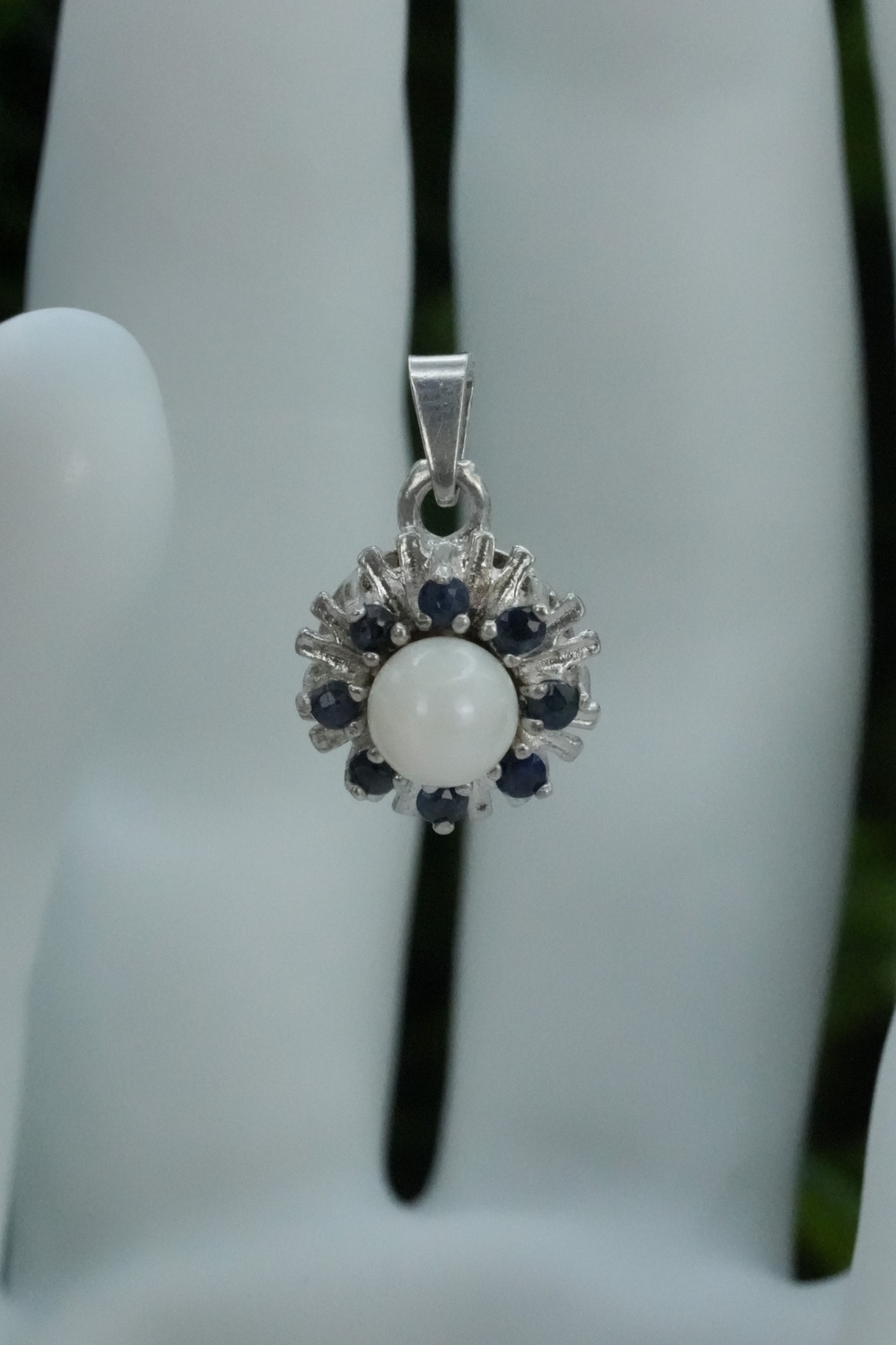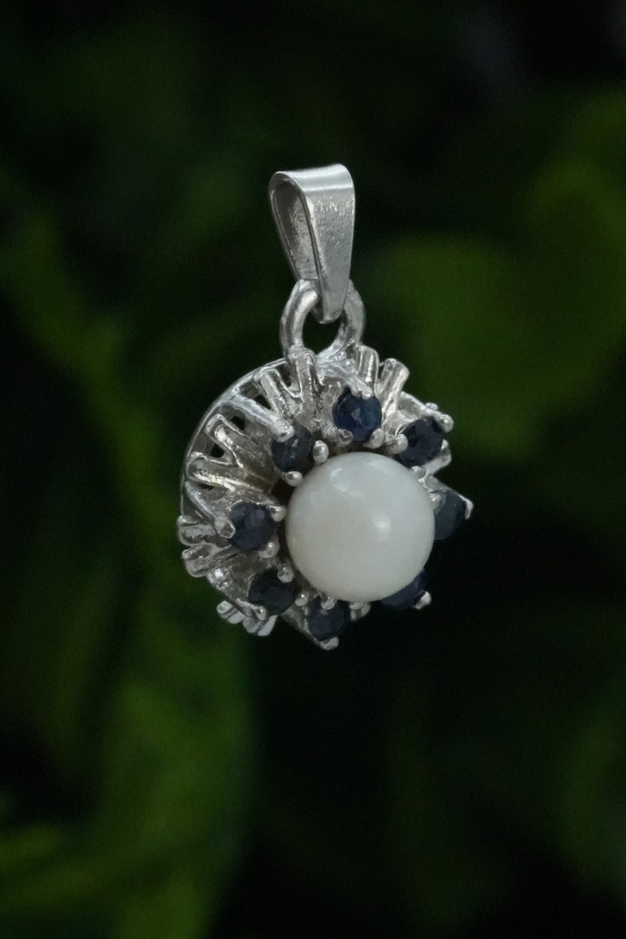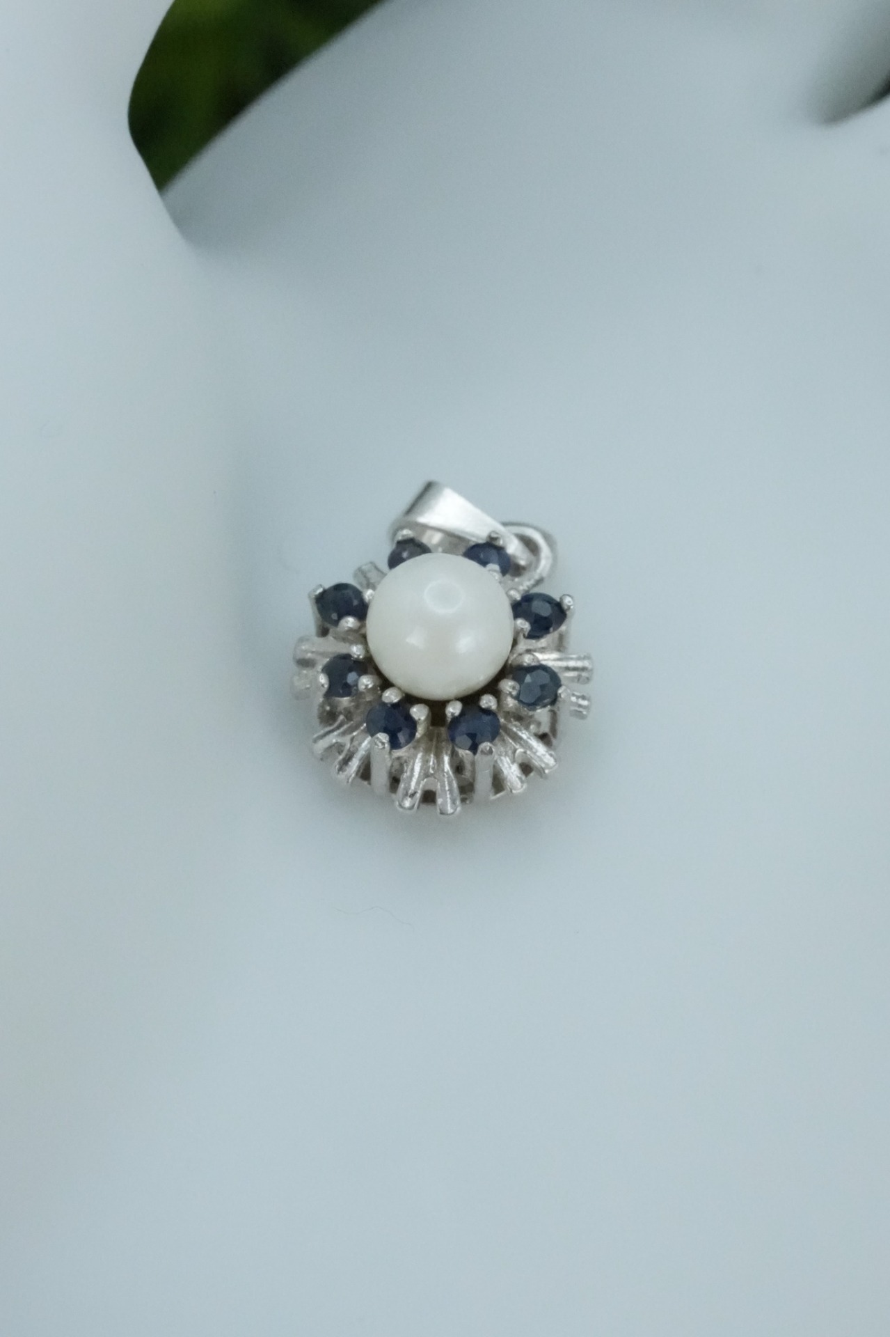 Pandantiv vechi din argint, cu safire naturale si perlă naturală de cultură.