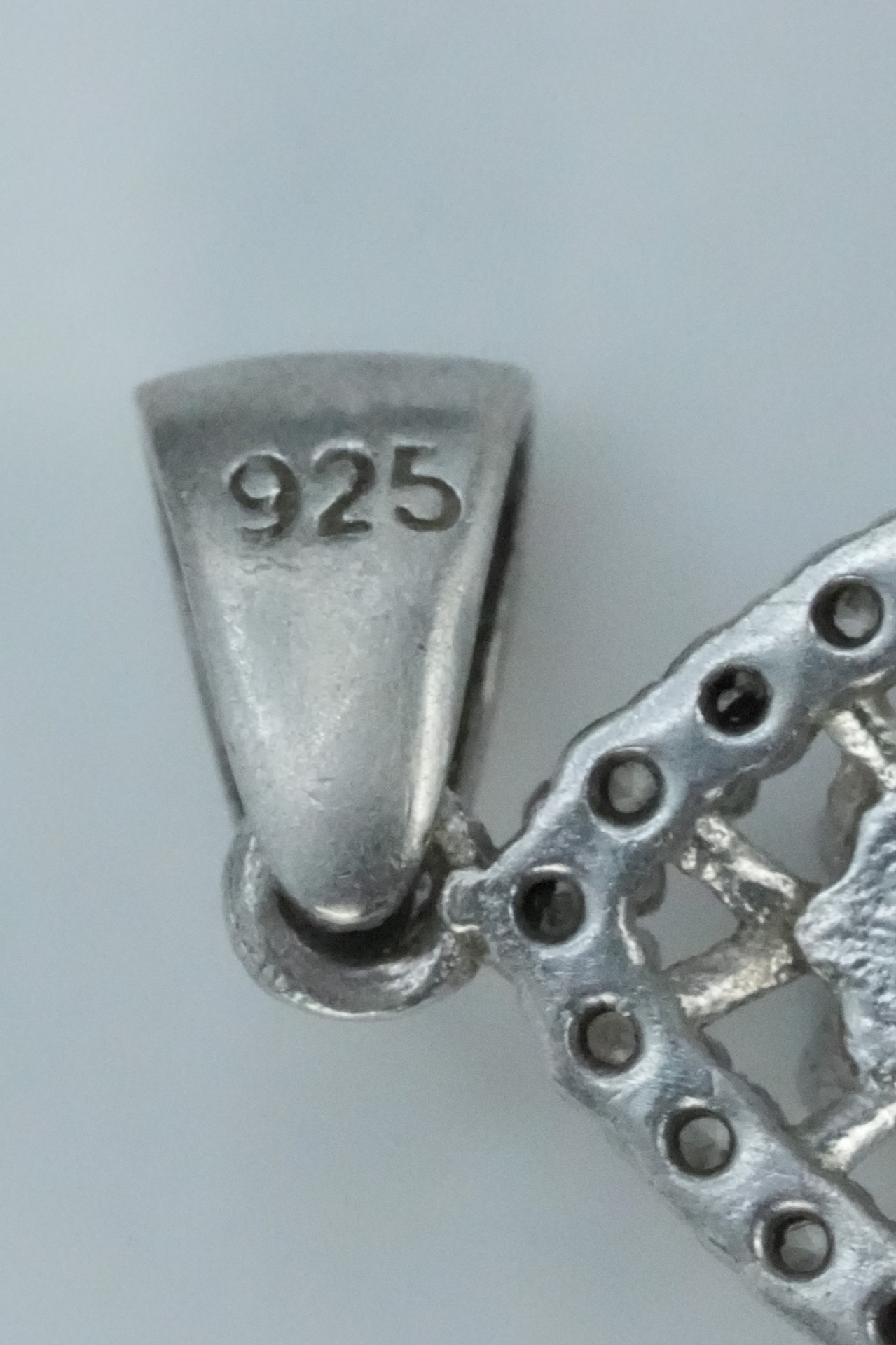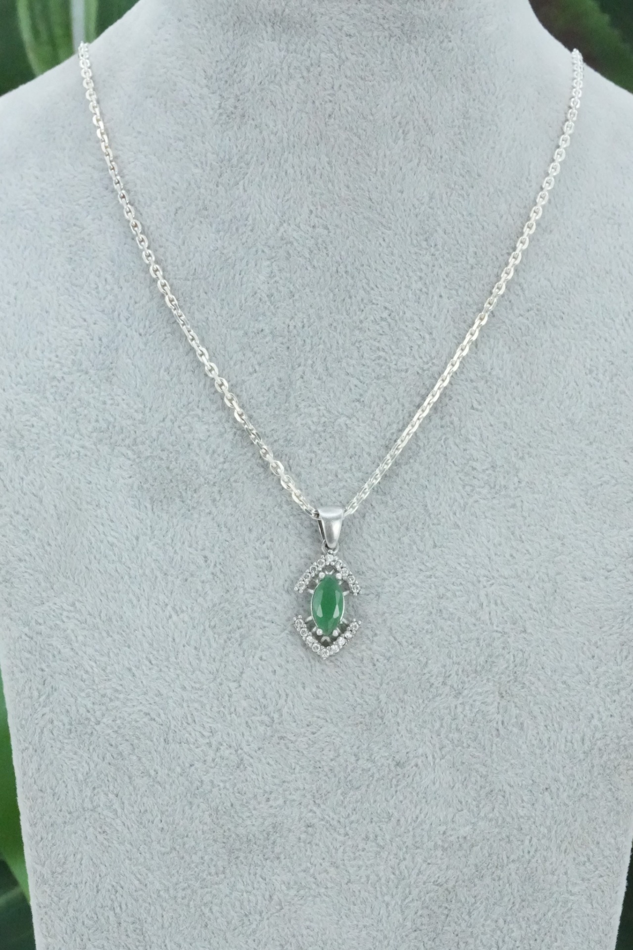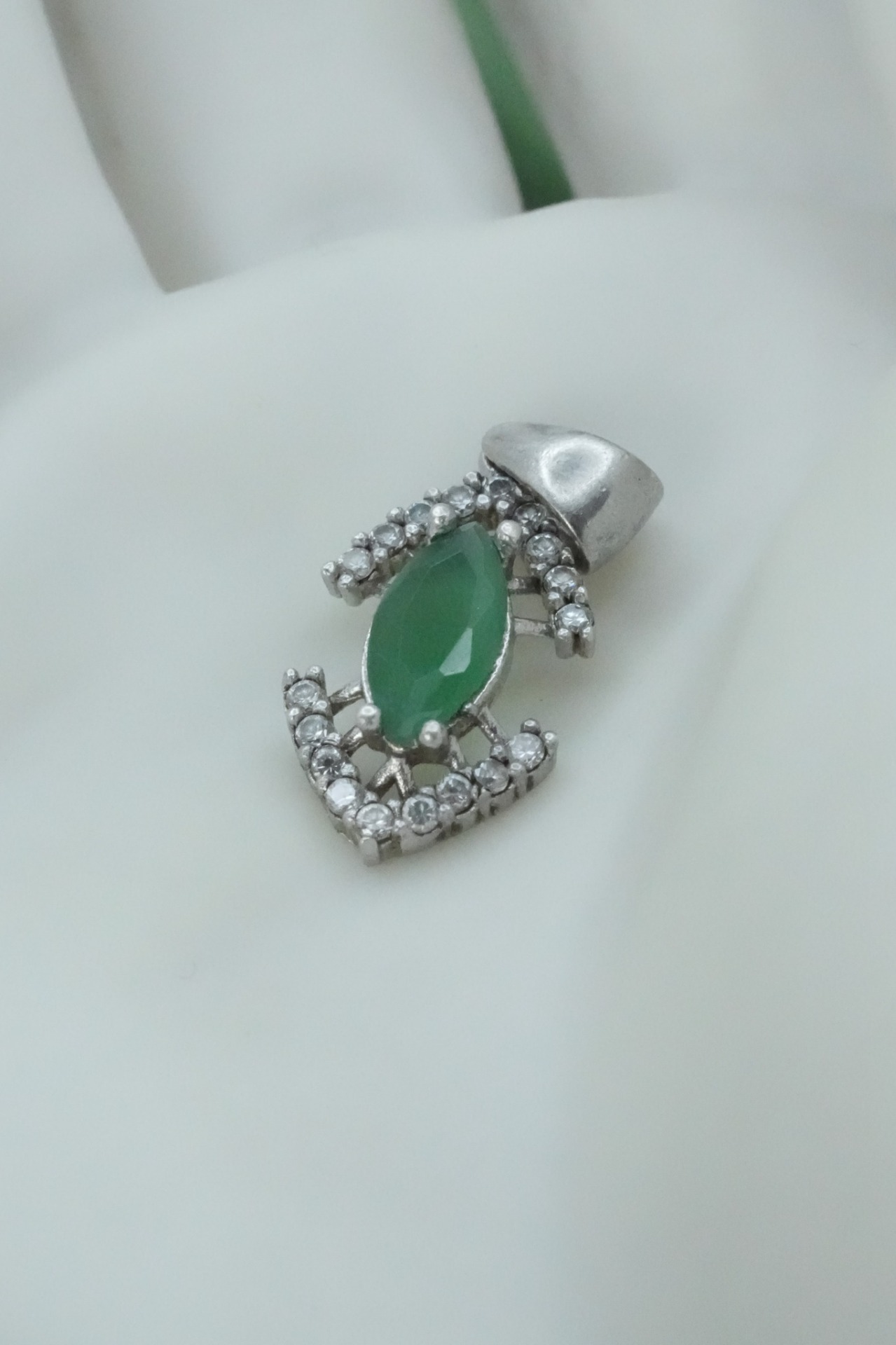 Pandantiv vechi din argint, cu smarald simulat și pietre cubic zirconia.