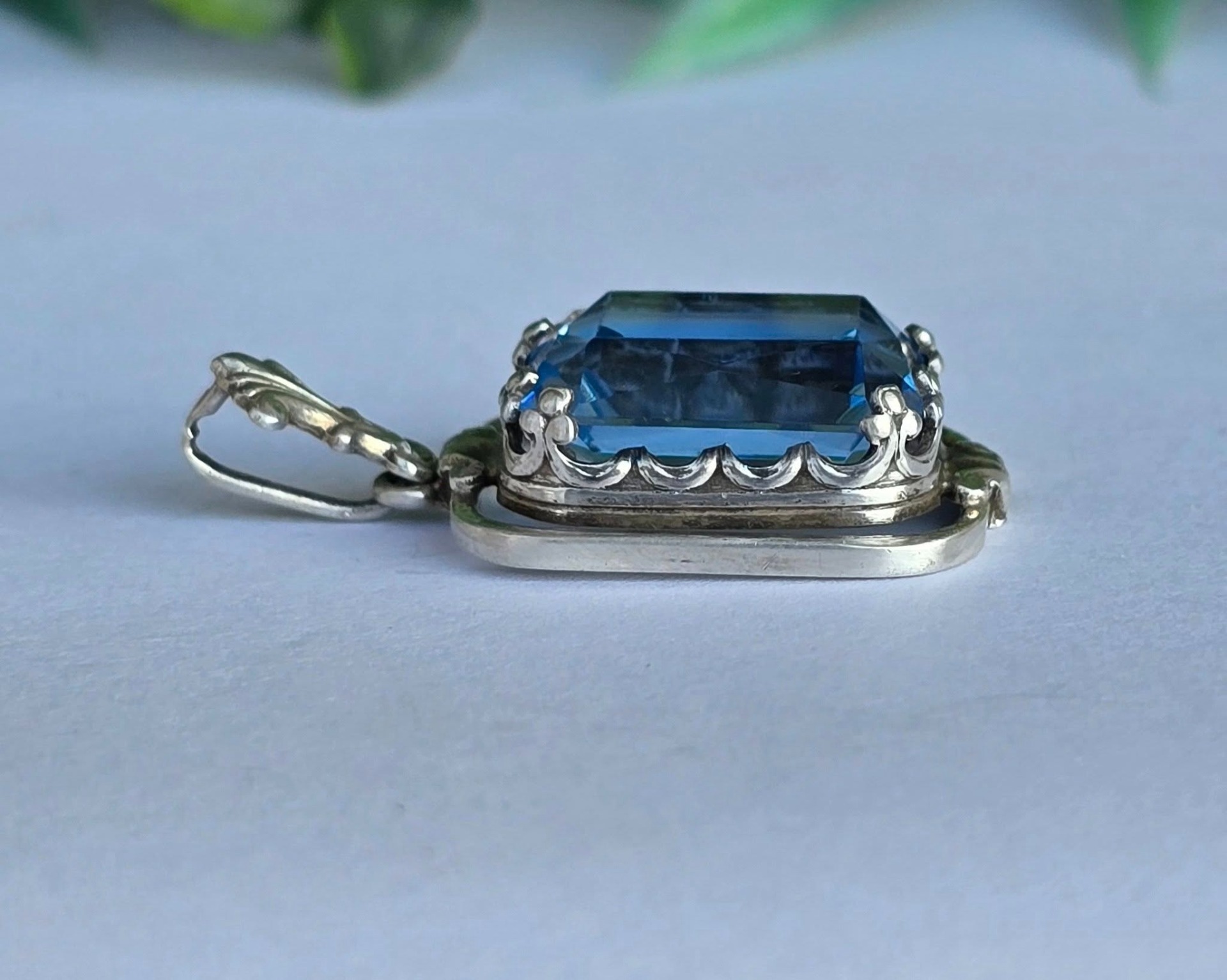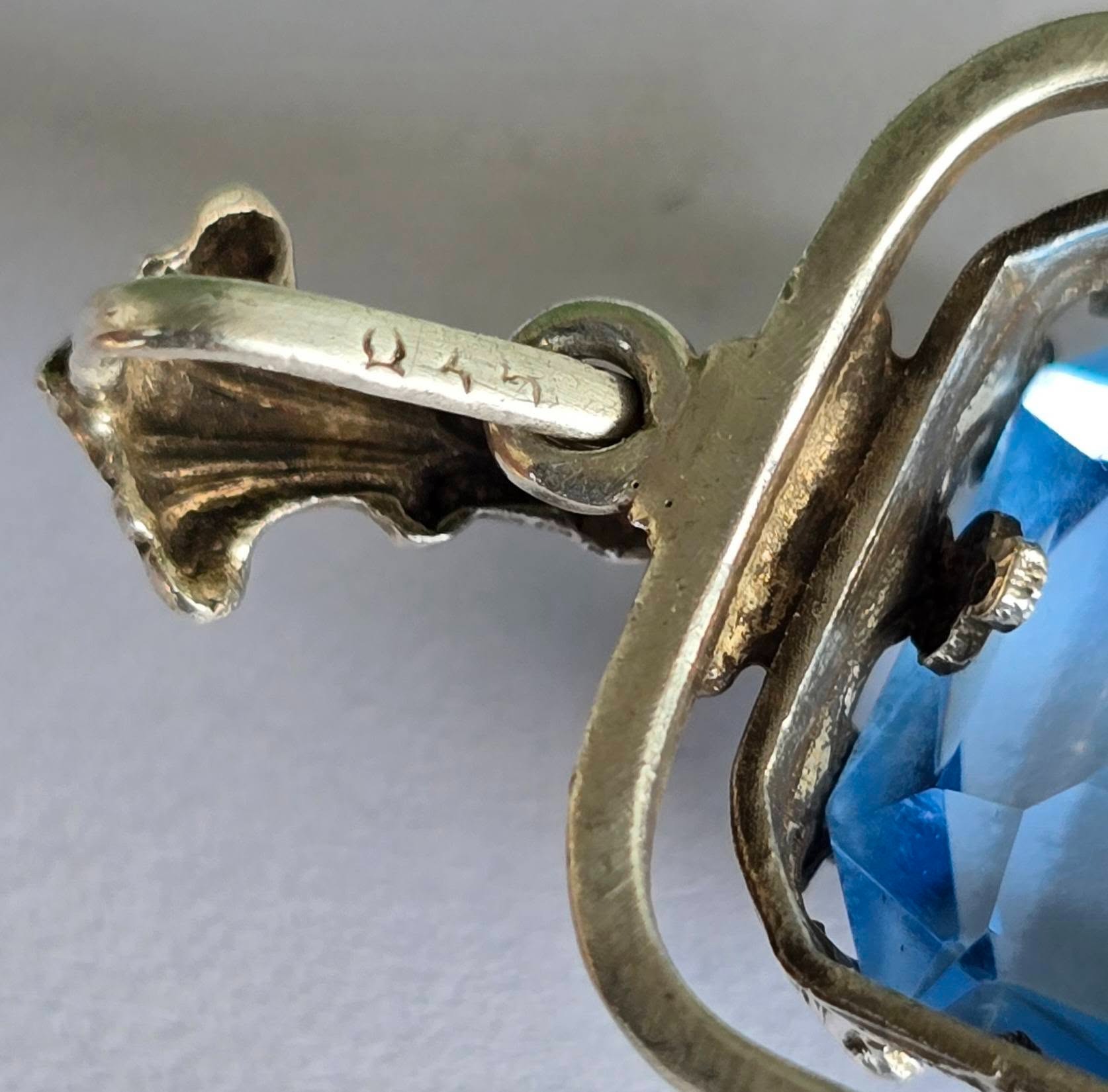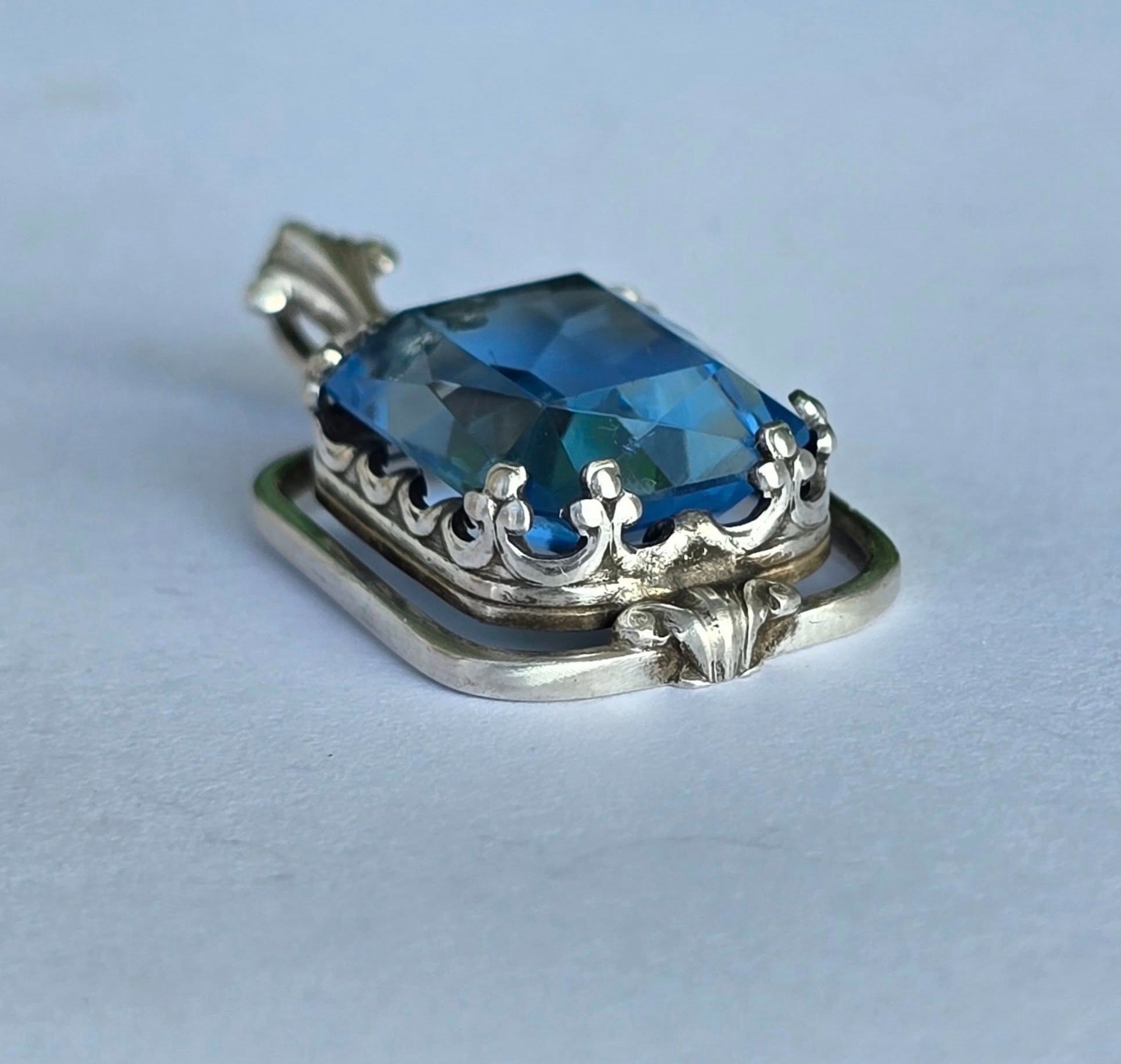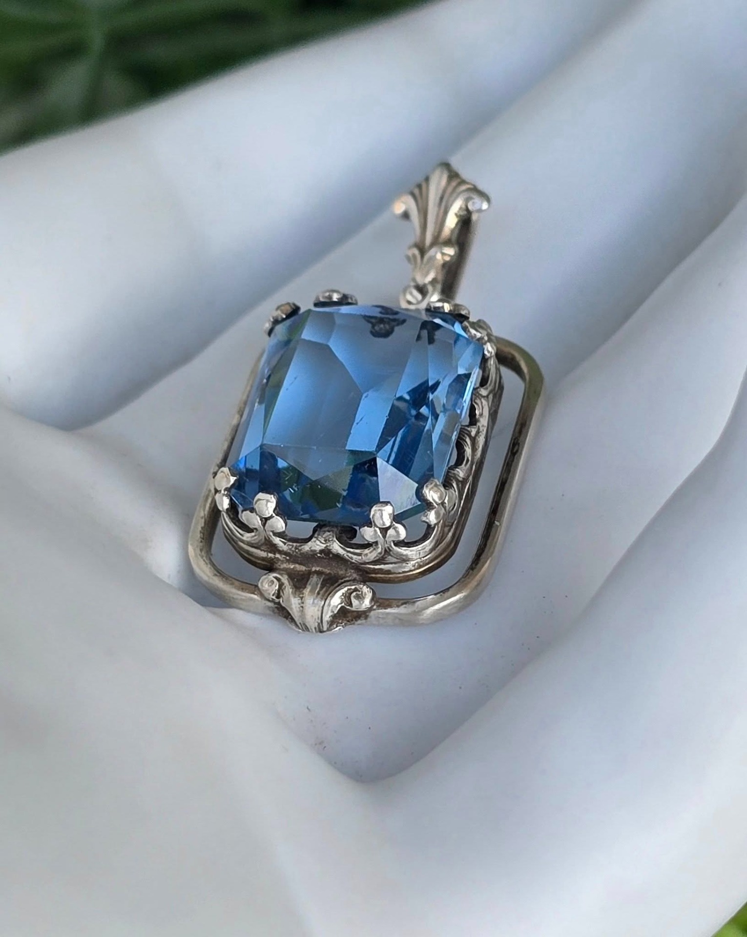 Pandantiv vechi din argint, cu topaz simulat, în montură frumos stilizată sub forma unei coroane și anou sub formă de crin imperial (anii 1930-1940, Germania).