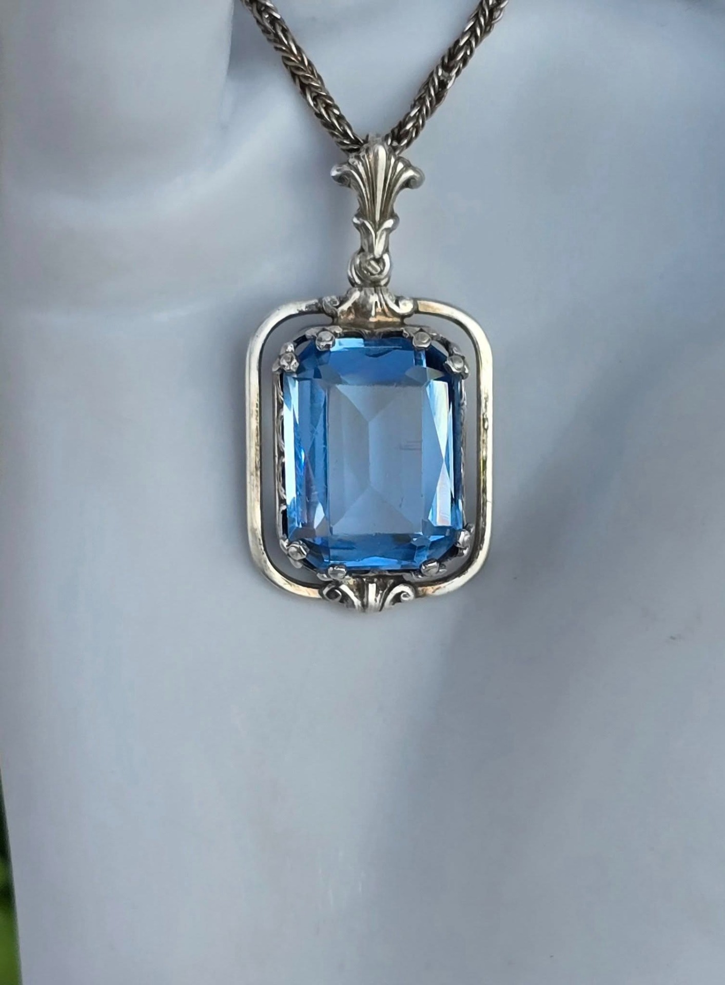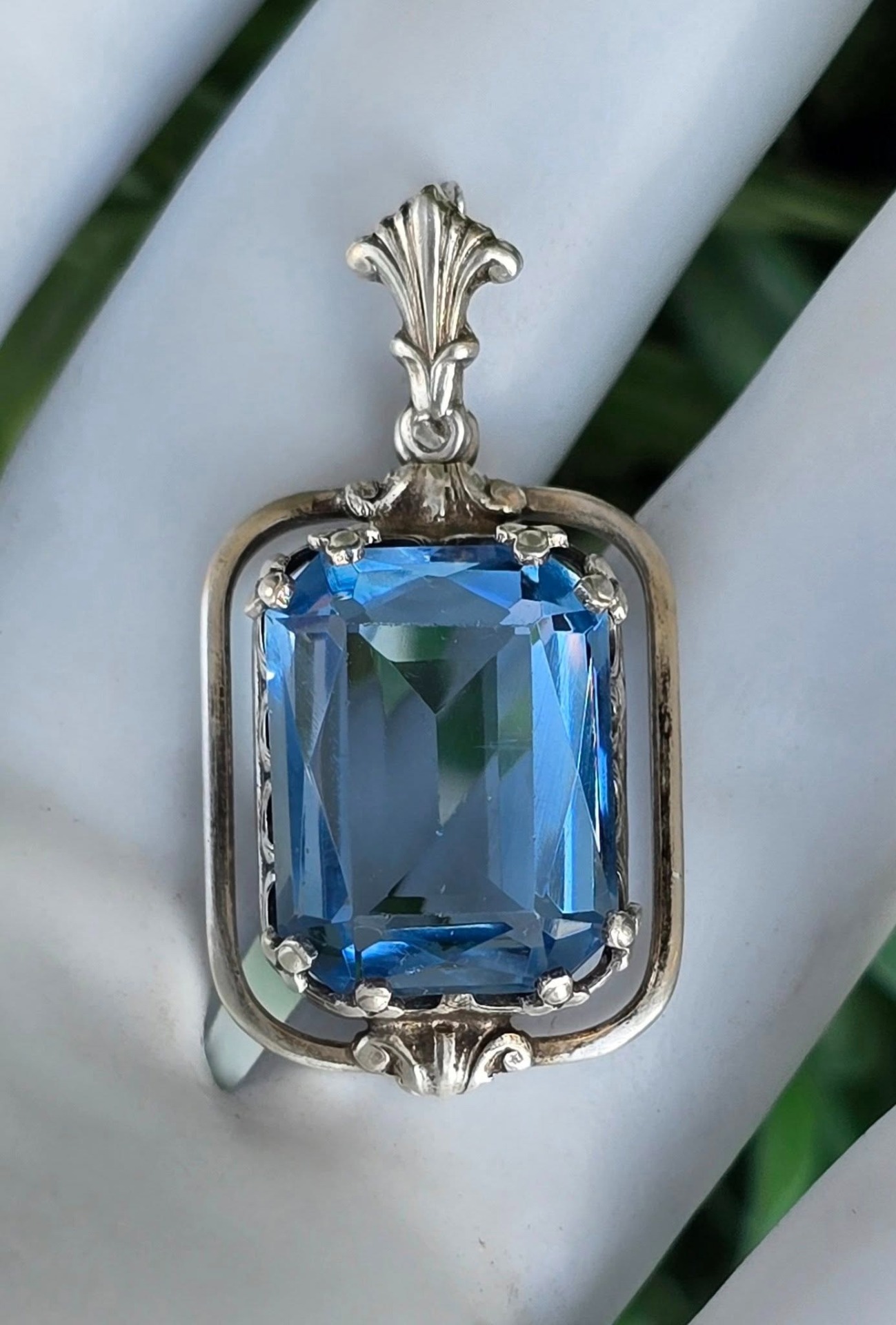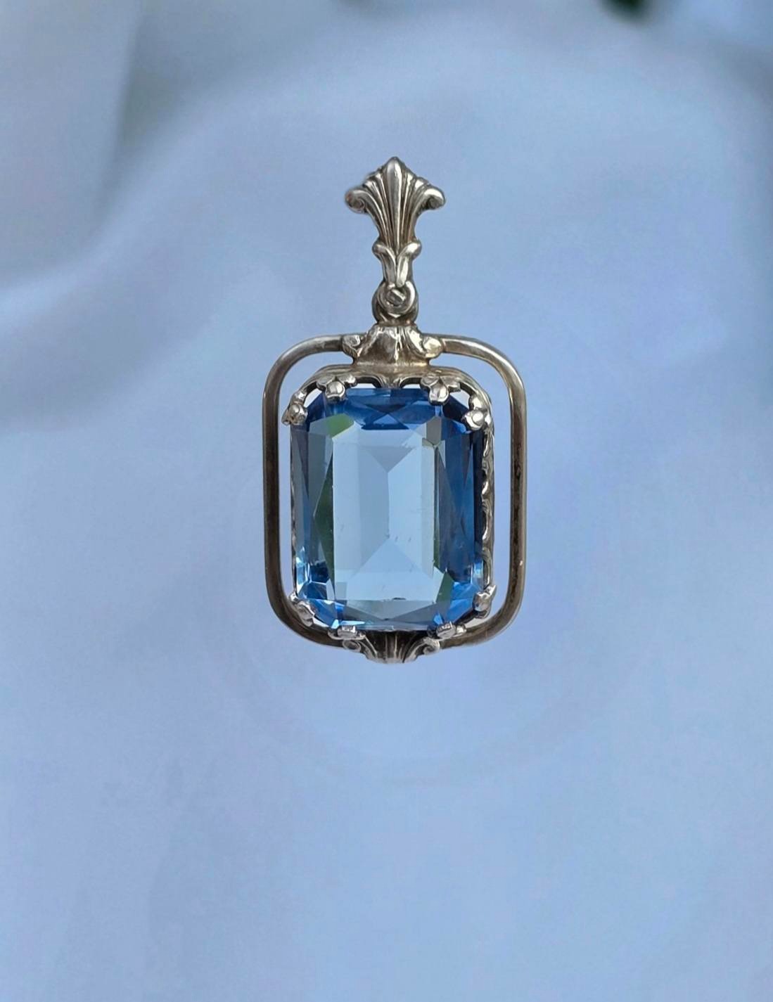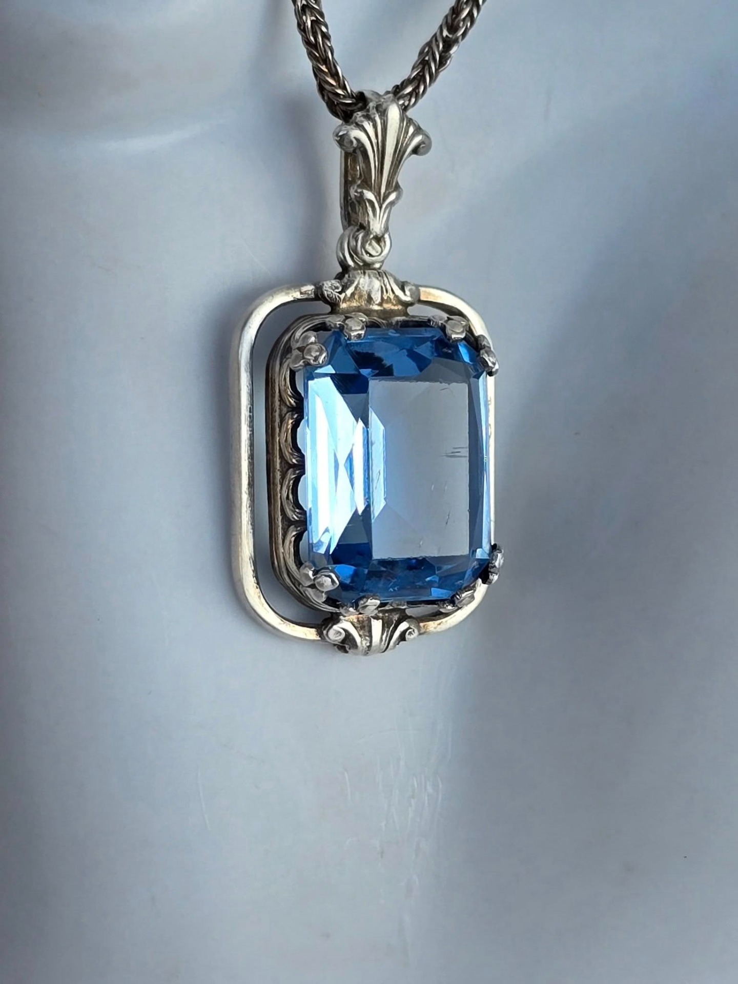 Pandantiv vechi din argint, cu topaz simulat, în montură frumos stilizată sub forma unei coroane și anou sub formă de crin imperial (anii 1930-1940, Germania).