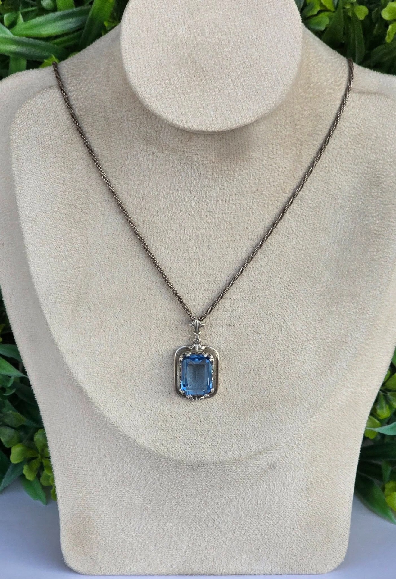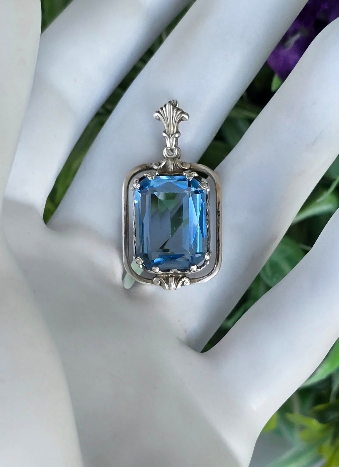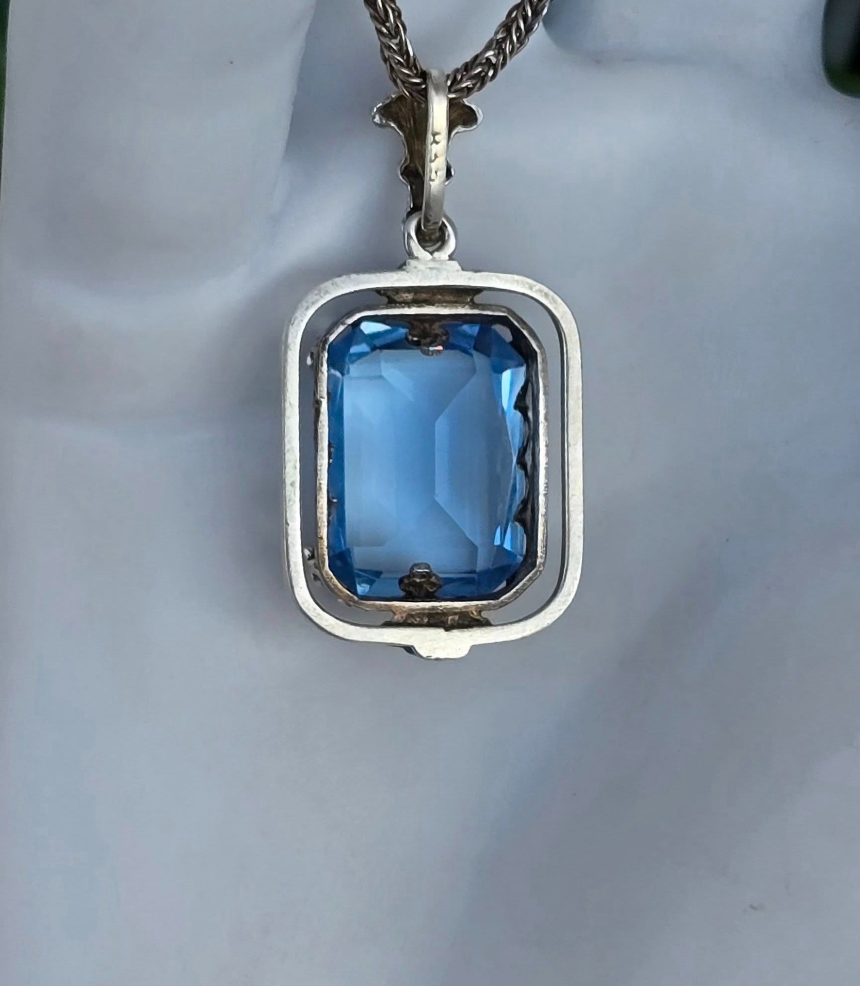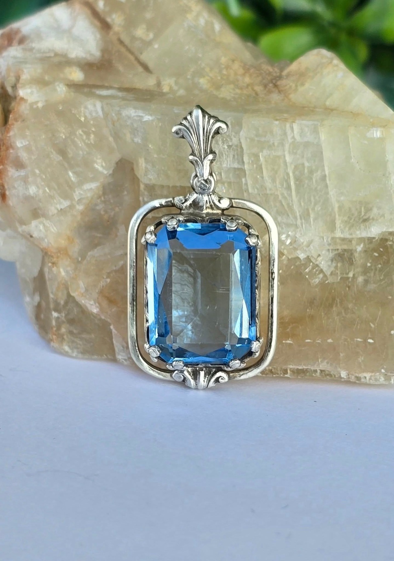 Pandantiv vechi din argint, cu topaz simulat, în montură frumos stilizată sub forma unei coroane și anou sub formă de crin imperial (anii 1930-1940, Germania).