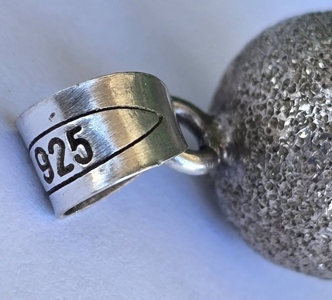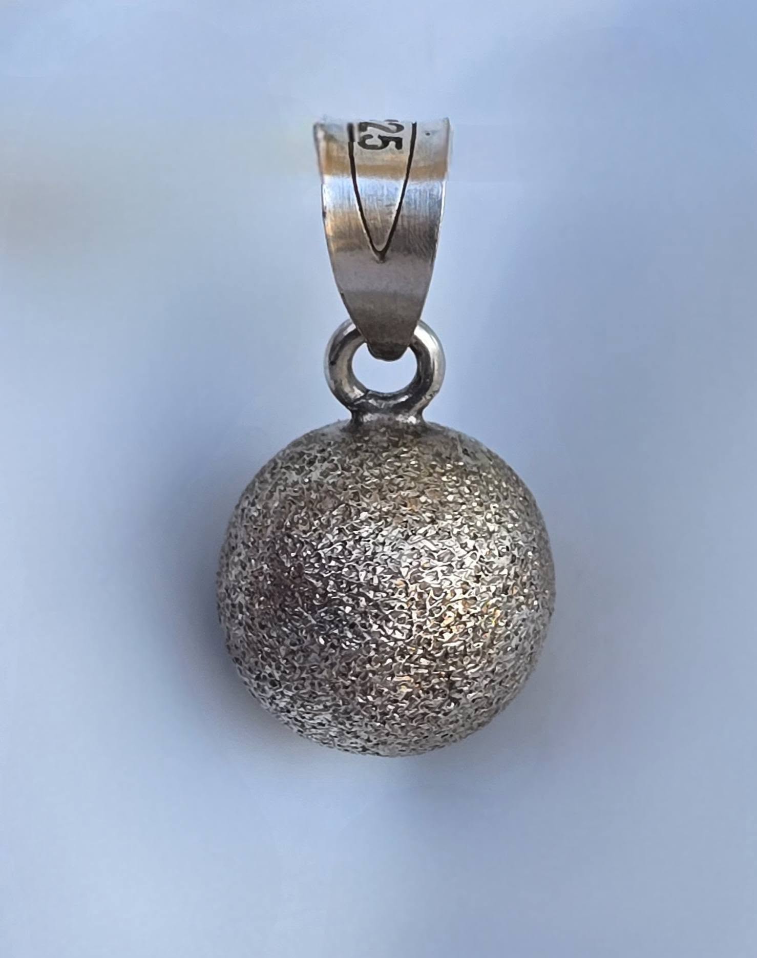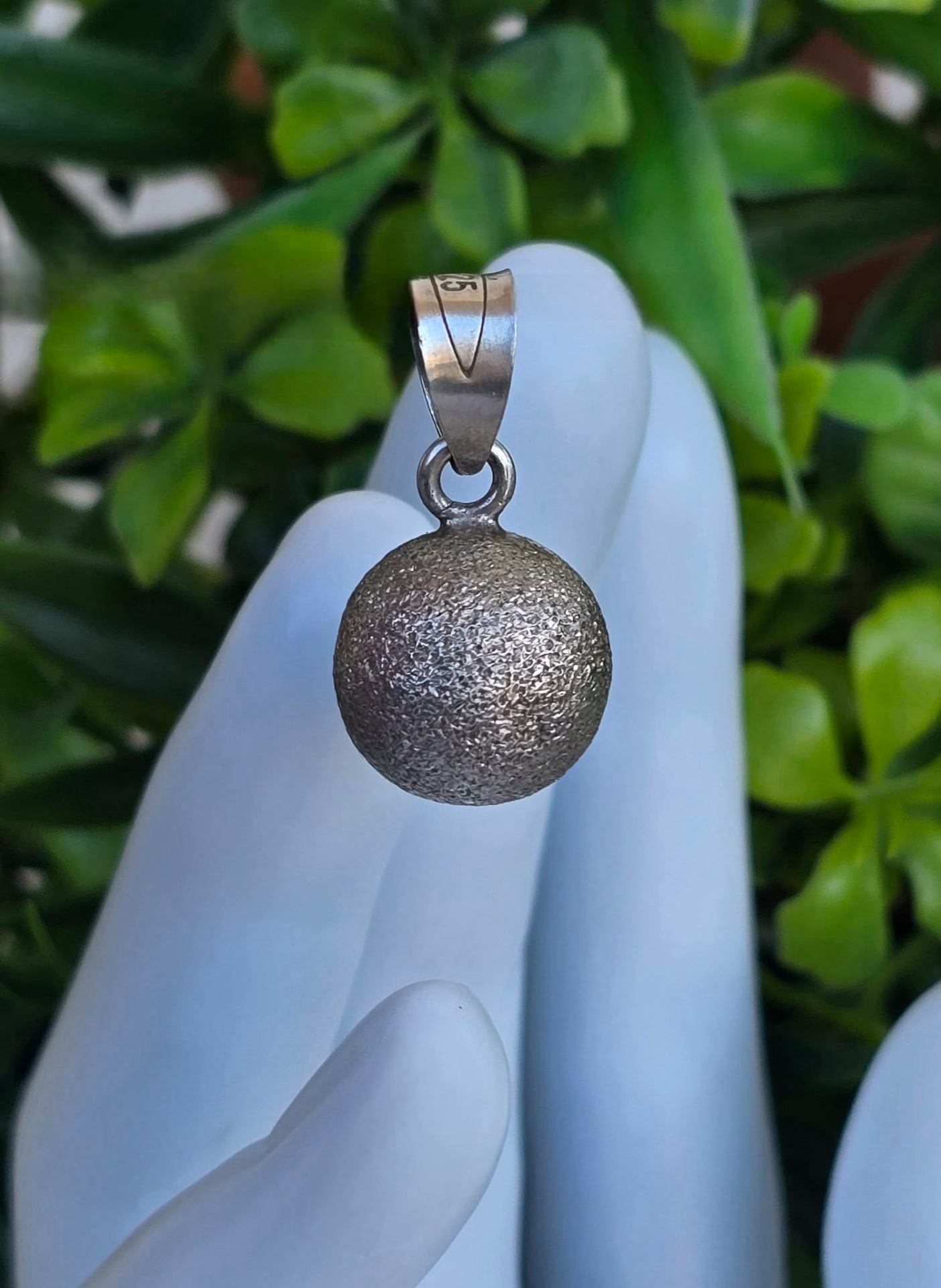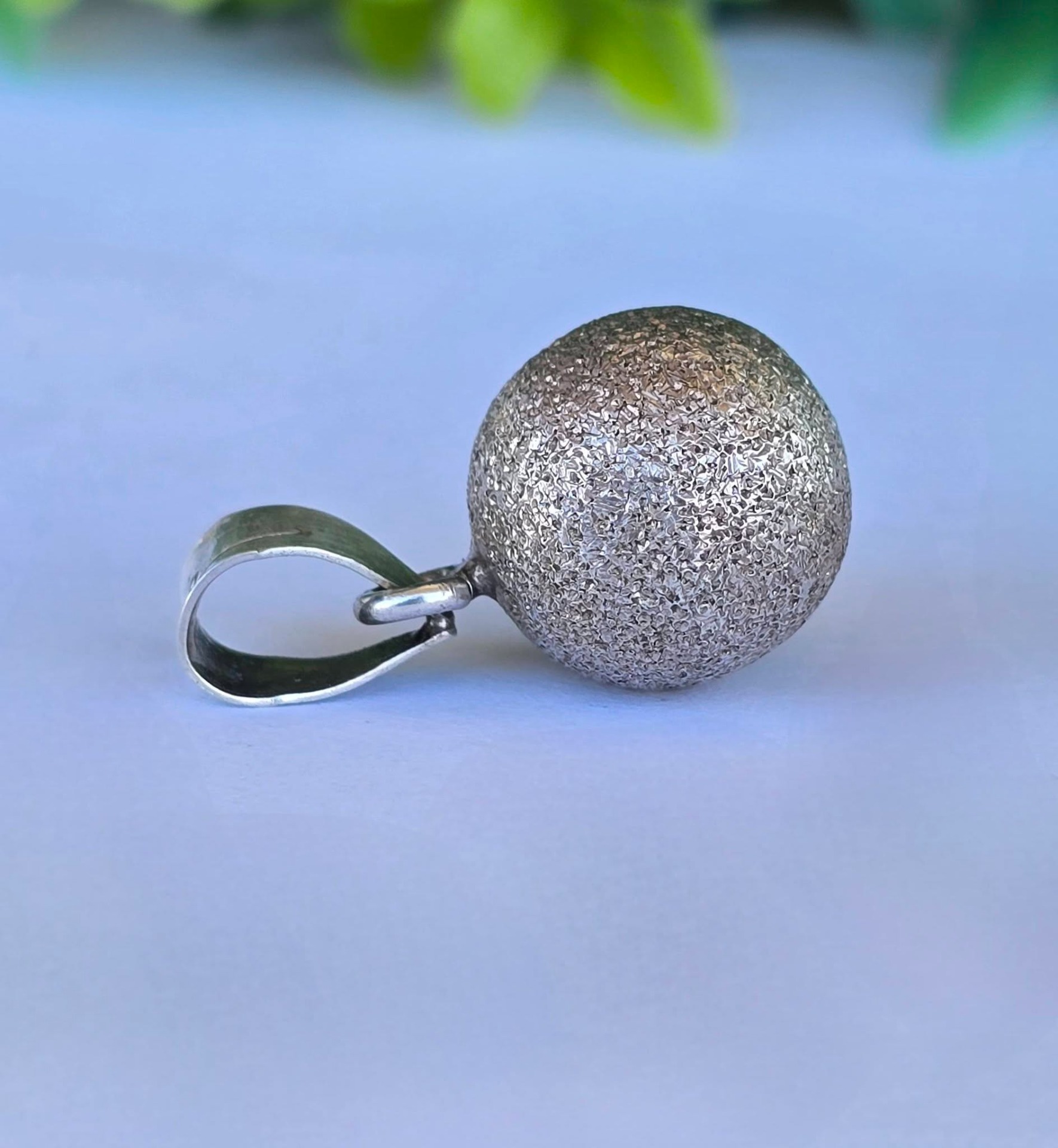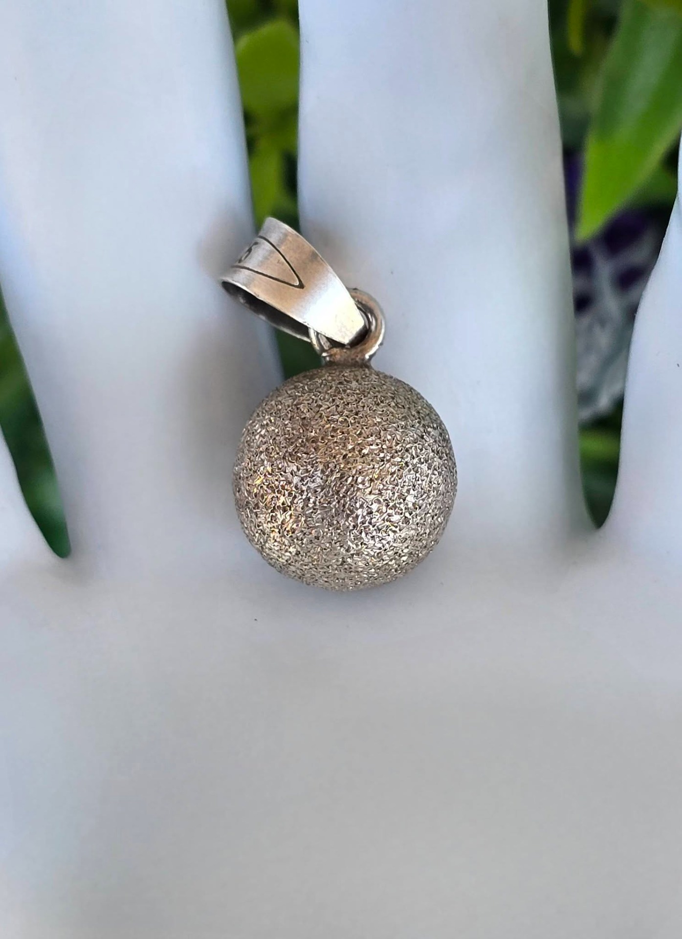 Pandantiv vechi din argint, frumos lucrat manual, cu sferă din argint sablat, cu finisaj diamantat.