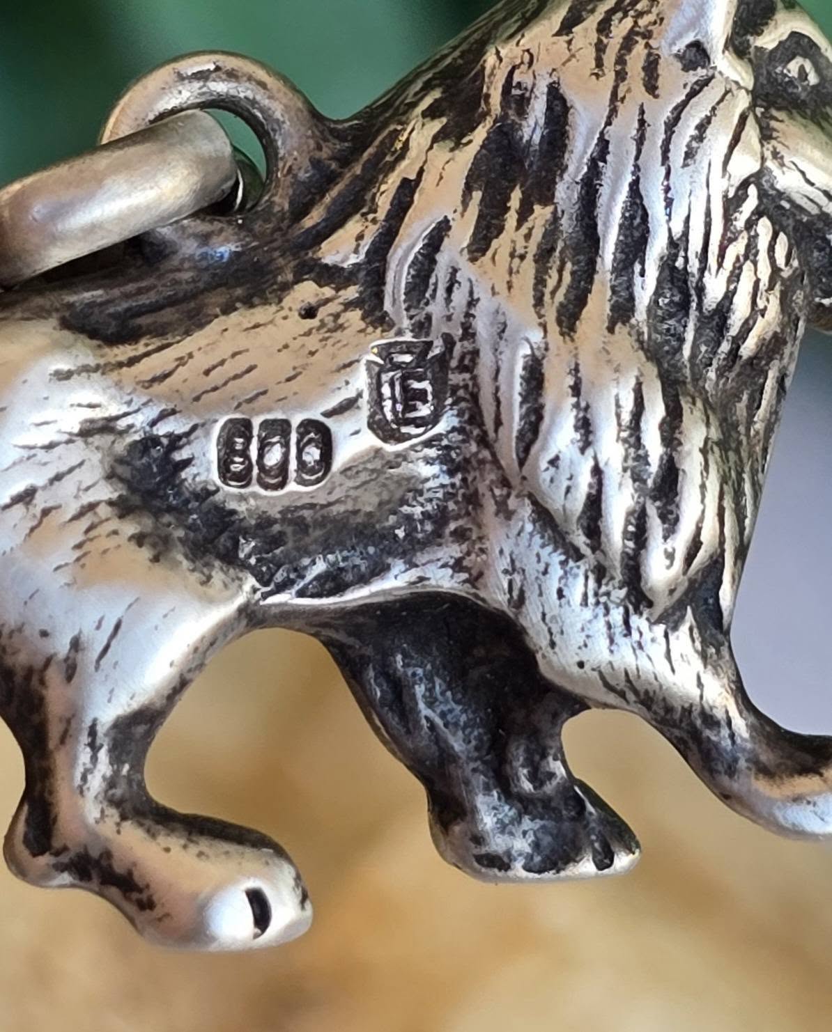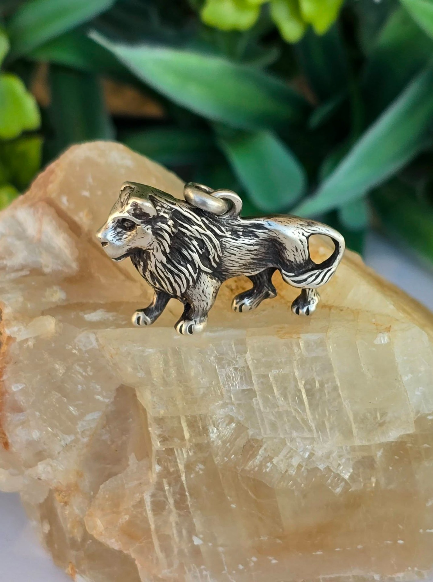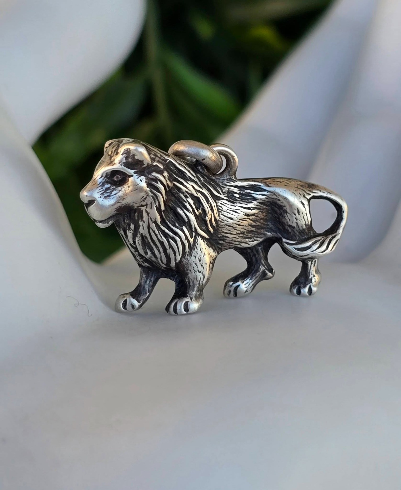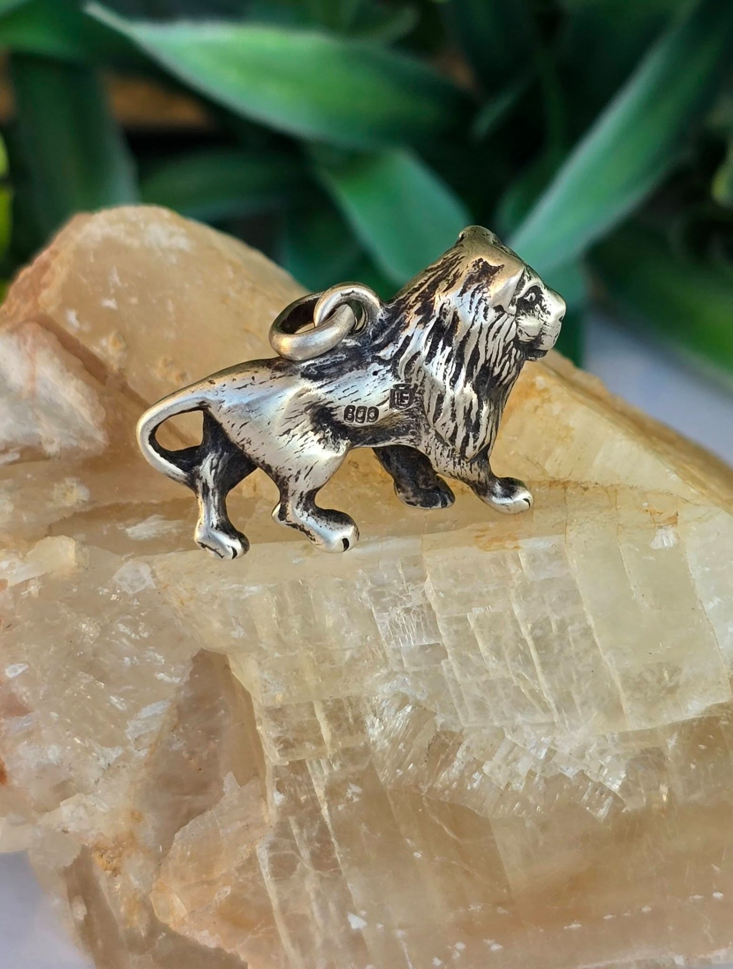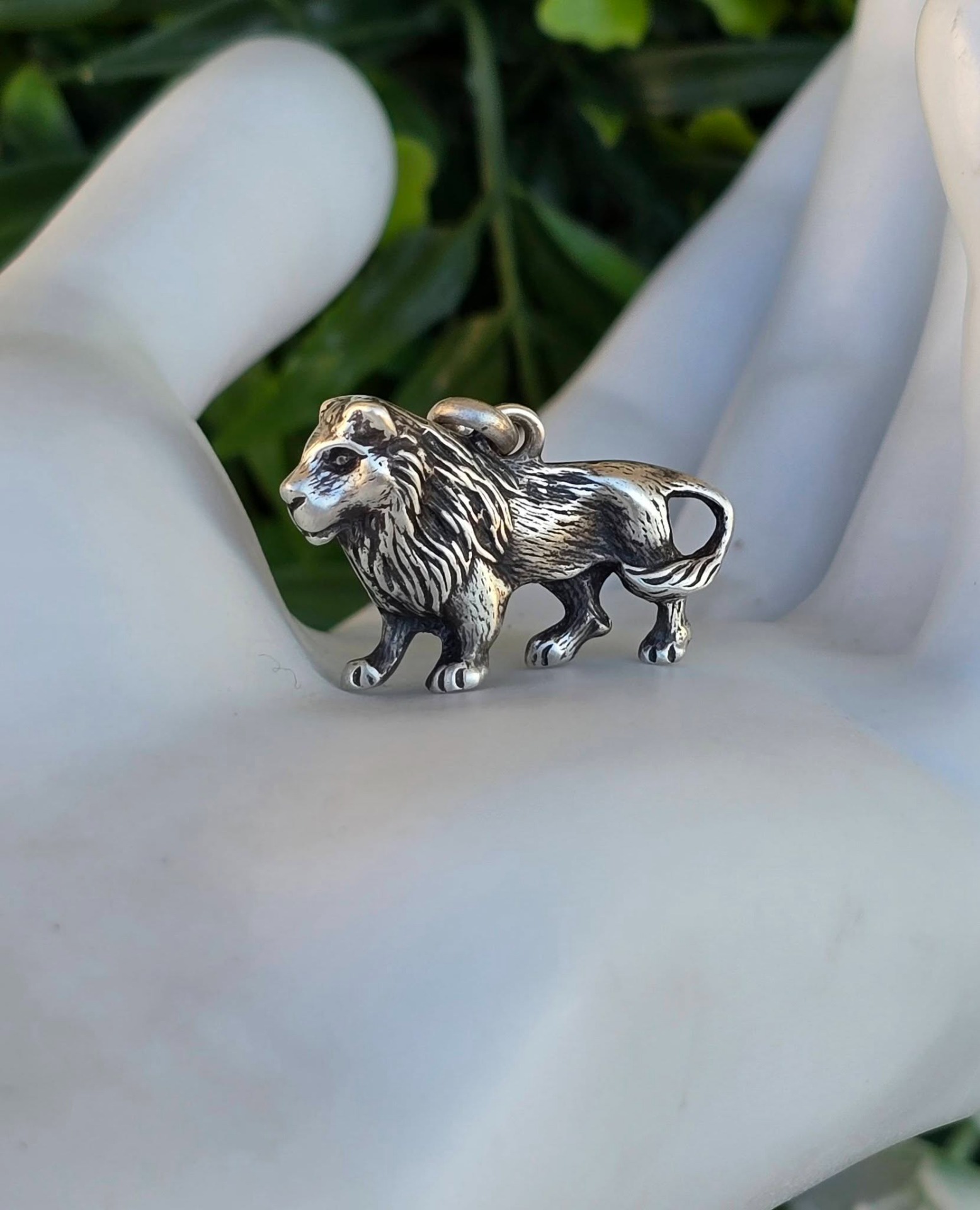 Pandantiv vechi din argint, stilizat sub forma unui leu.
