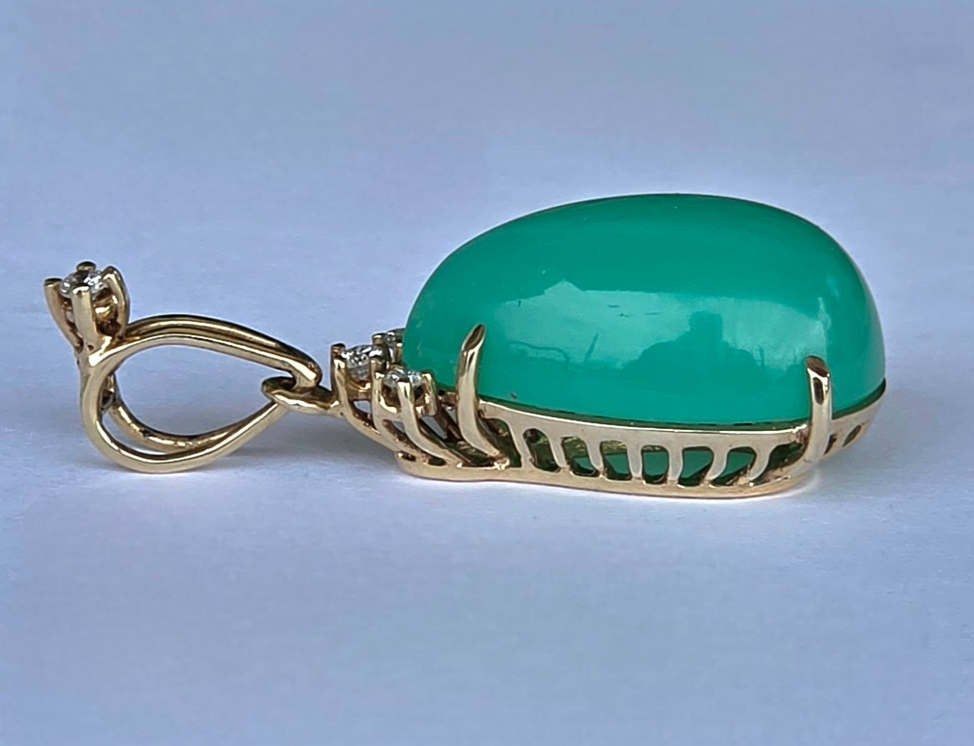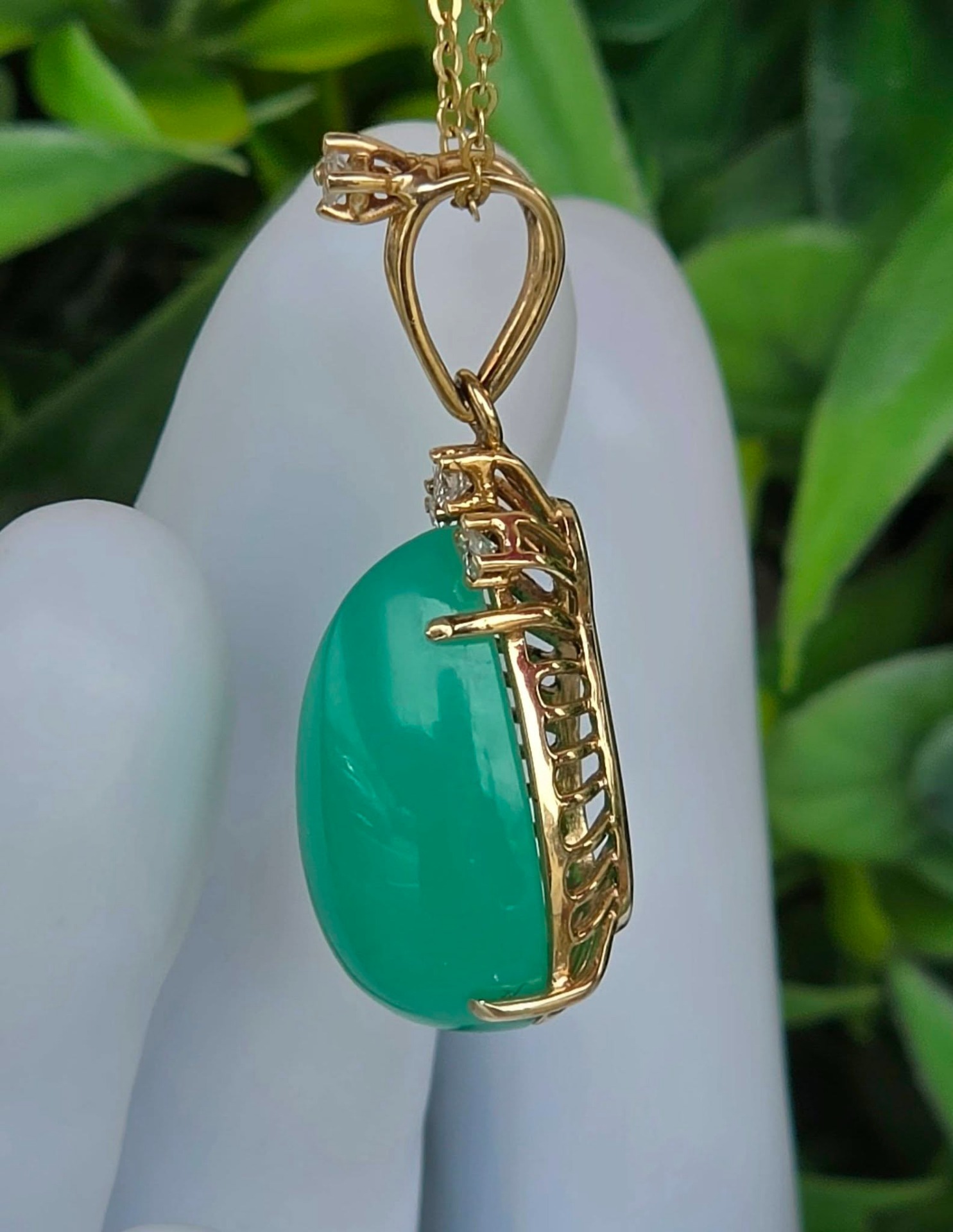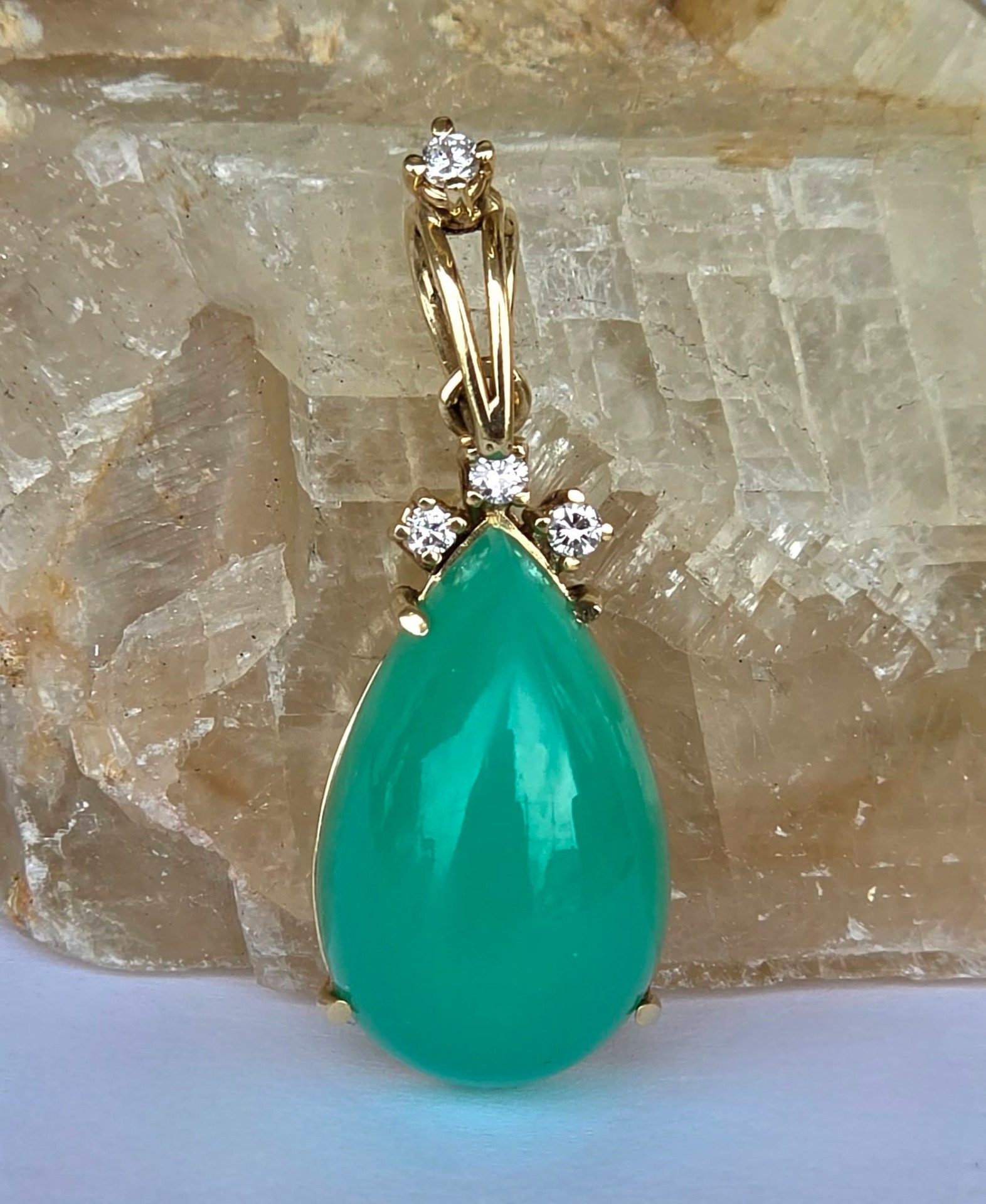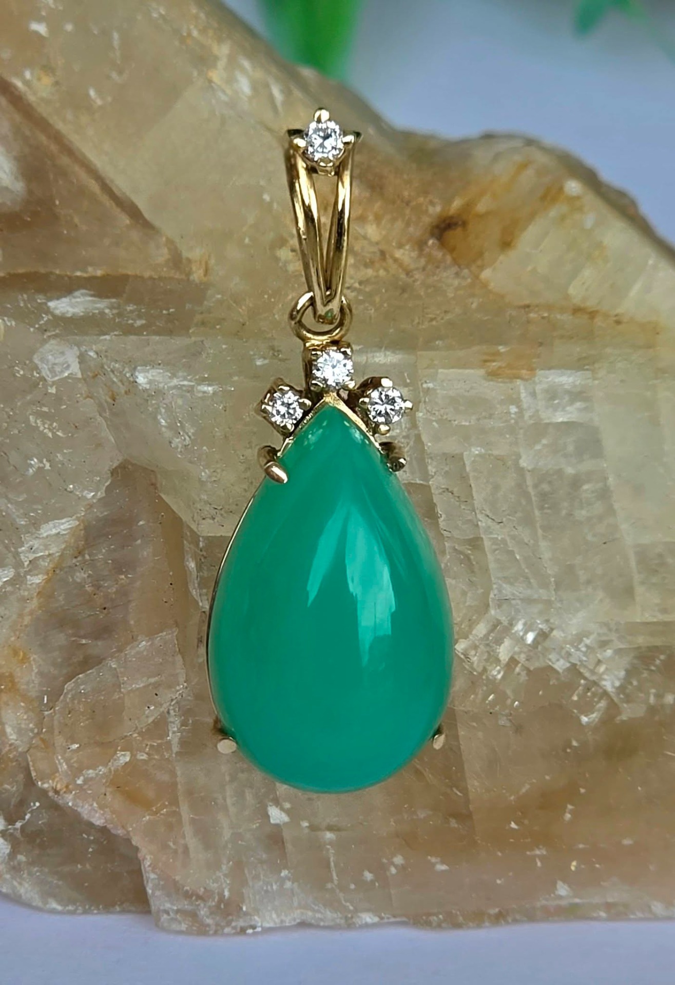 Pandantiv vechi din aur de 14K, cu un superb crisopraz natural și 4 diamante naturale.