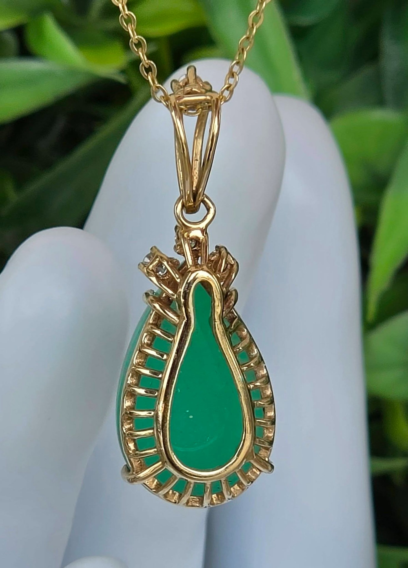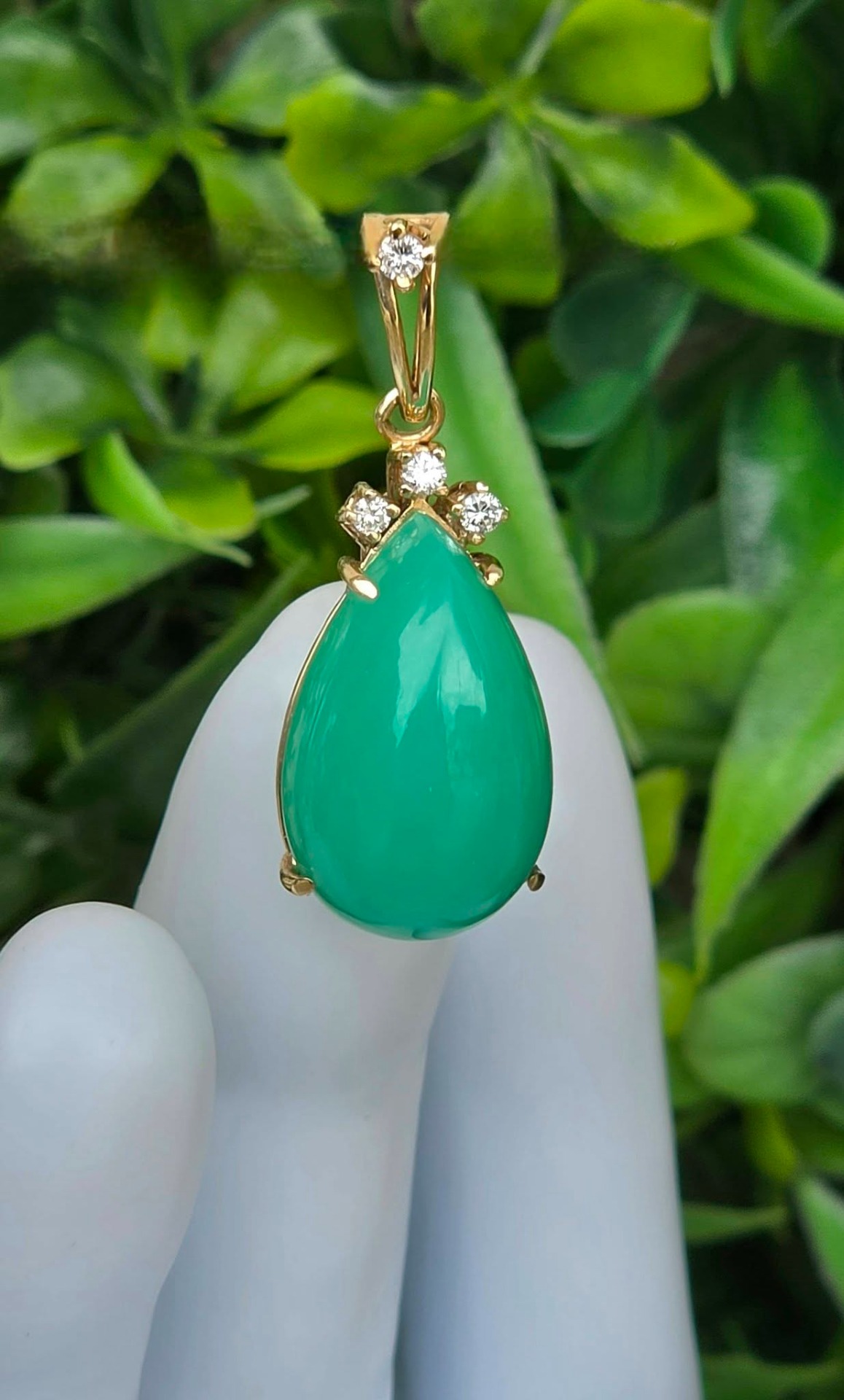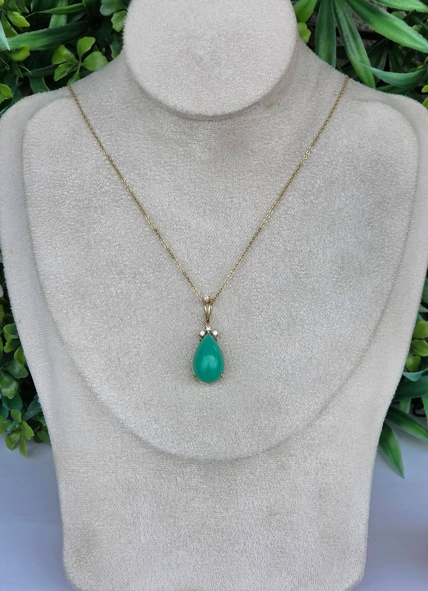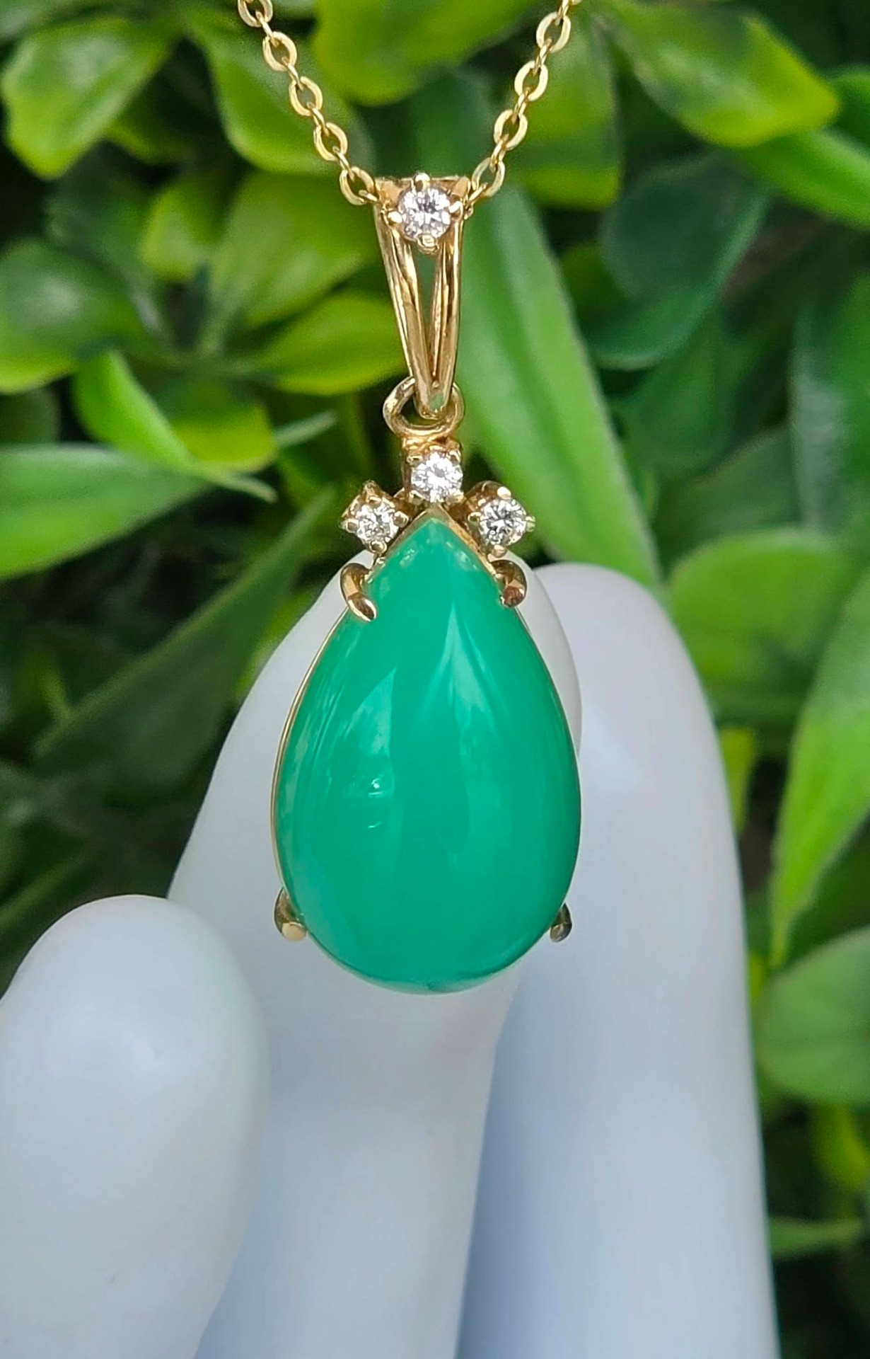 Pandantiv vechi din aur de 14K, cu un superb crisopraz natural și 4 diamante naturale.