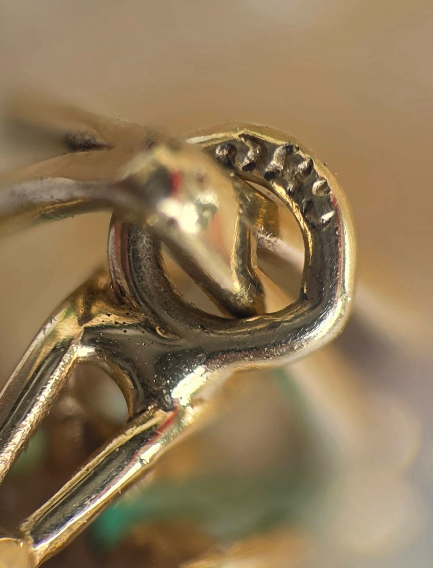 Prezintă marcaj 585 pentru puritate aur de 14K.