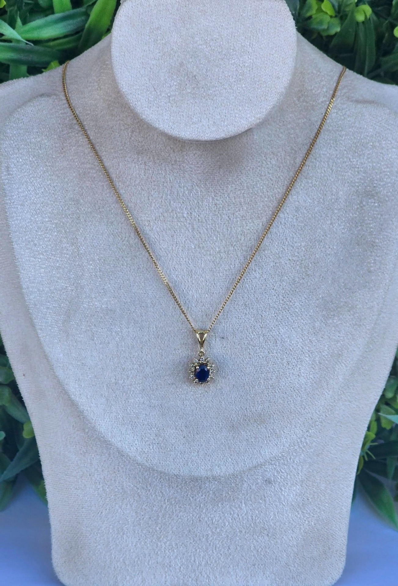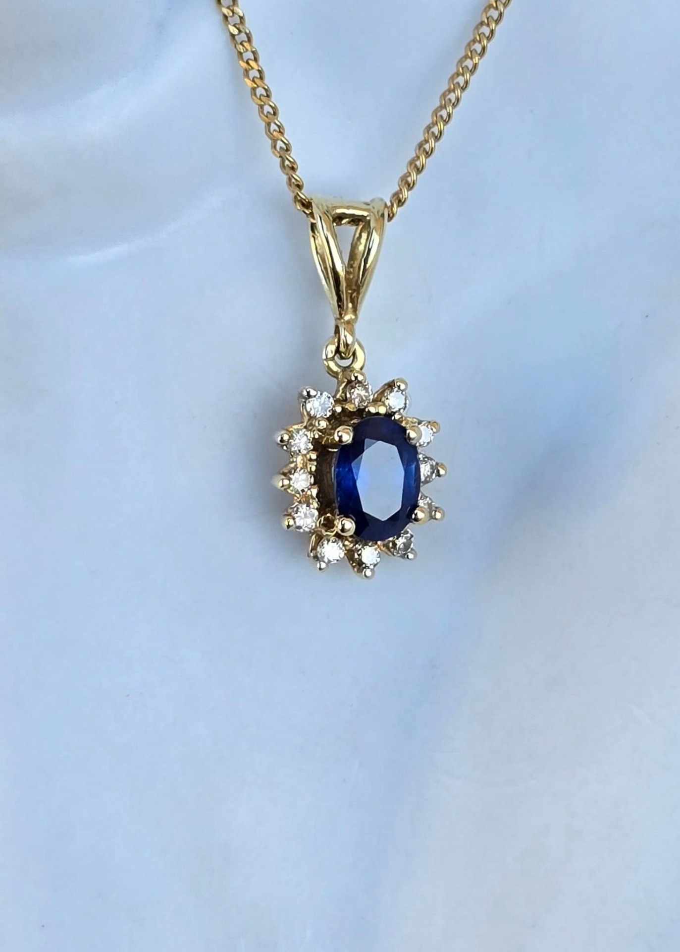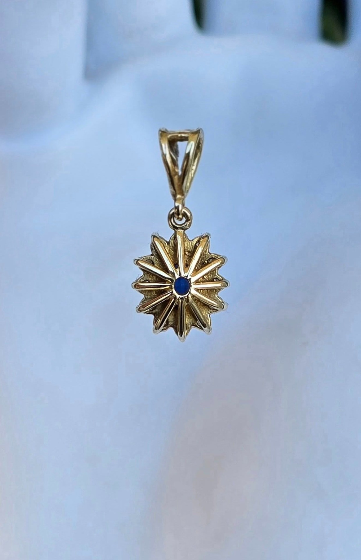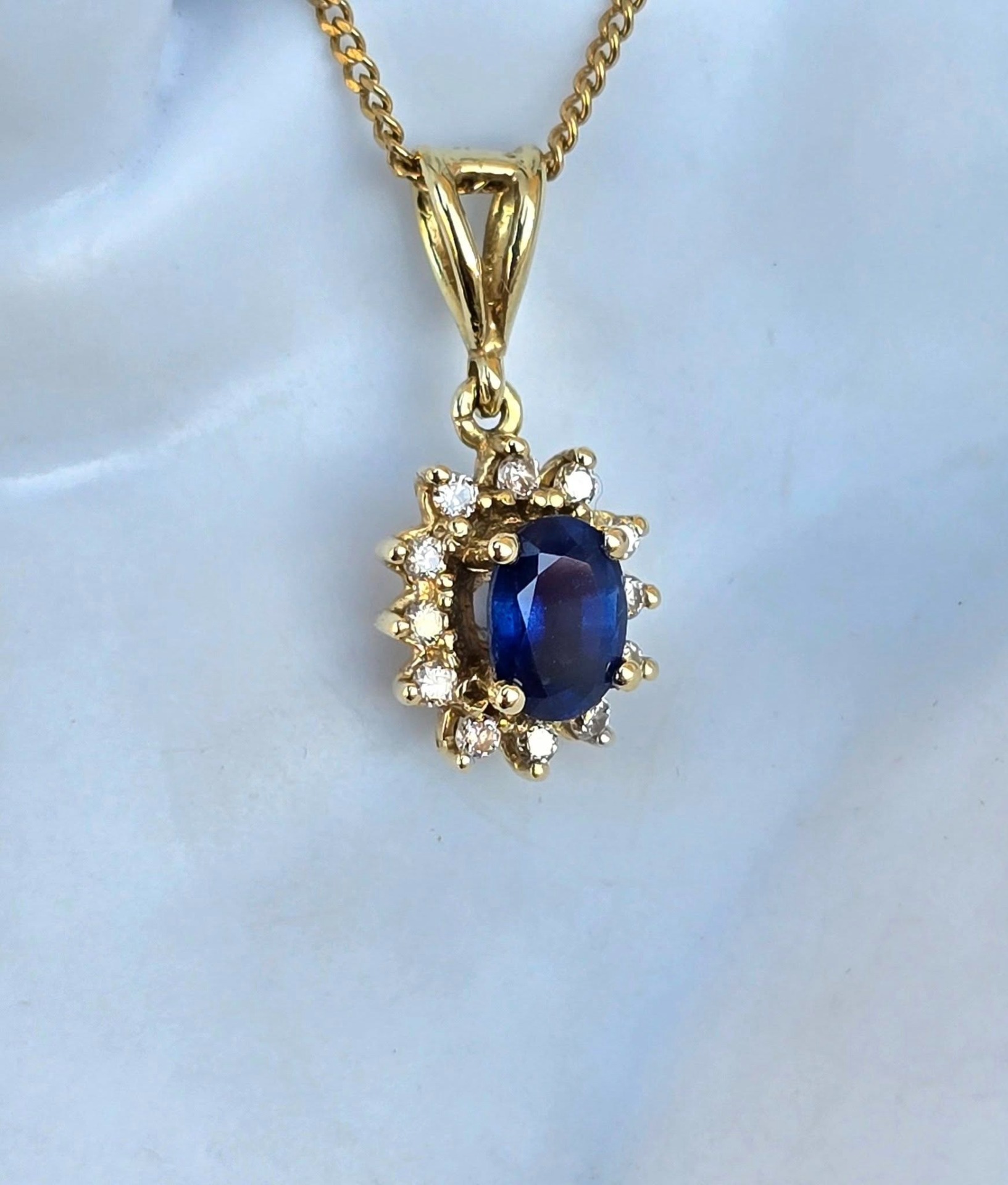 Pandantiv vechi din aur de 14K, cu un superb safir și 12 diamante naturale.