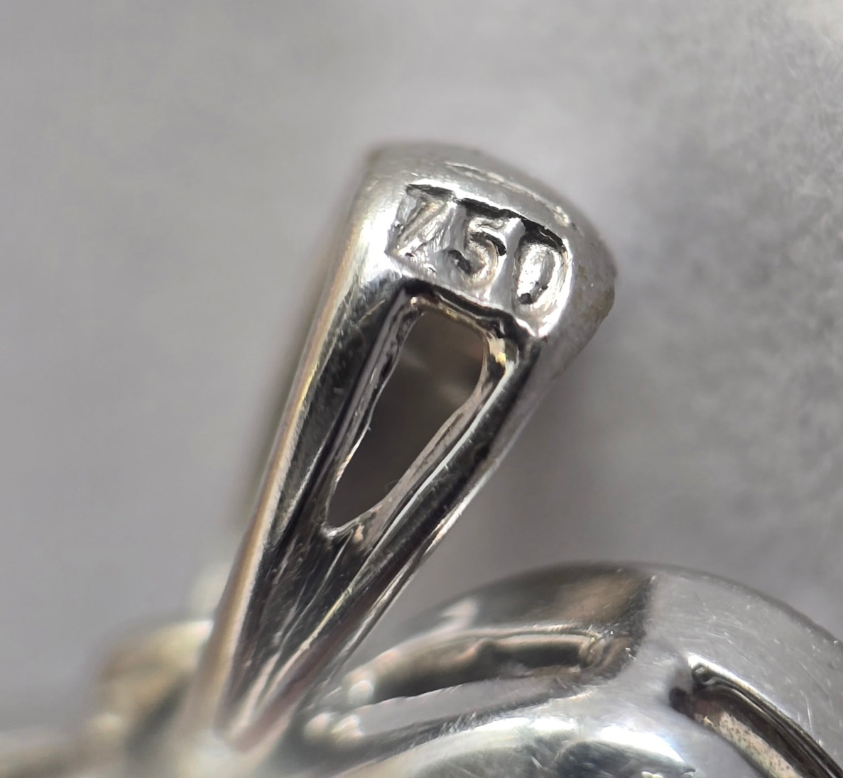 Prezintă marcaj 750 pentru puritate aur de 18K.