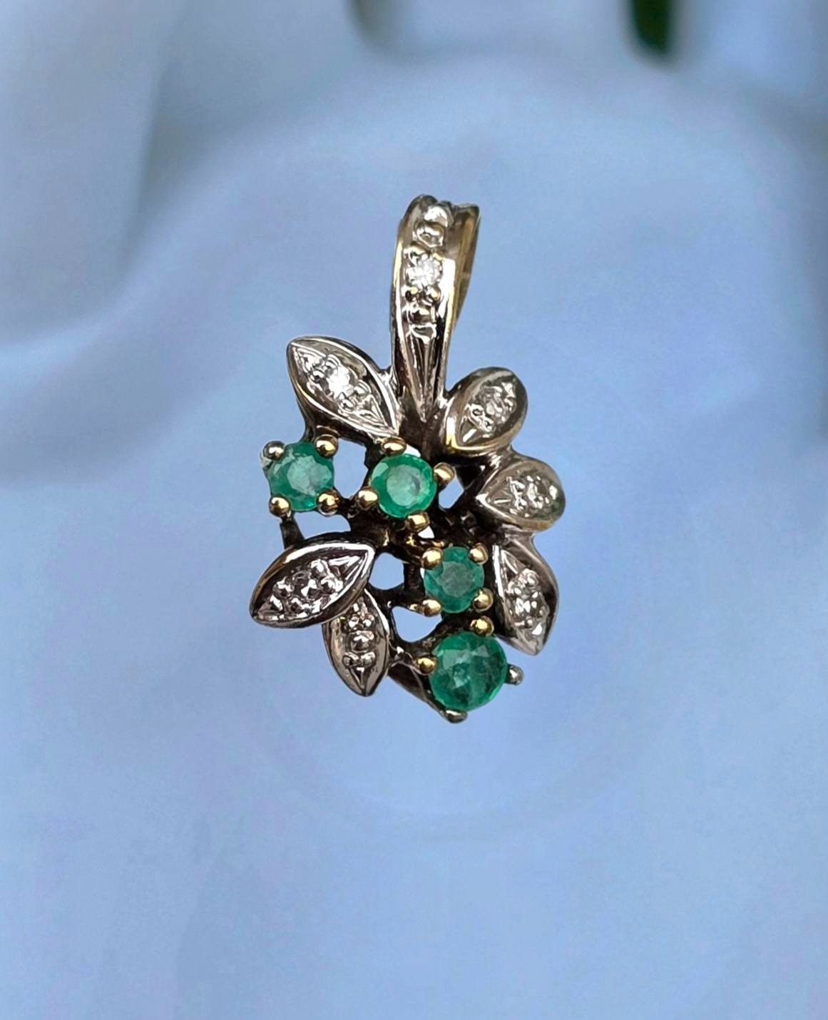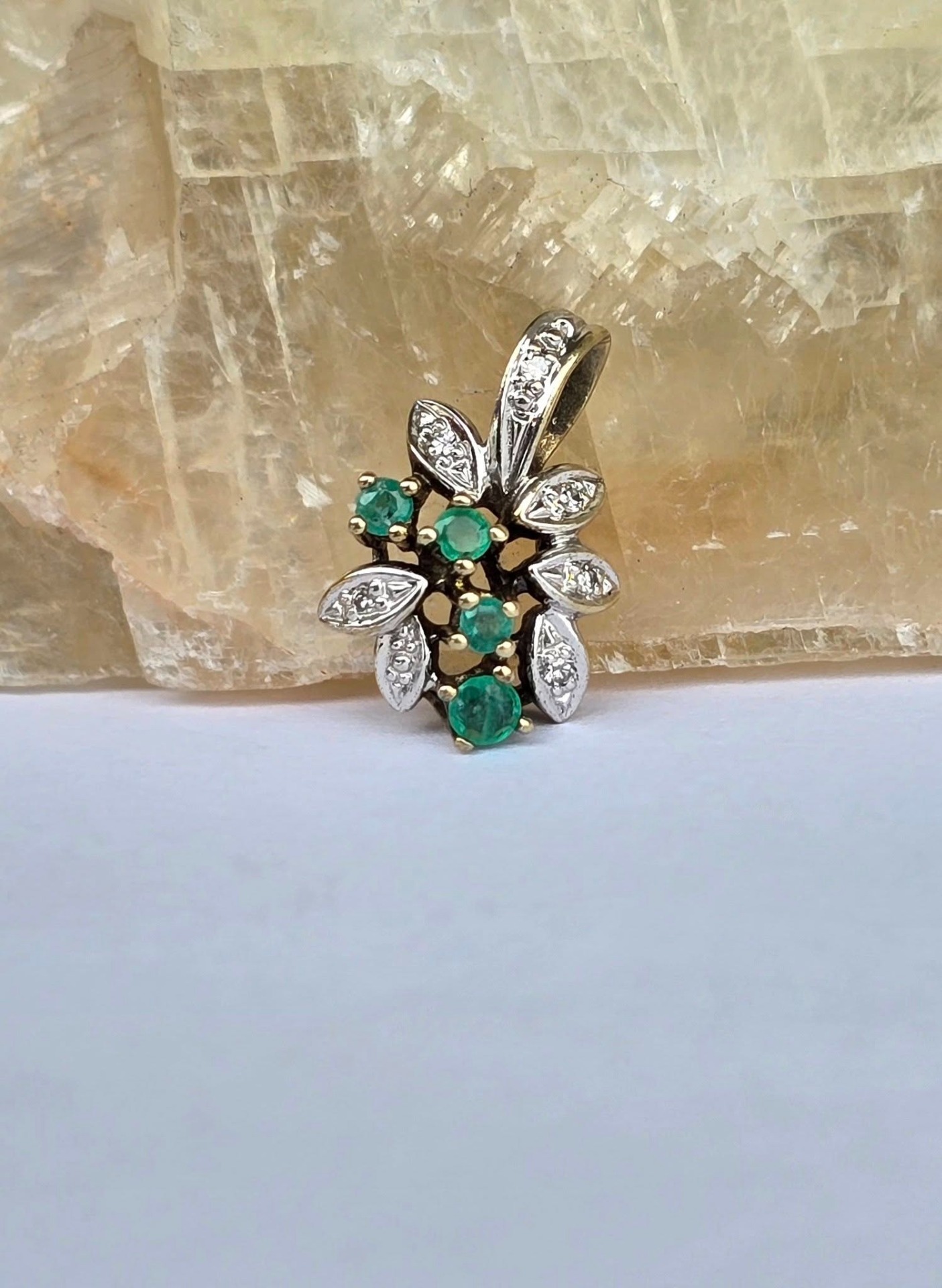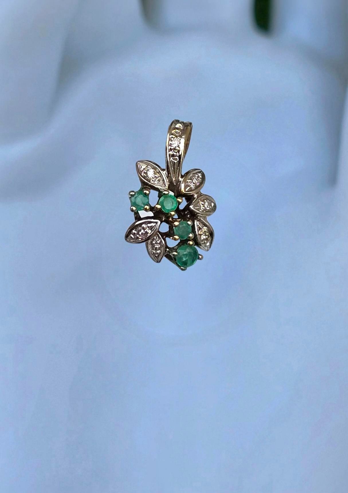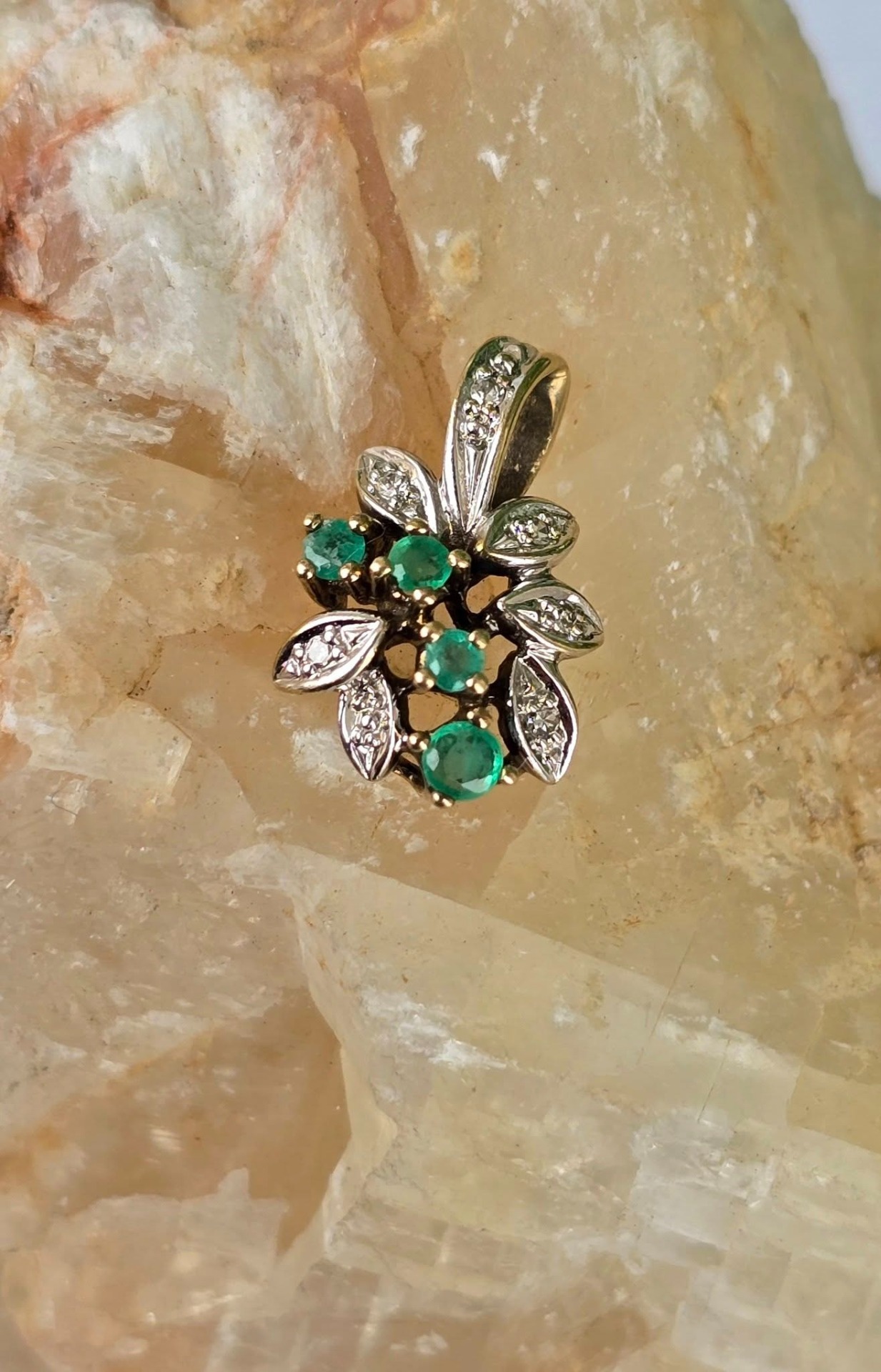 Pandantiv vechi din aur de 8K, cu 4 smaralde și 6 diamante naturale de calitate superioară.