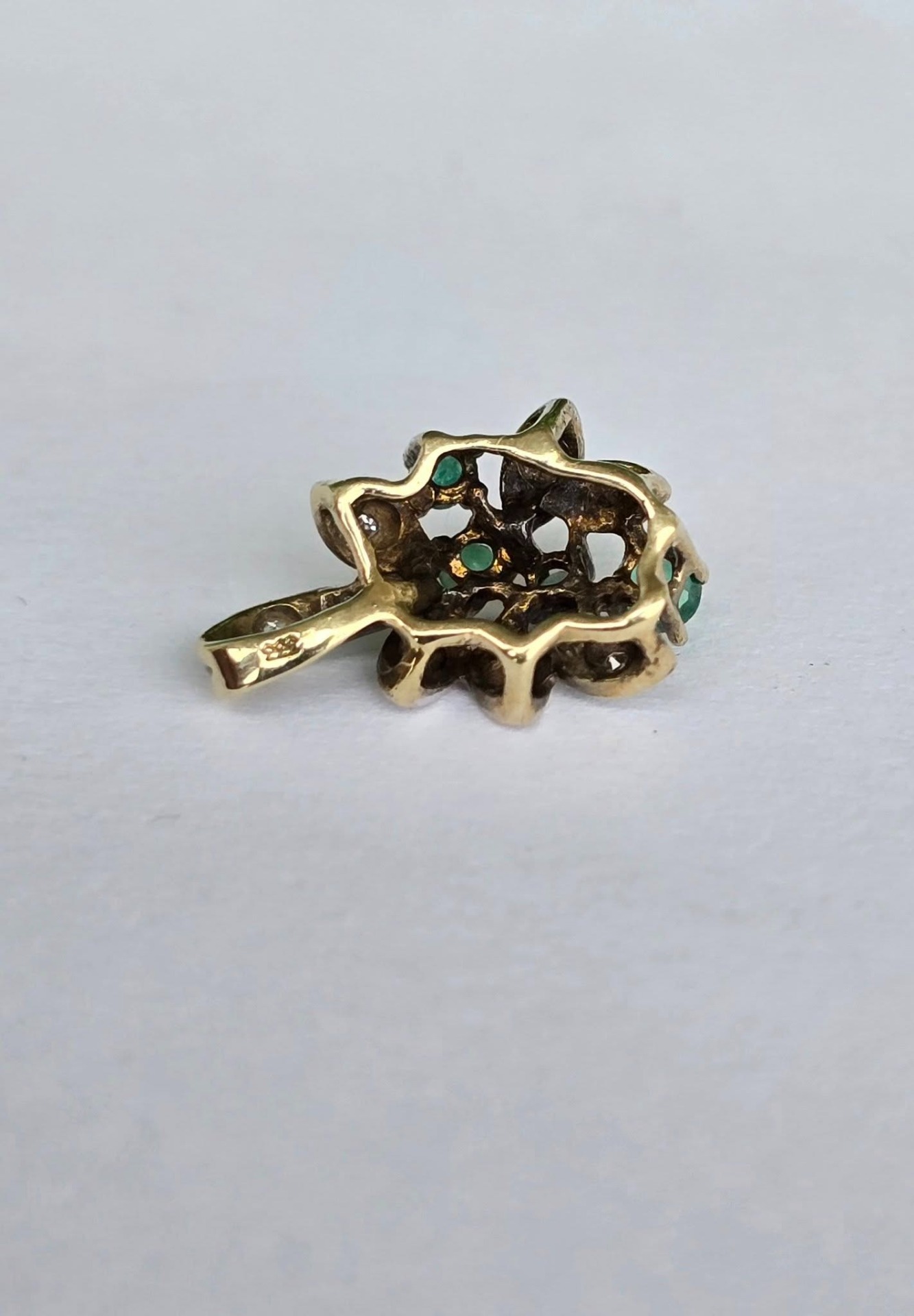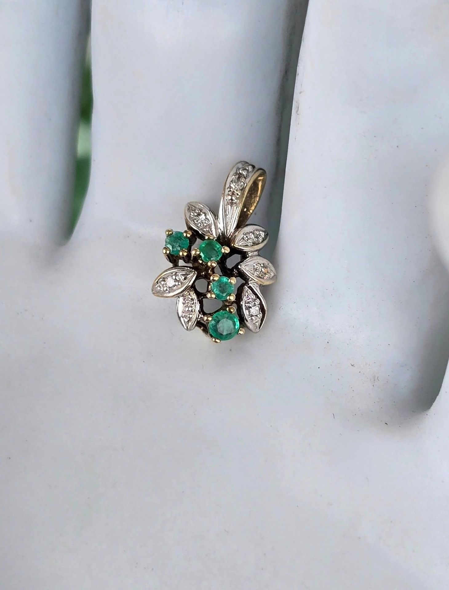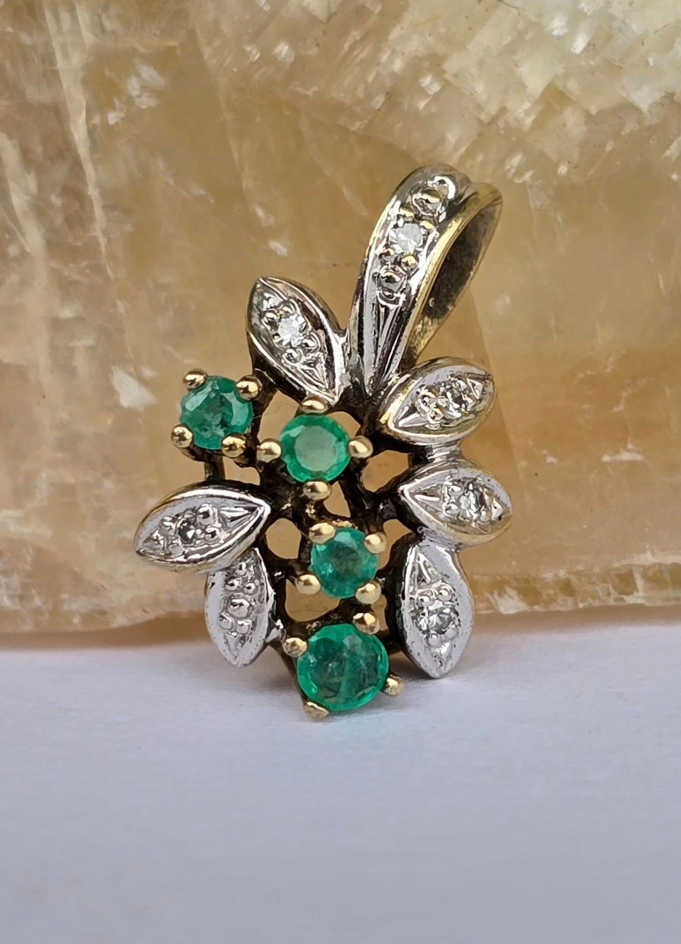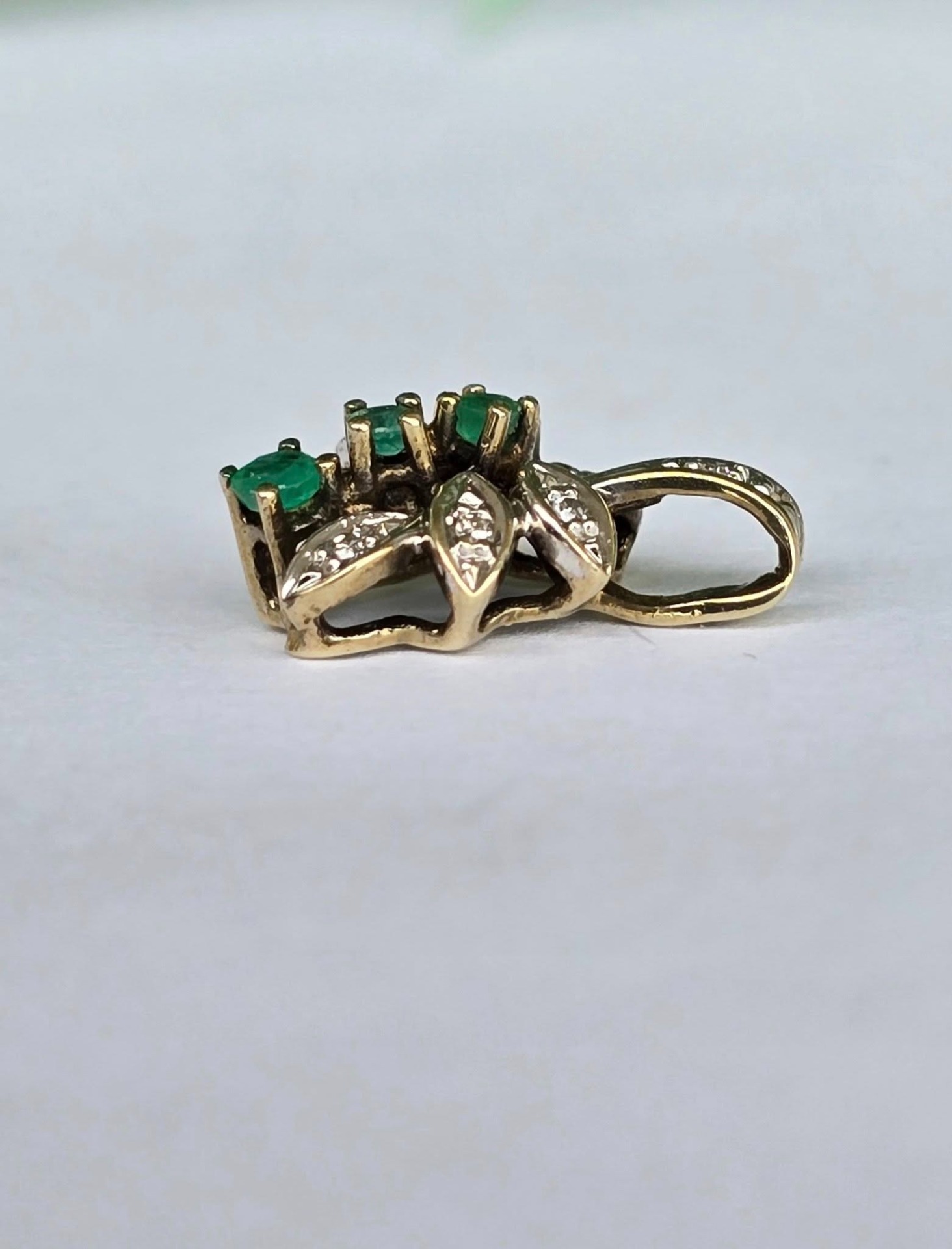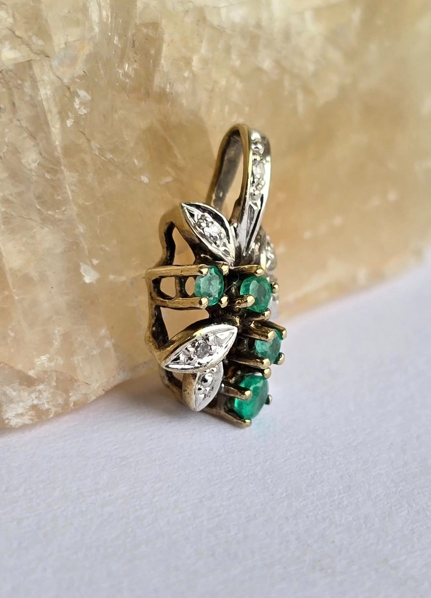 Pandantiv vechi din aur de 8K, cu 4 smaralde și 6 diamante naturale de calitate superioară.