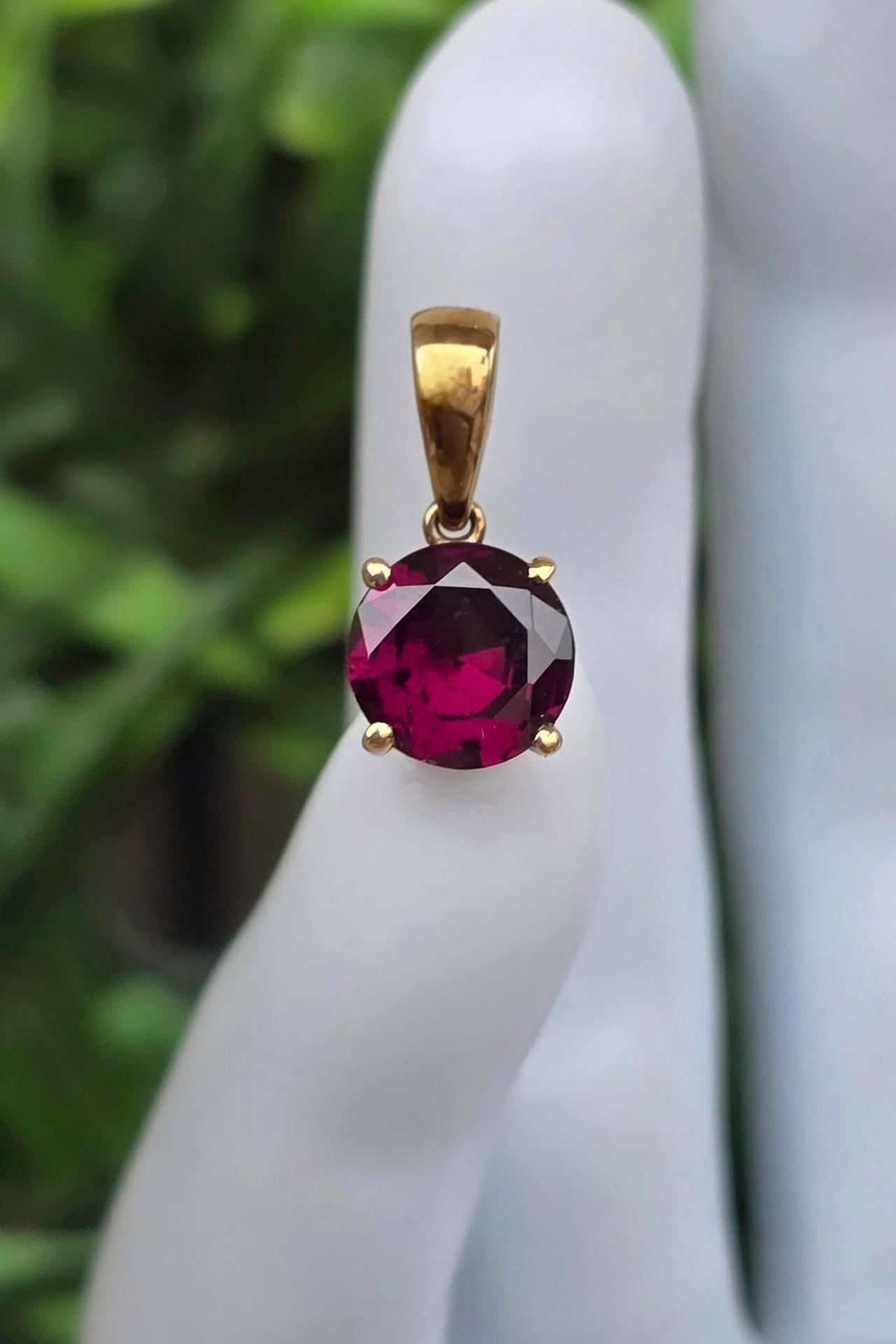 Pandantiv vechi din aur de 8K, cu granat "raspberry" natural.