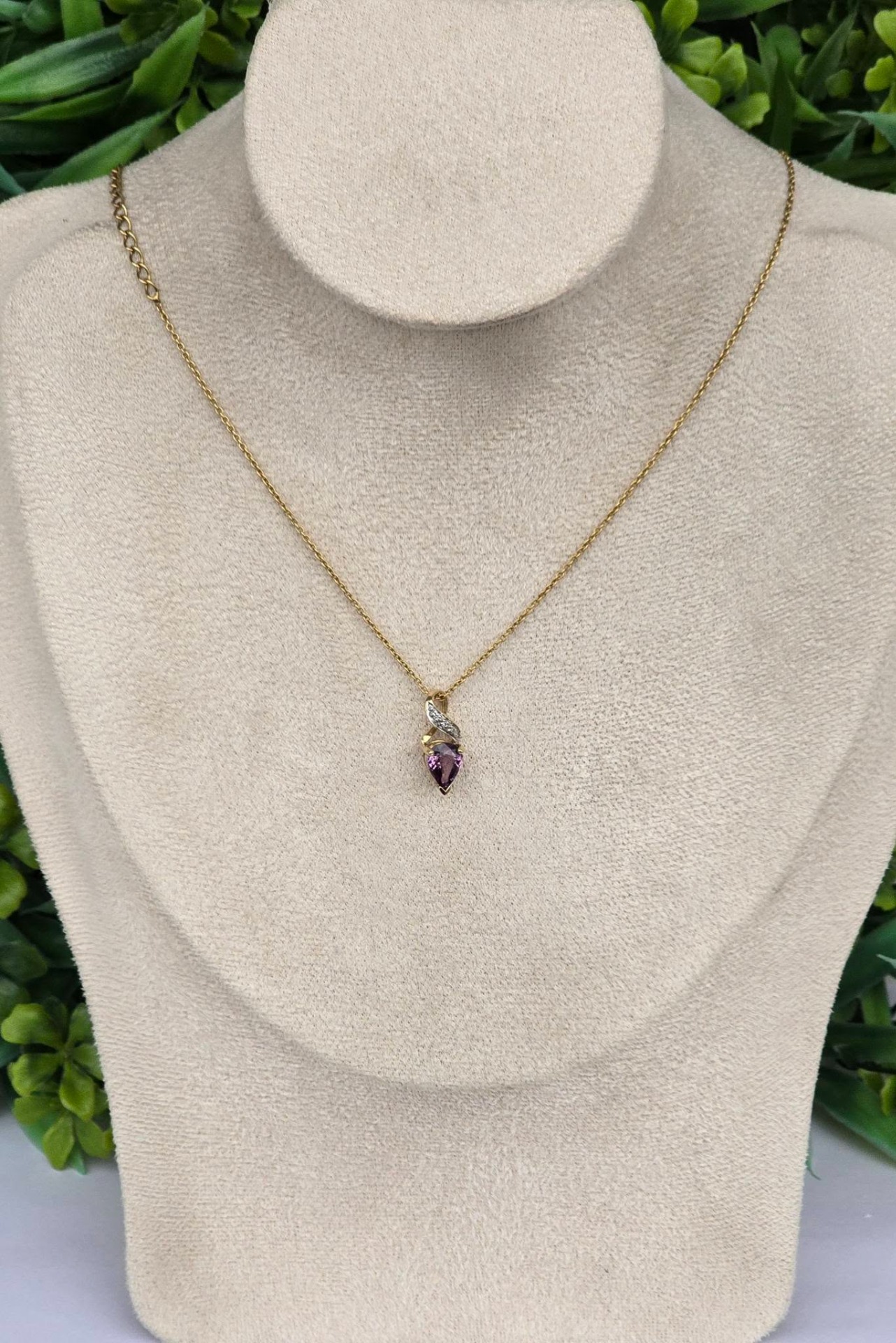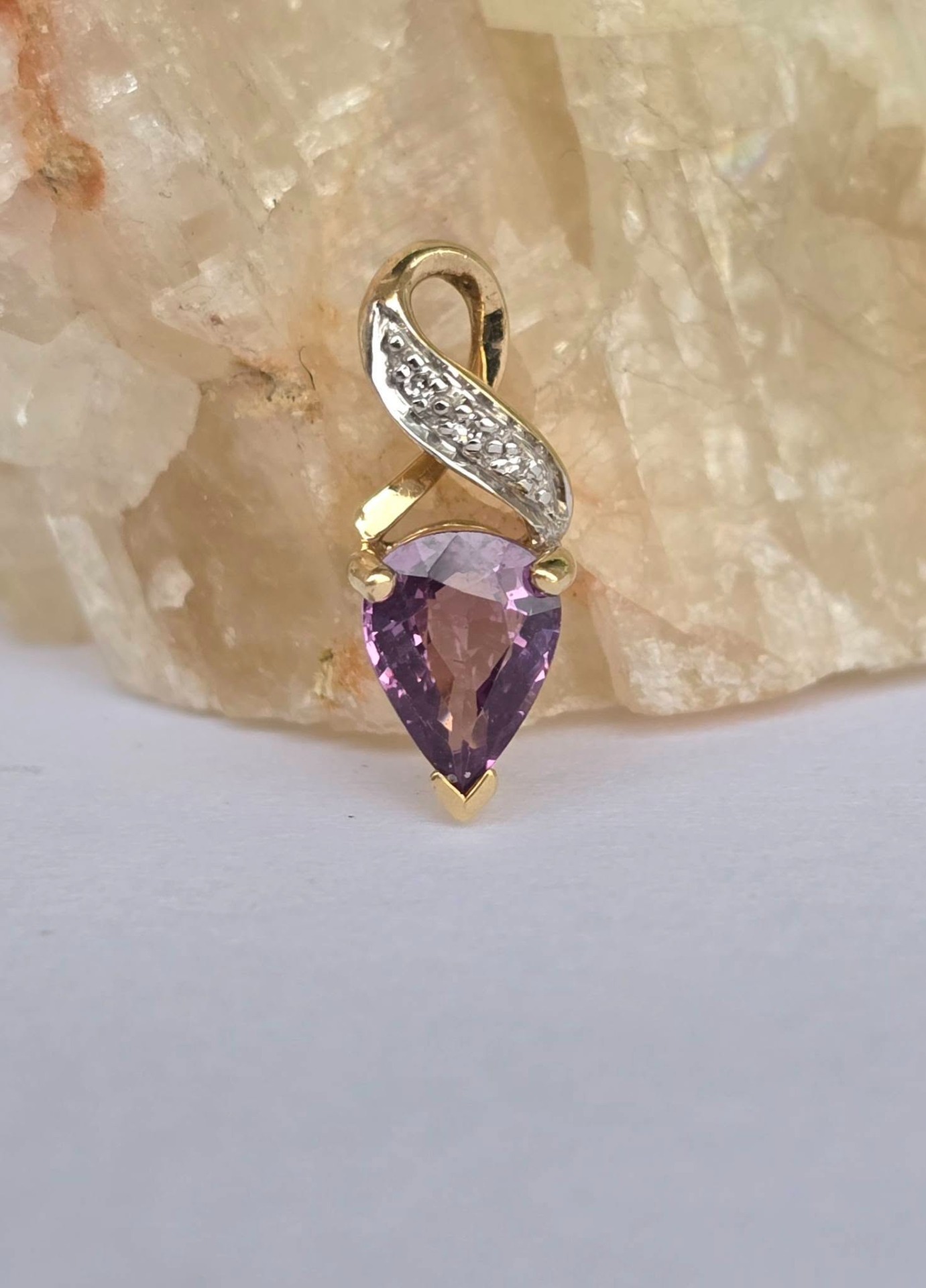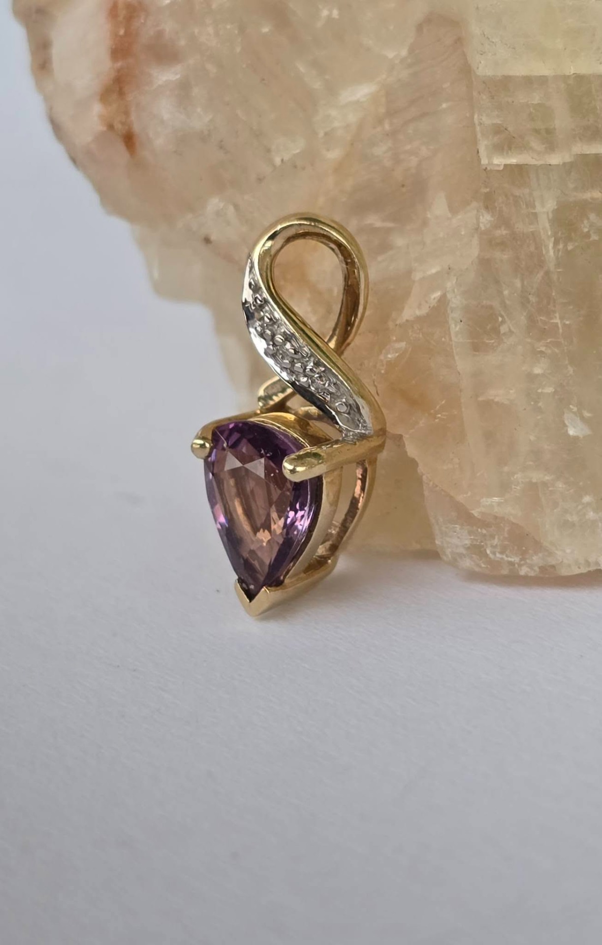 Pandantiv vechi din aur de 9K, cu ametist și 3 diamante naturale.