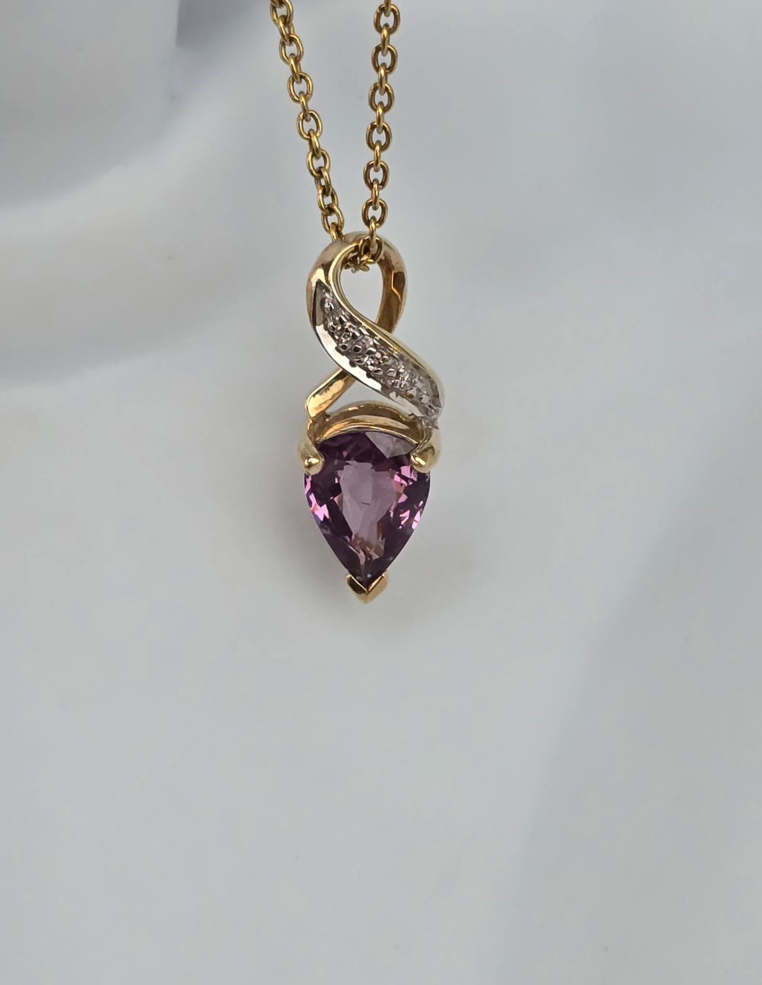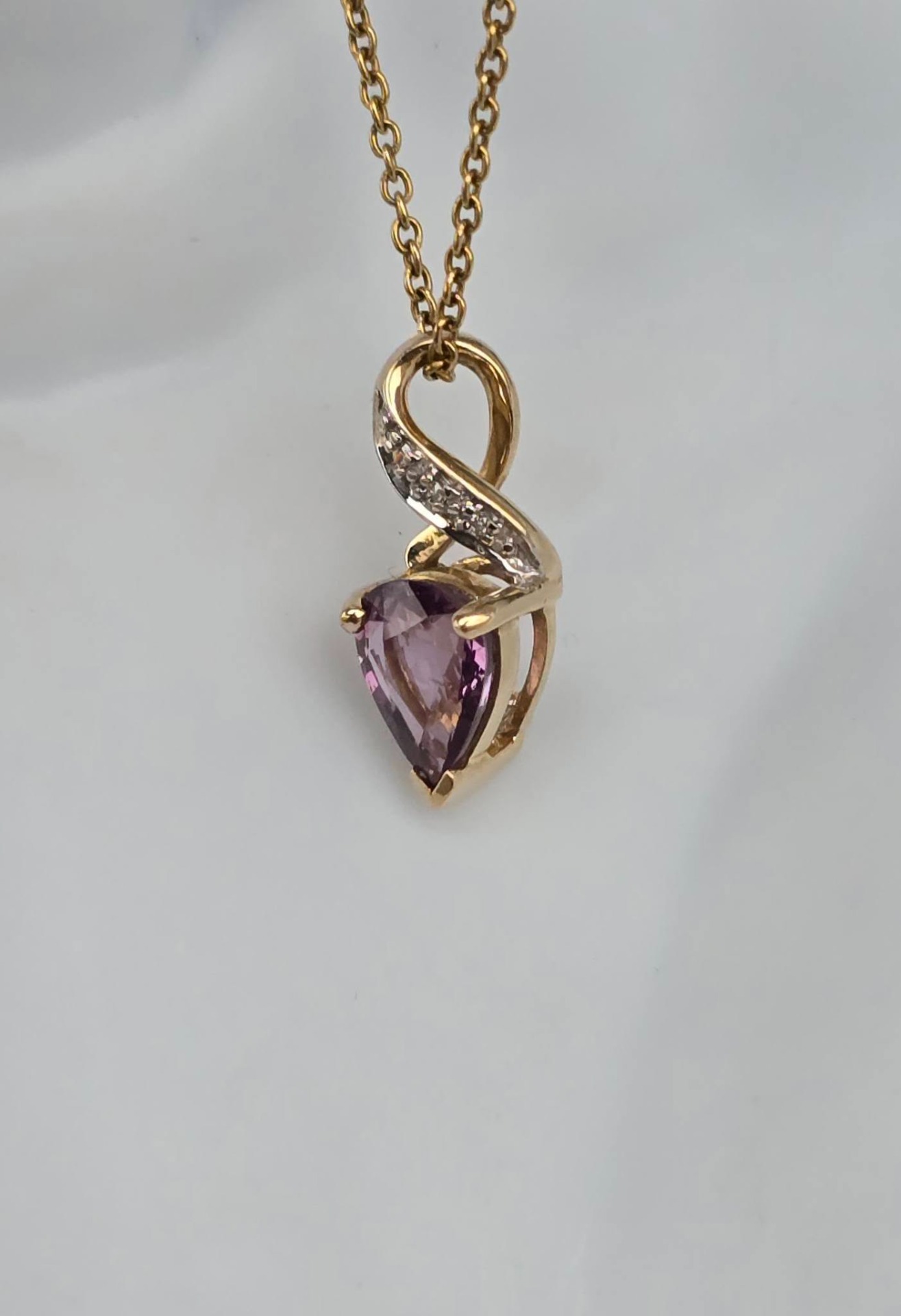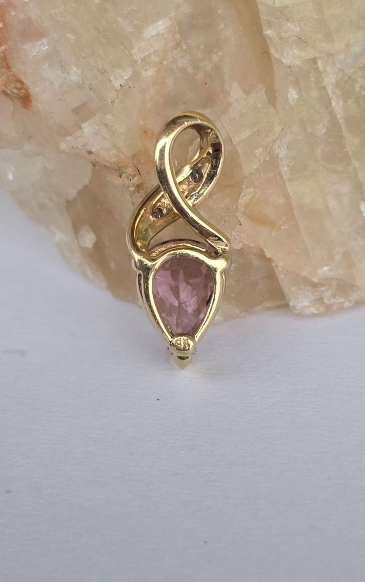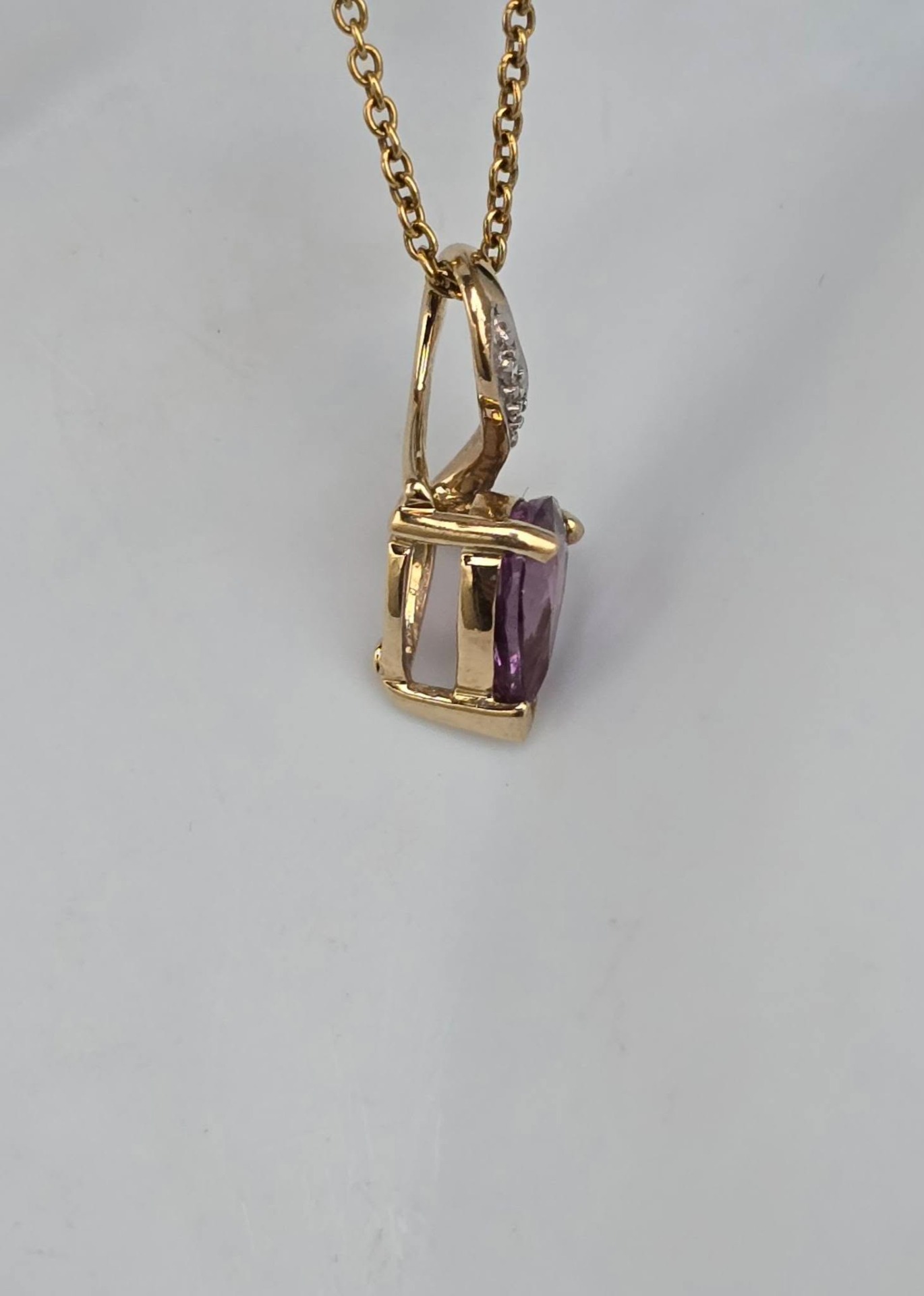 Pandantiv vechi din aur de 9K, cu ametist și 3 diamante naturale.