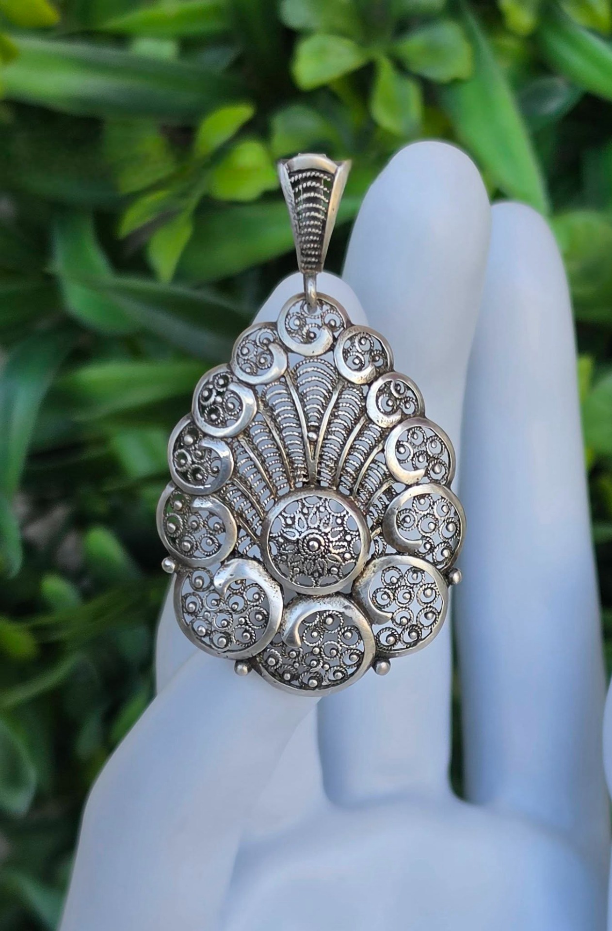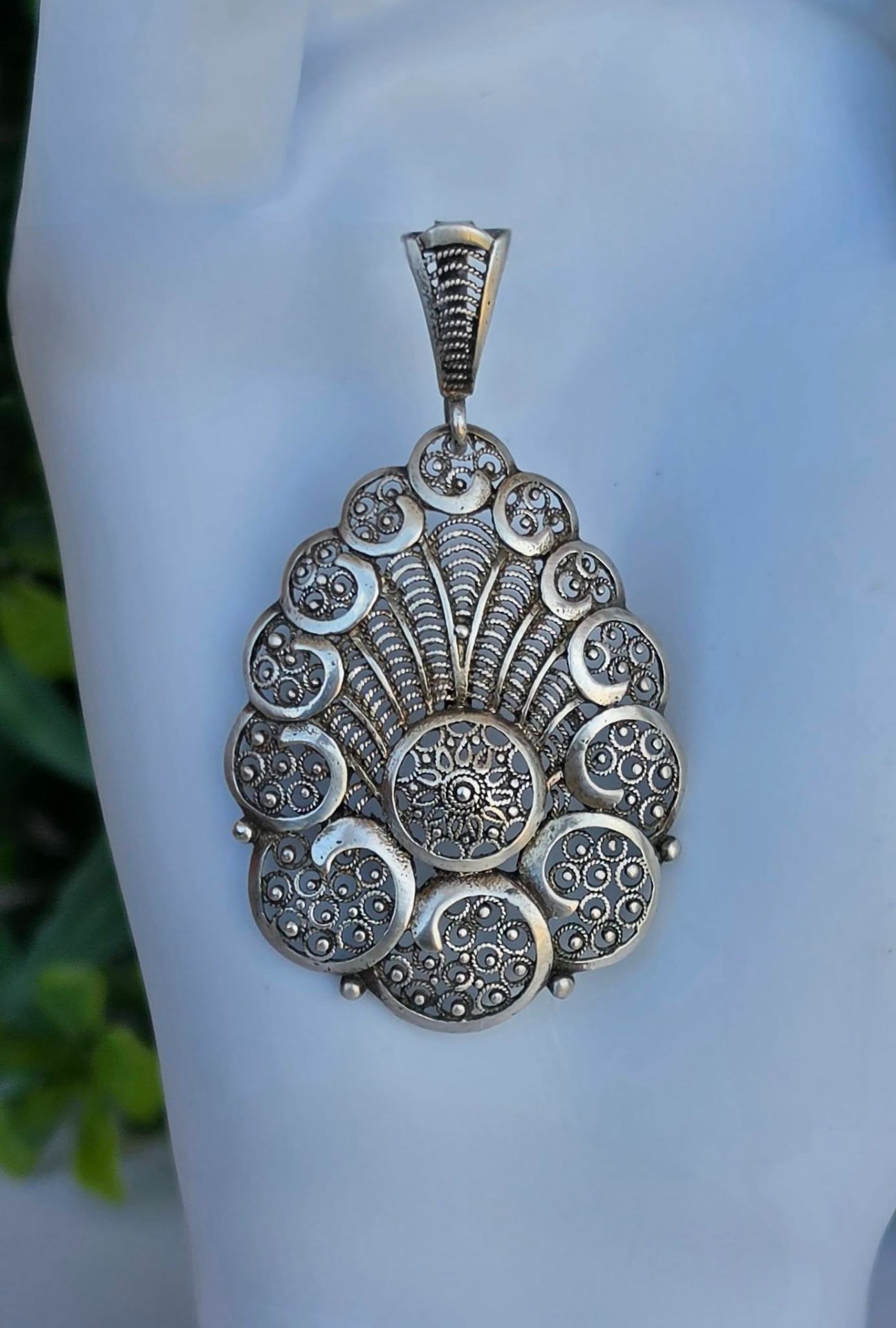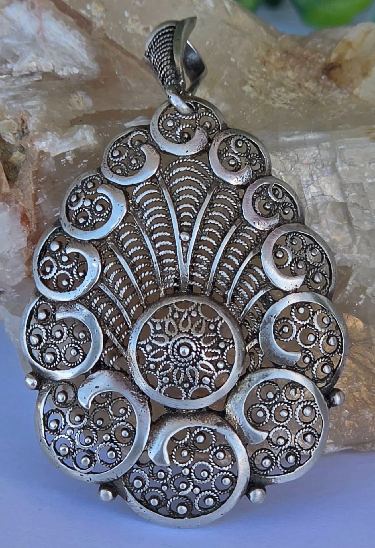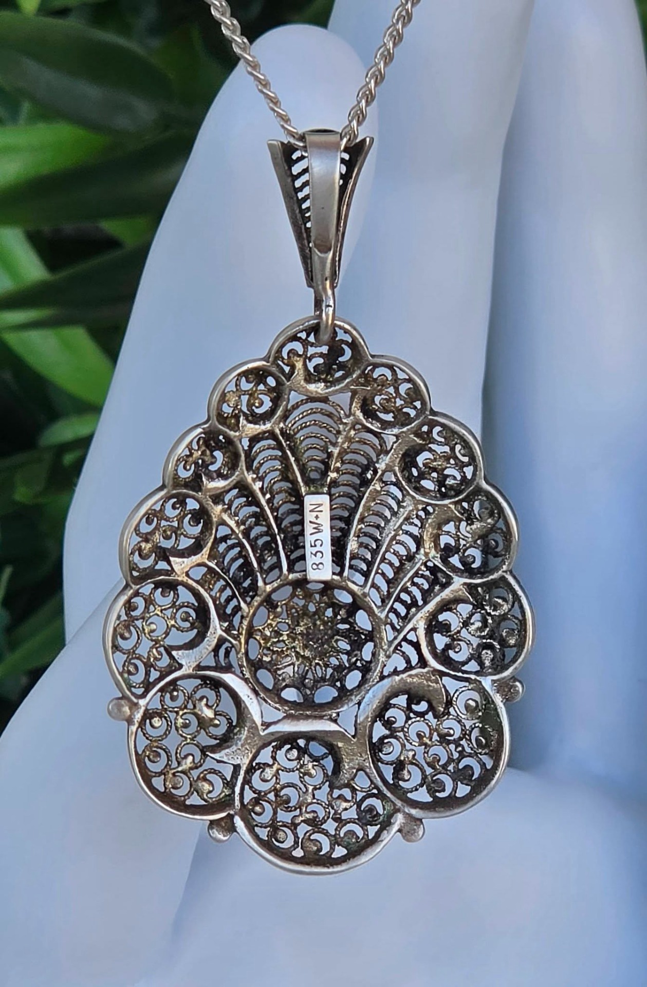 Pandantiv vechi spectaculos, din argint, manufactură complexă în filigran (anii 1950, Germania).