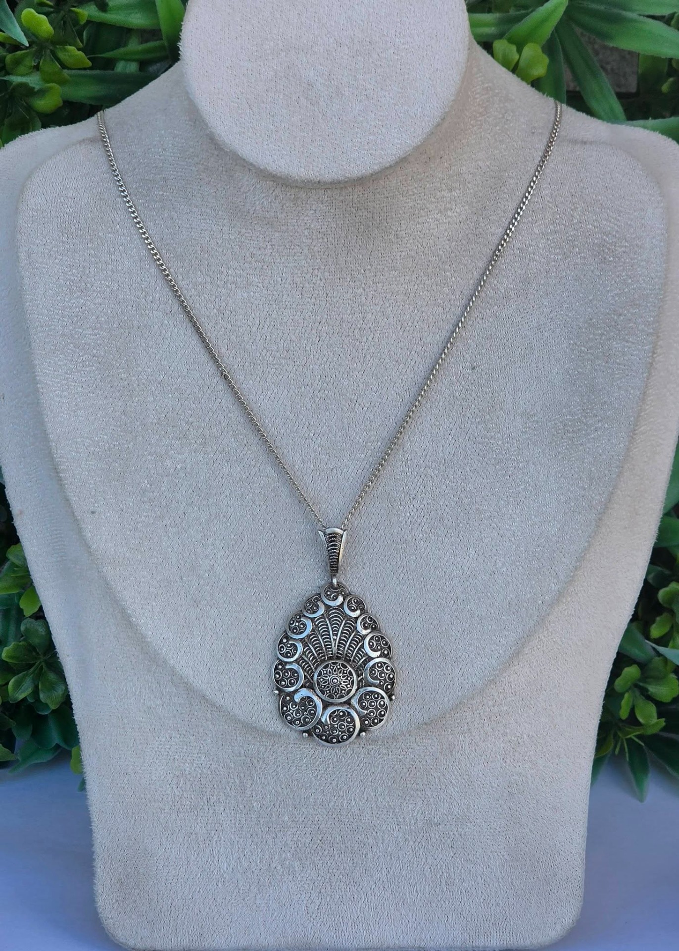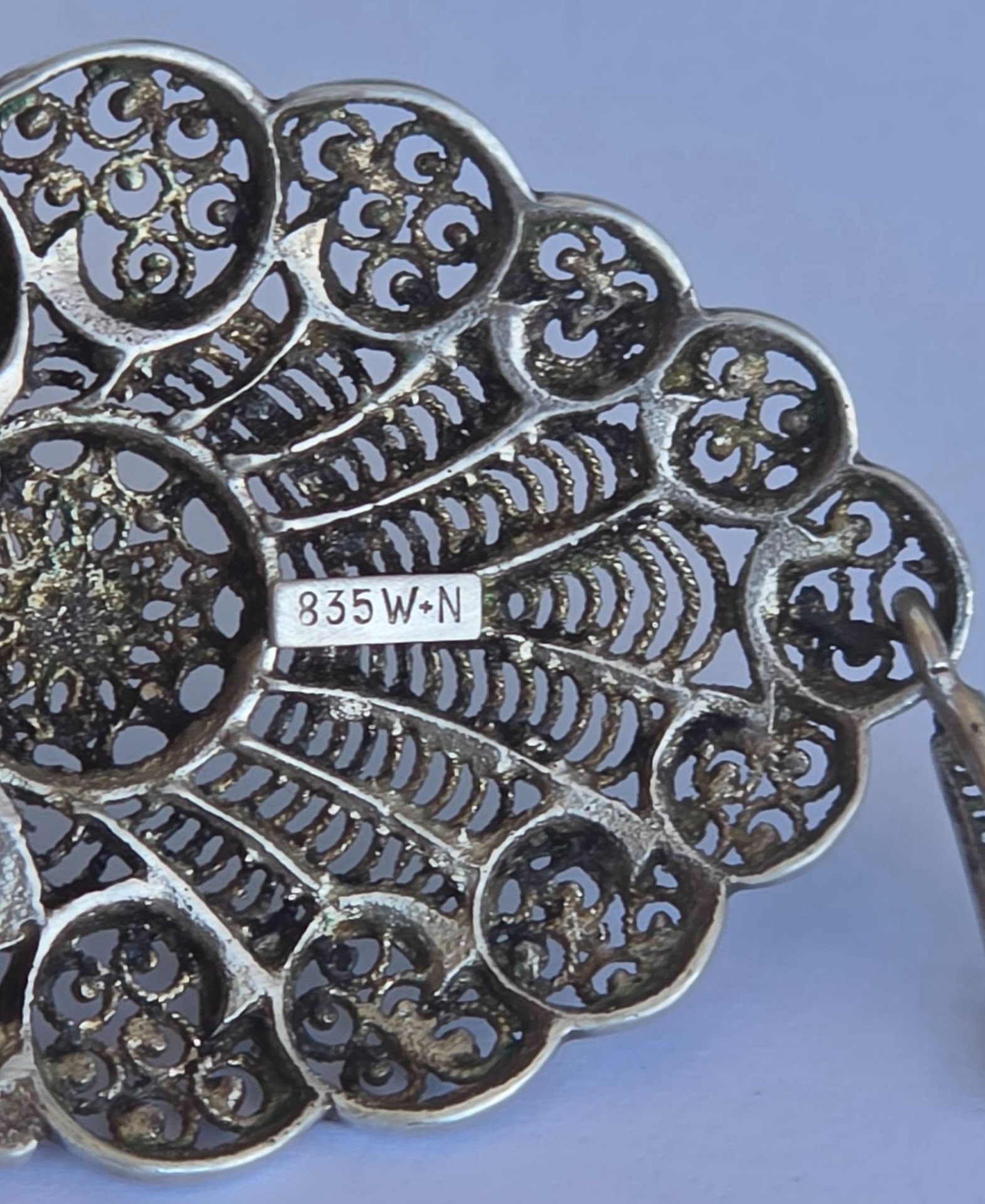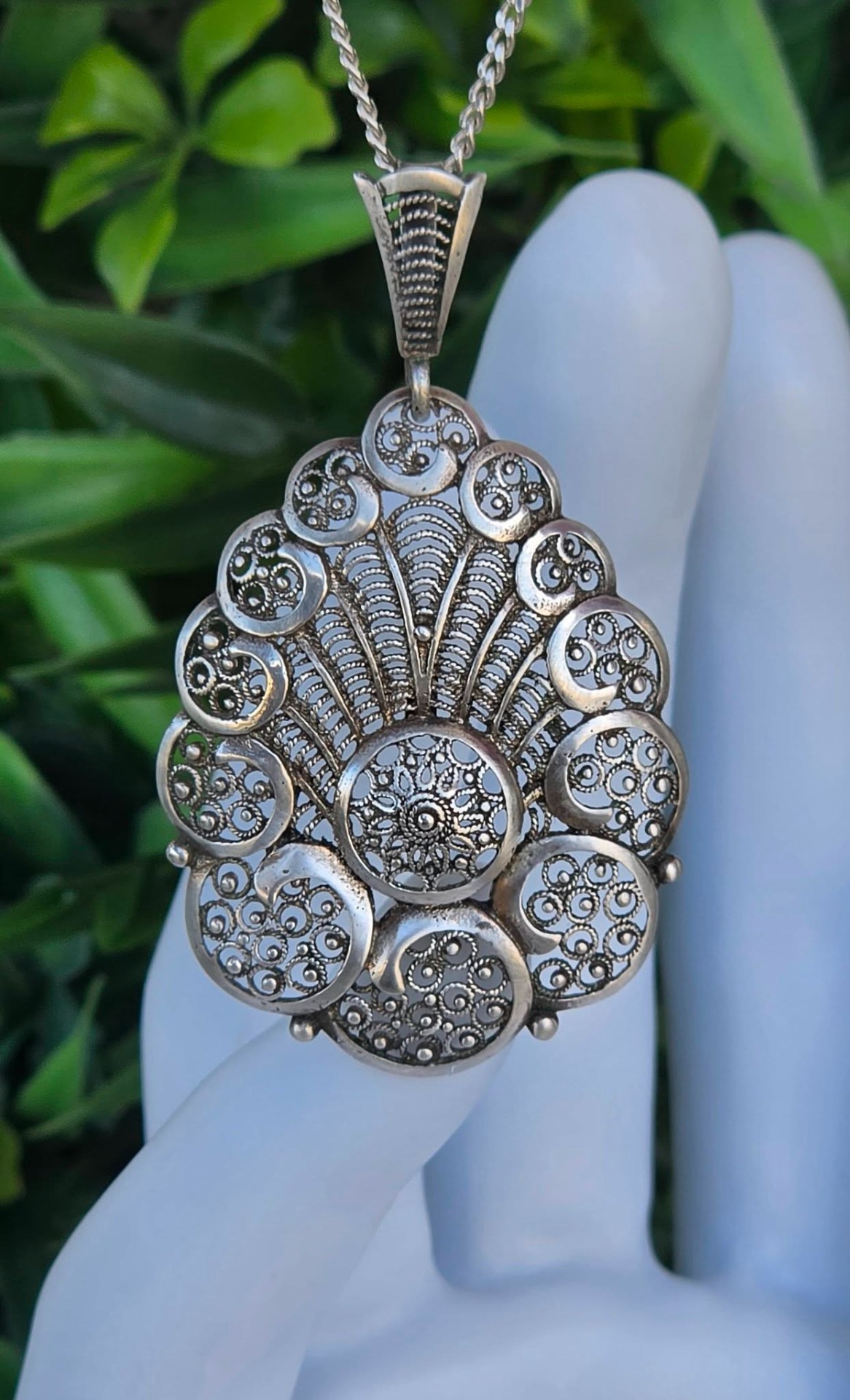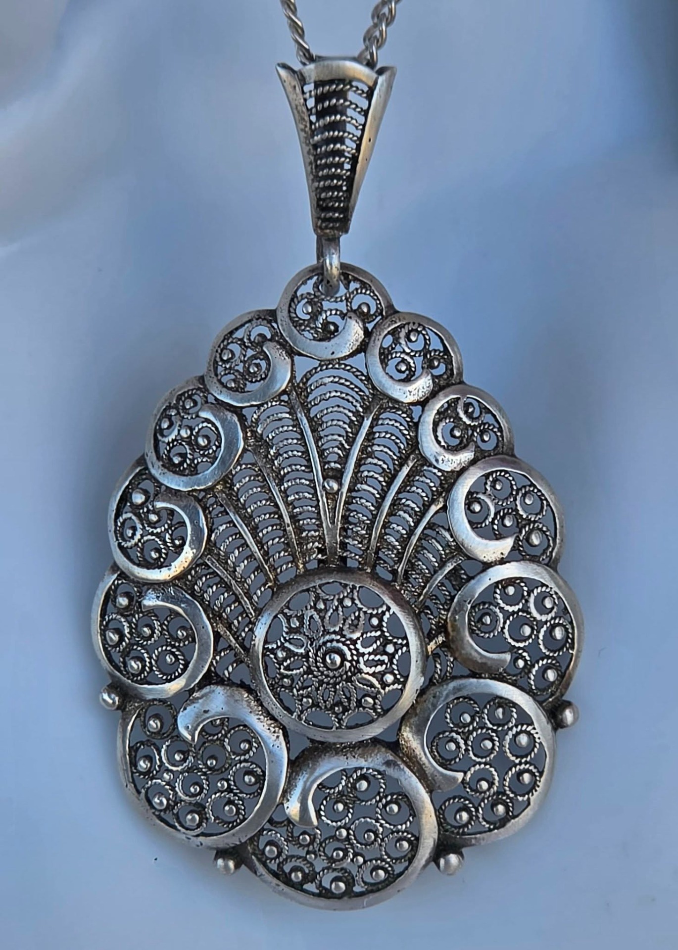 Pandantiv vechi spectaculos, din argint, manufactură complexă în filigran (anii 1950, Germania).