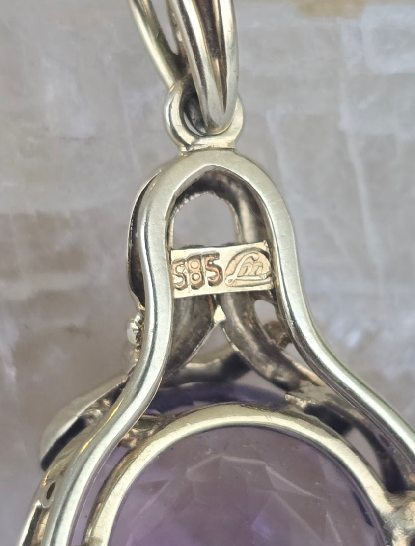 Prezintă marcaj 585 pentru puritate aur de 14K și marcaj de meșter.