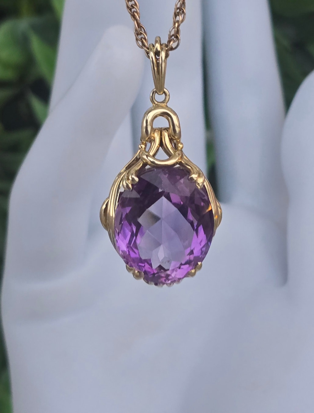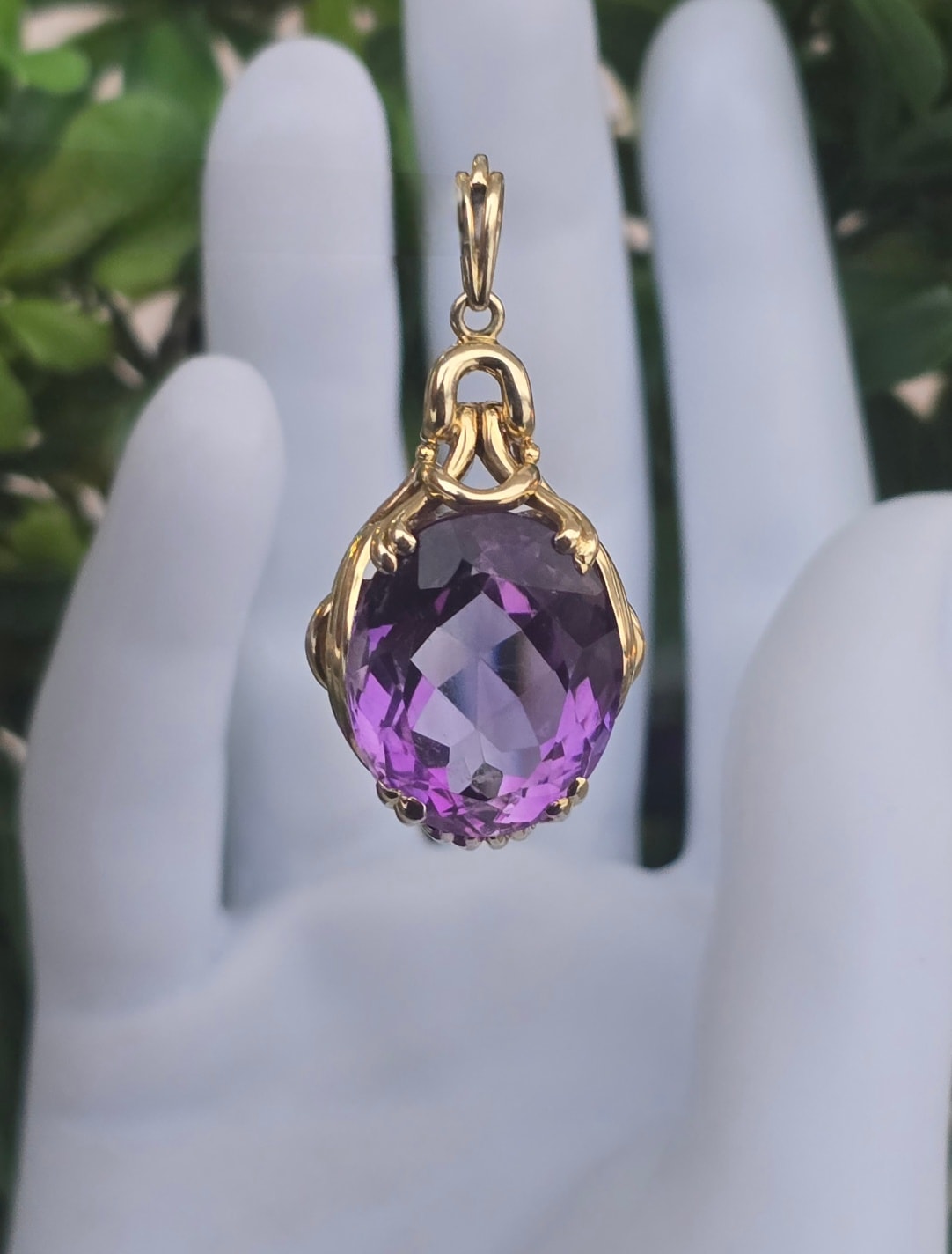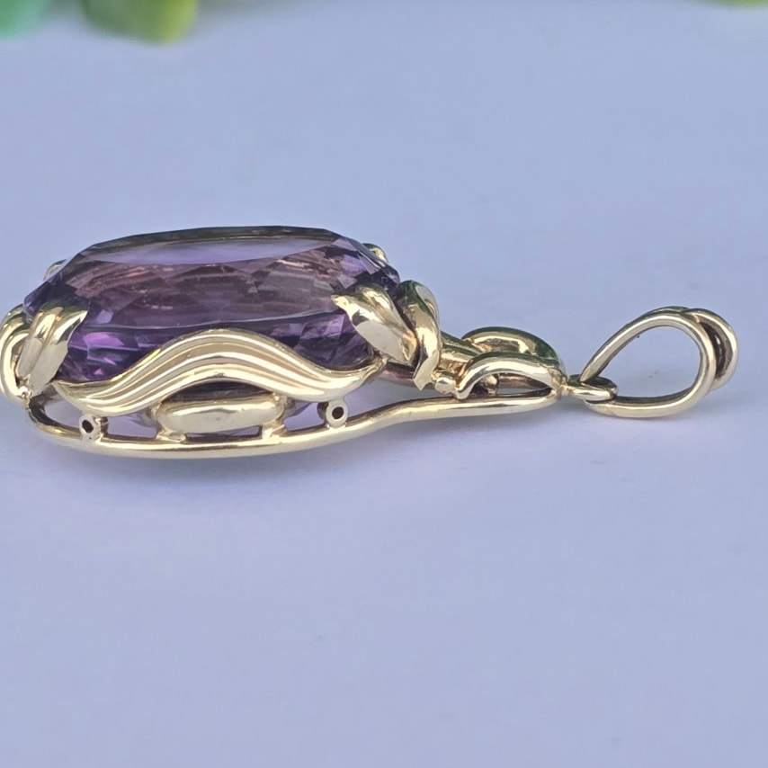 Pandantiv vechi spectaculos, din aur de 14K, cu un superb ametist natural.