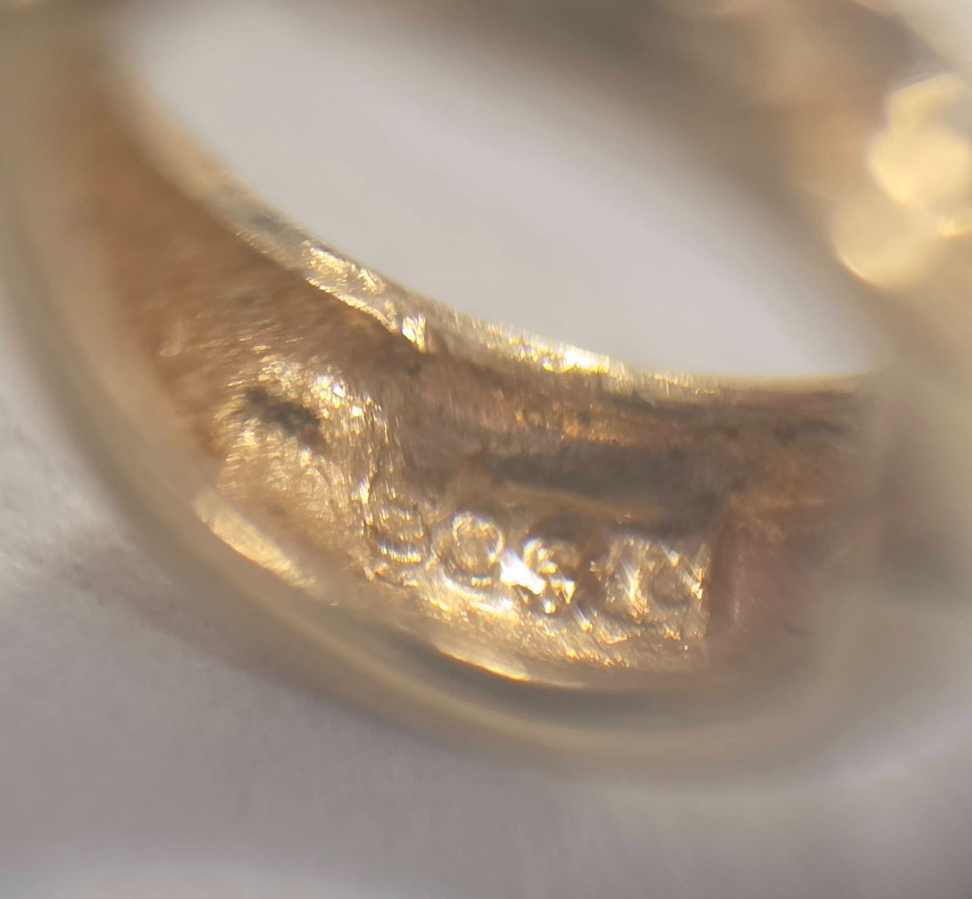 Prezintă marcaj 585 pentru puritate aur de 14K și marcaj de meșter.