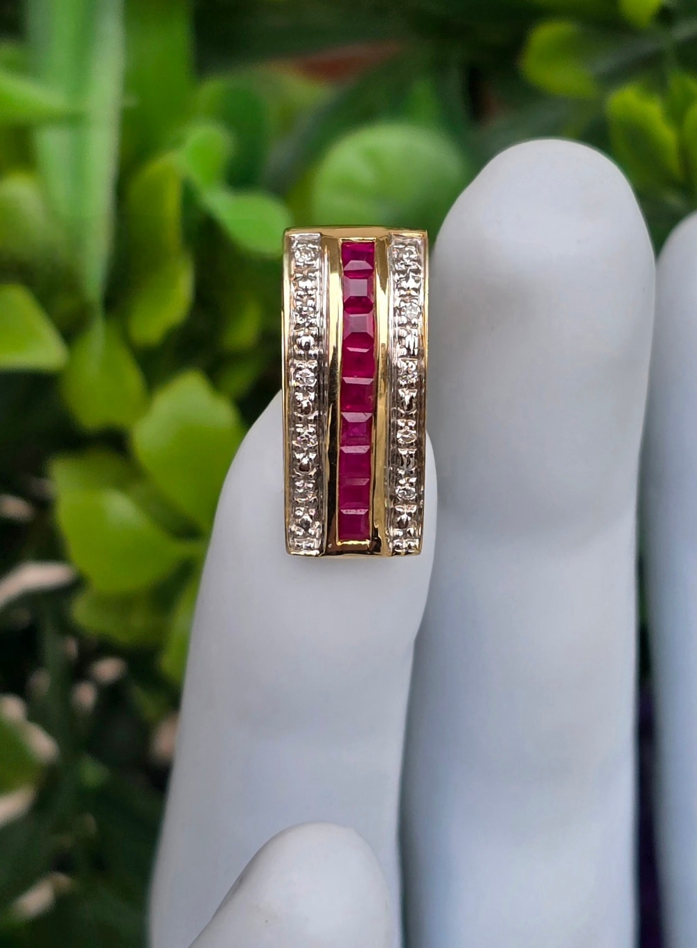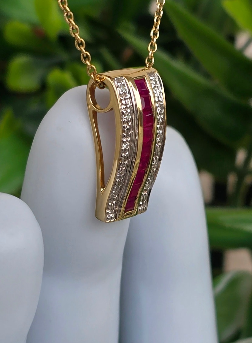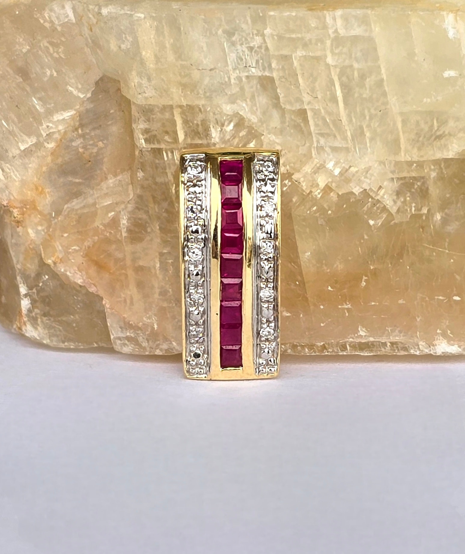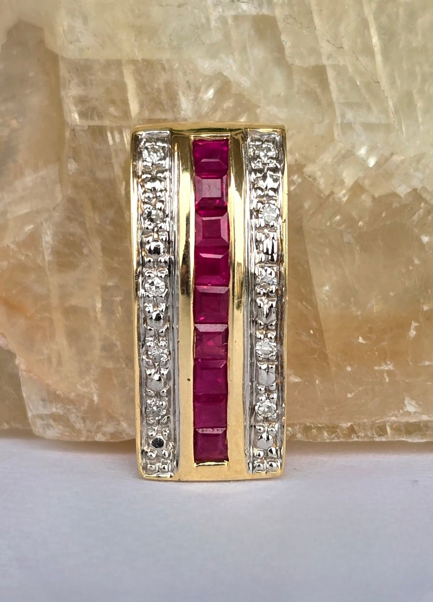Pandantiv vechi superb, din aur de 14K, cu 9 rubine și 10 diamante naturale.