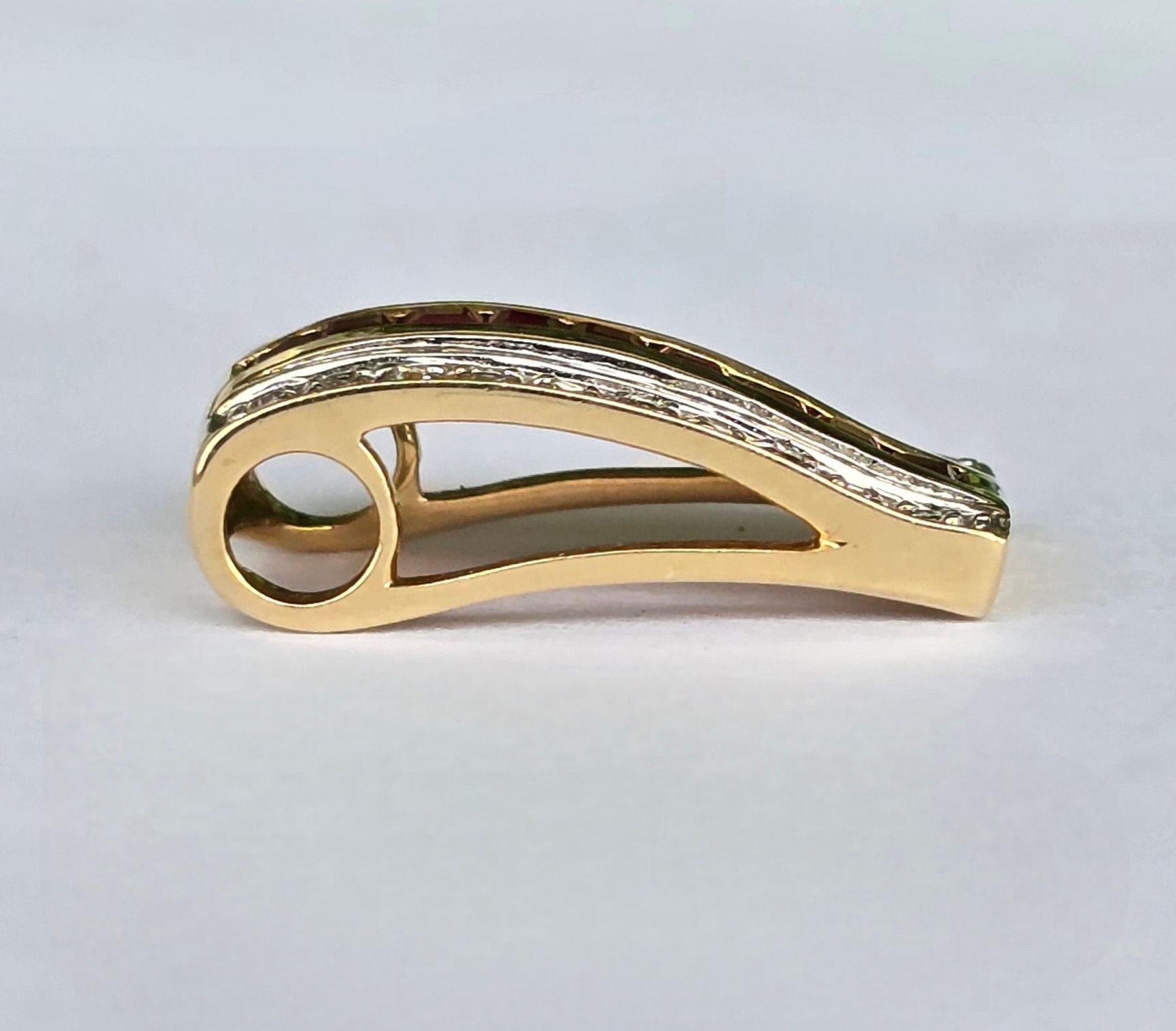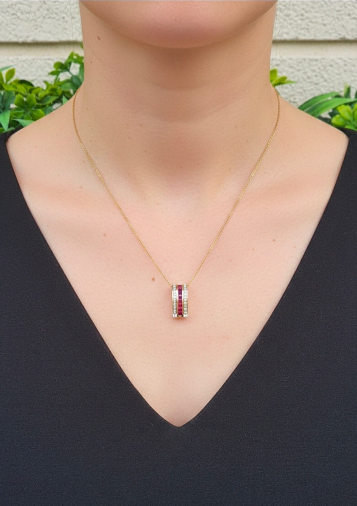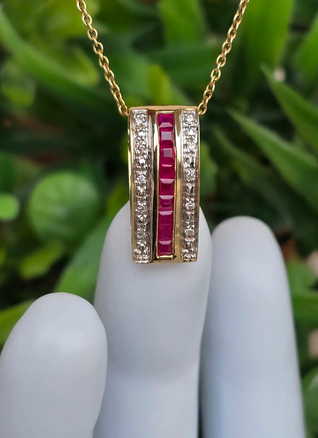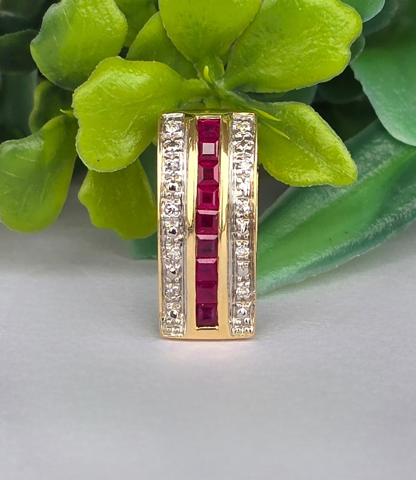 Pandantiv vechi superb, din aur de 14K, cu 9 rubine și 10 diamante naturale.