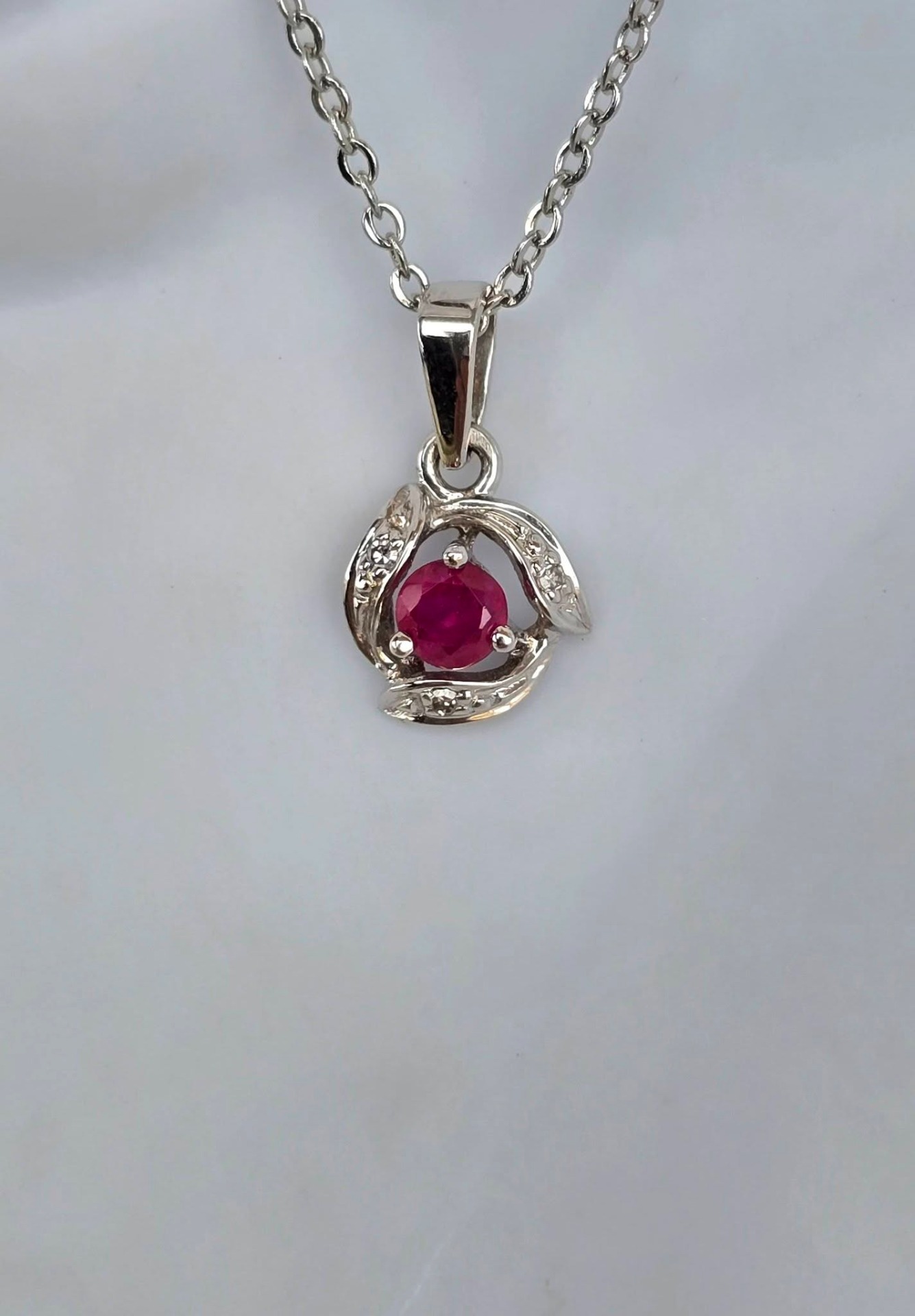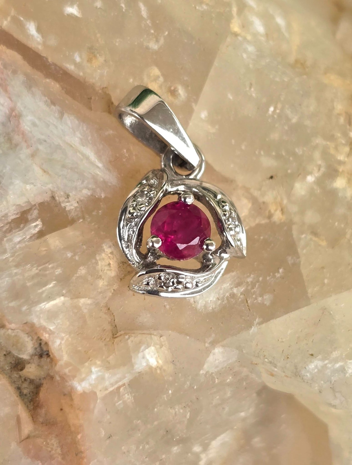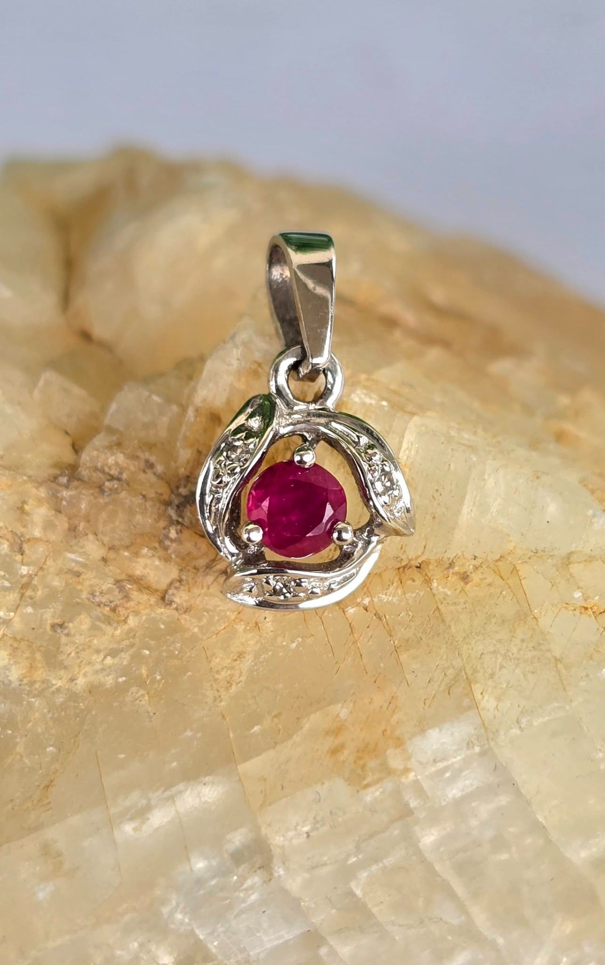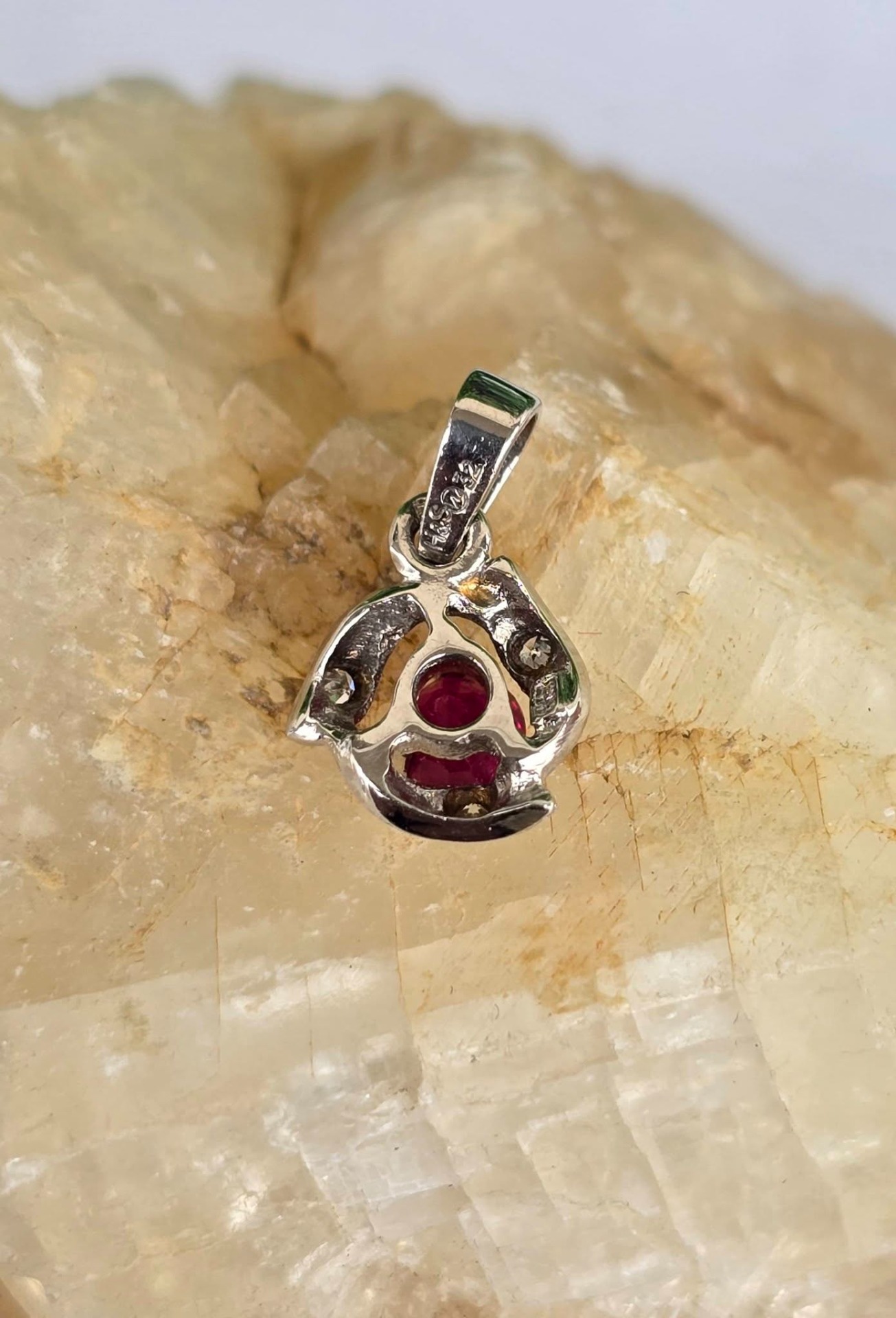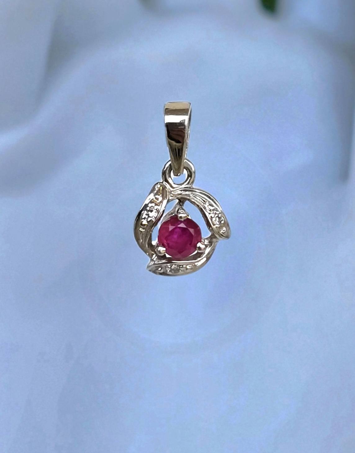 Pandantiv vechi superb, din aur de 14K, cu rubin și 3 diamante naturale.