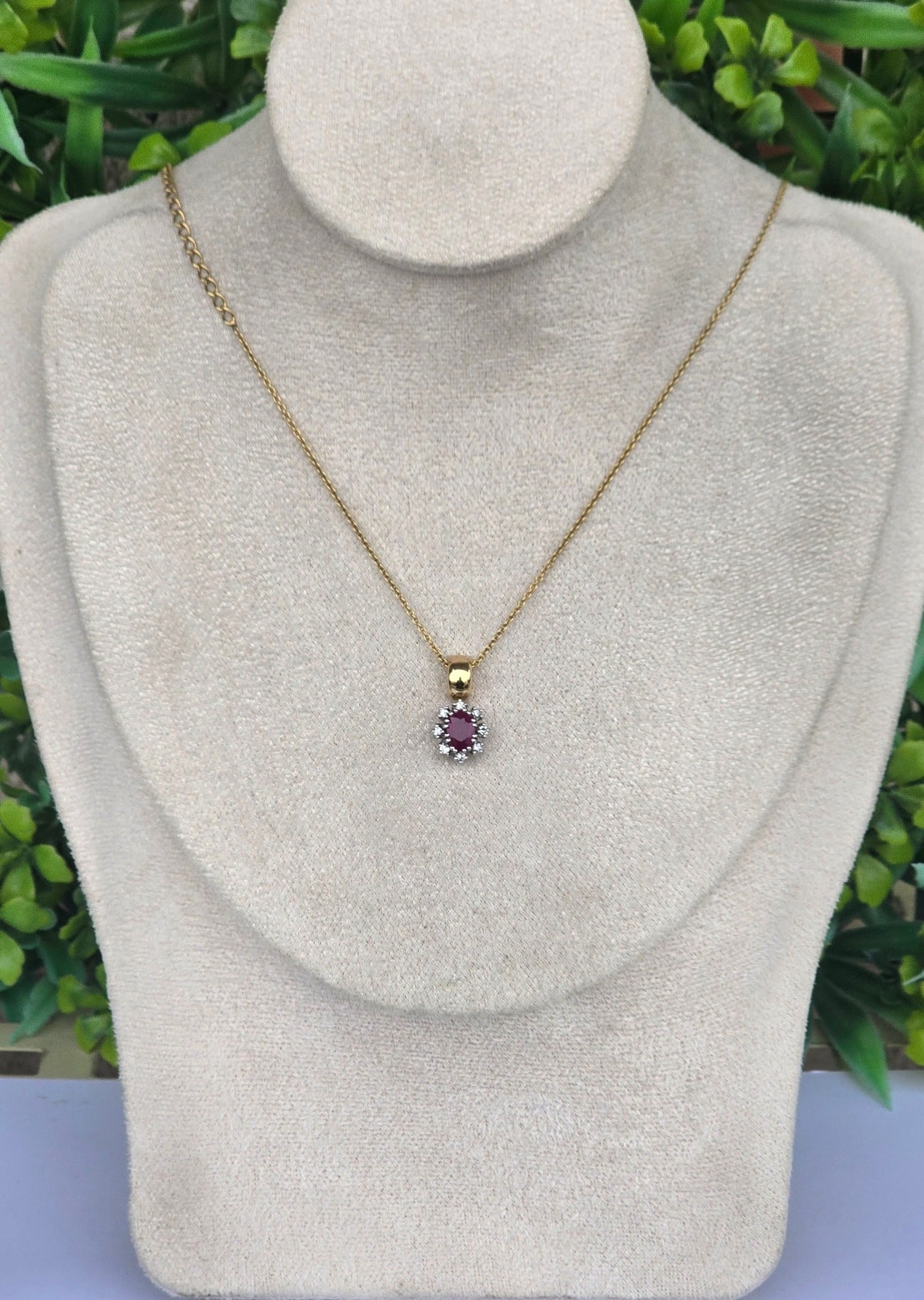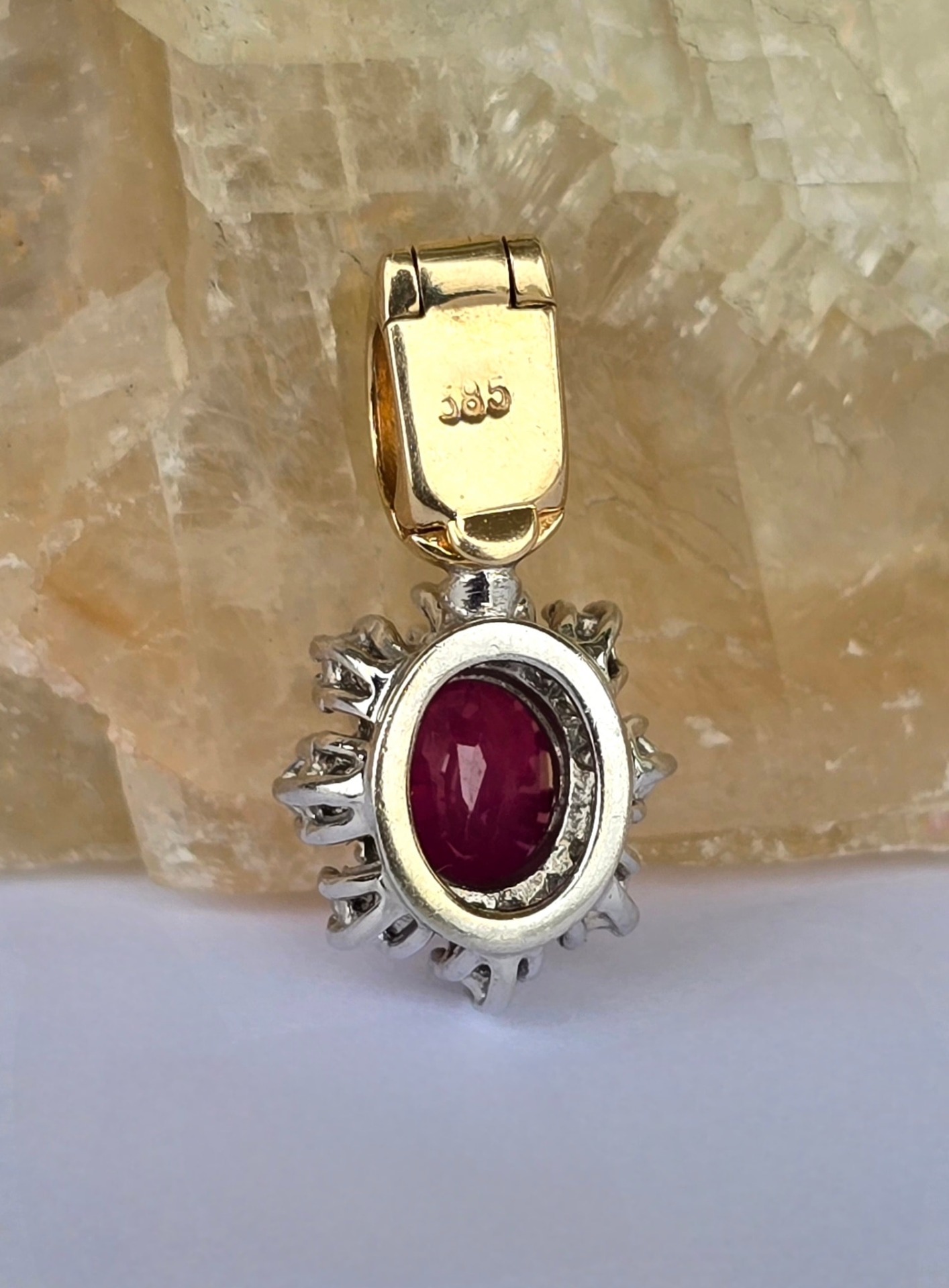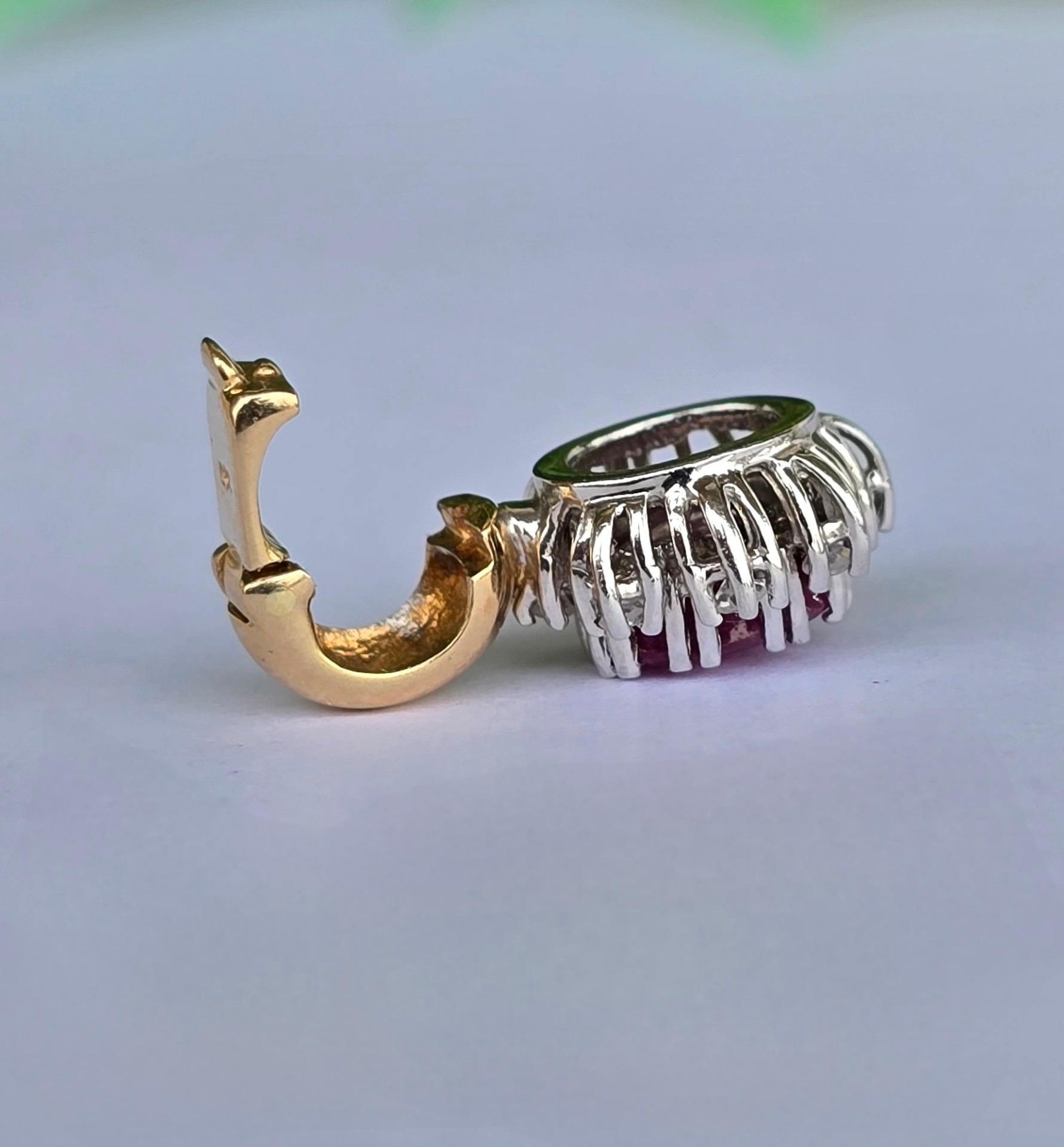 Pandantiv vechi superb, din aur de 14K, cu rubin și 8 diamante naturale.