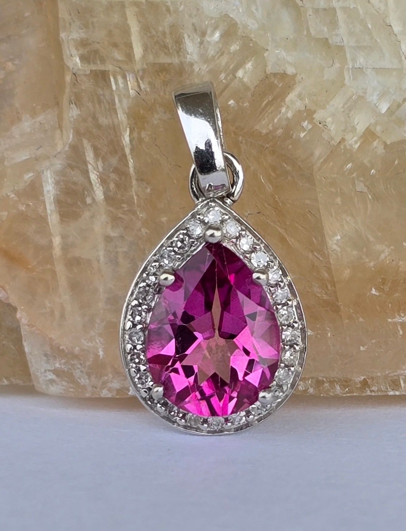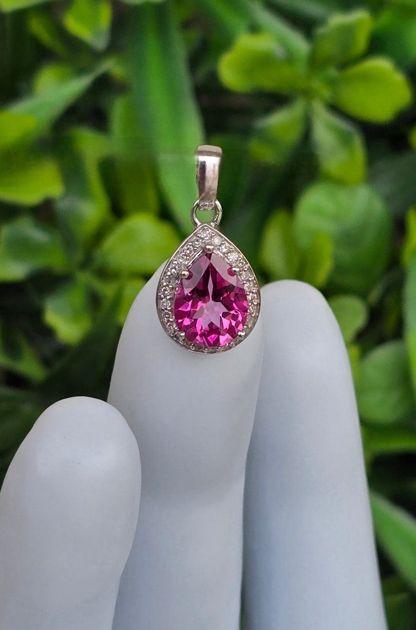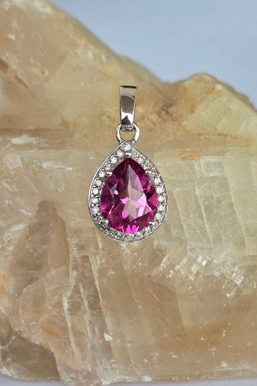 Pandantiv vechi superb, din aur de 9K, cu topaz roz și 26 diamante naturale (anii 1990-2000, Londra, Anglia).