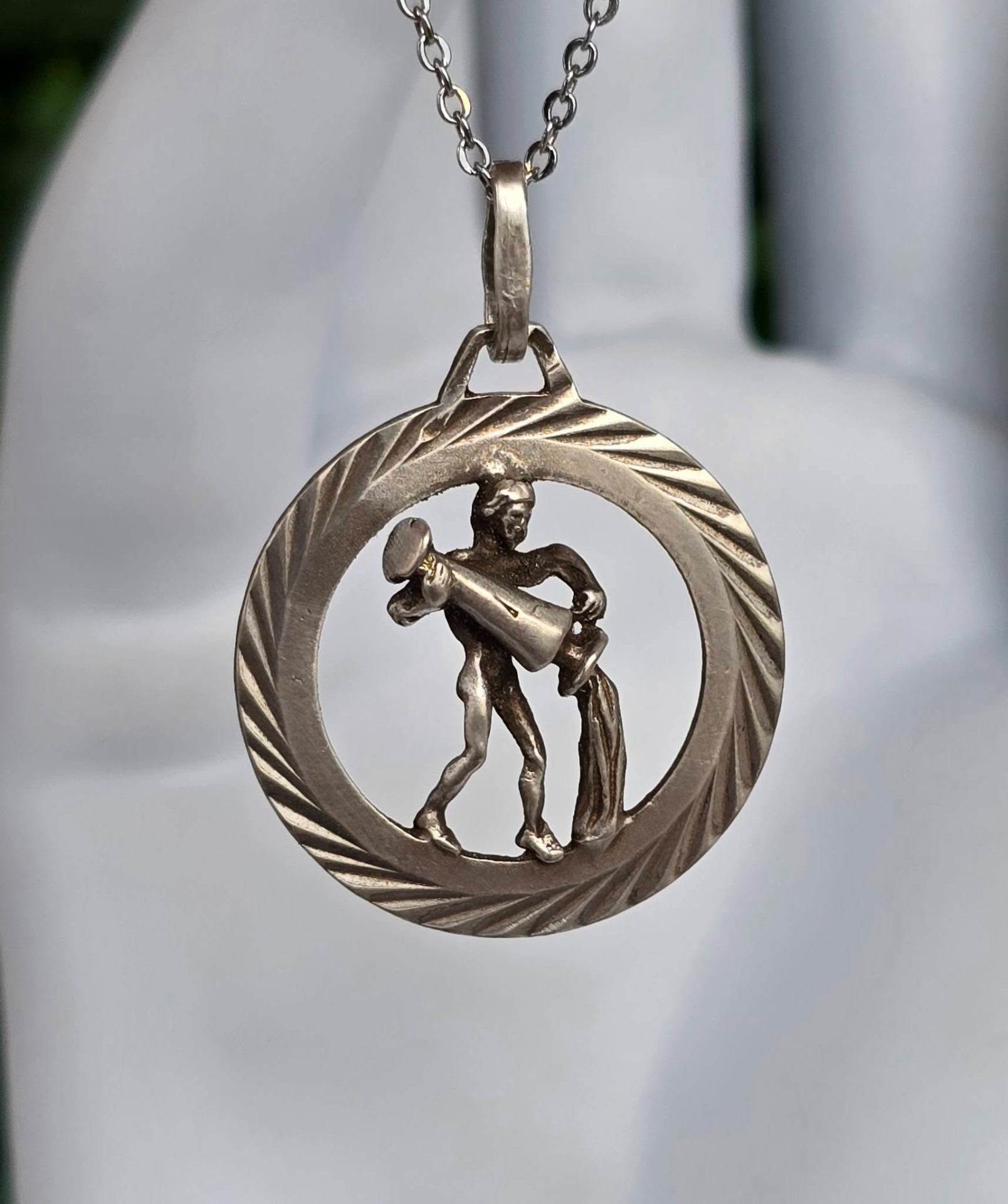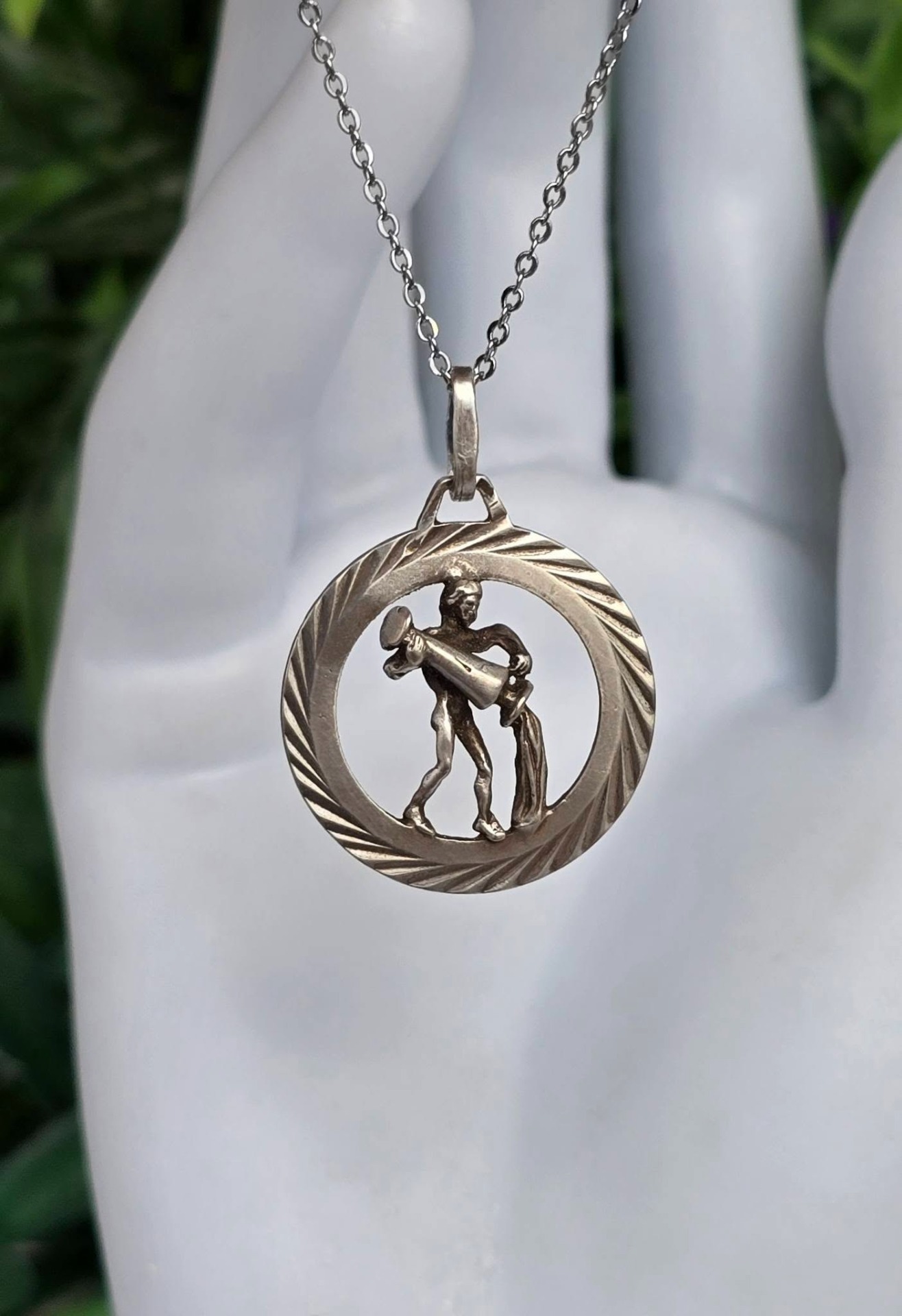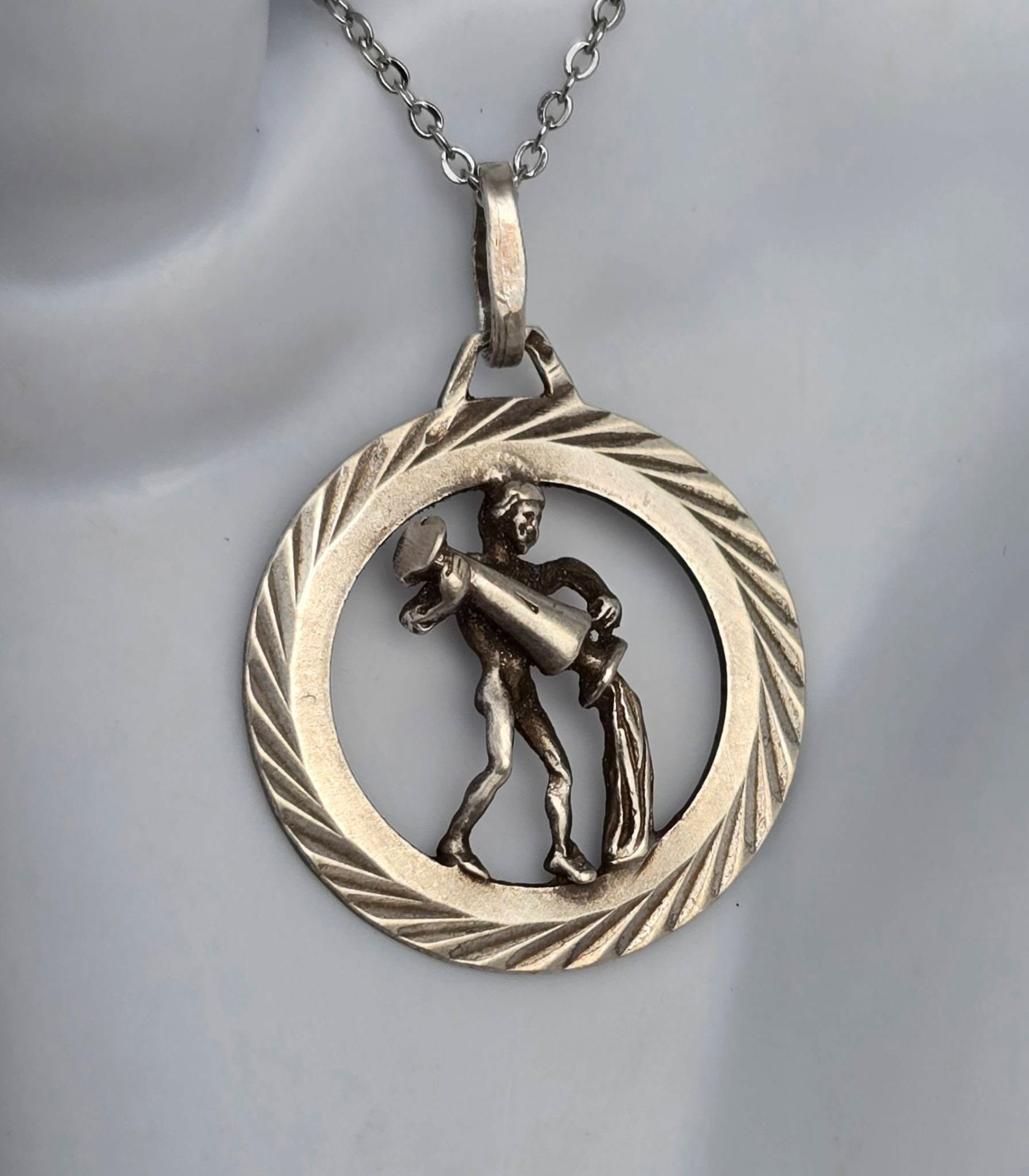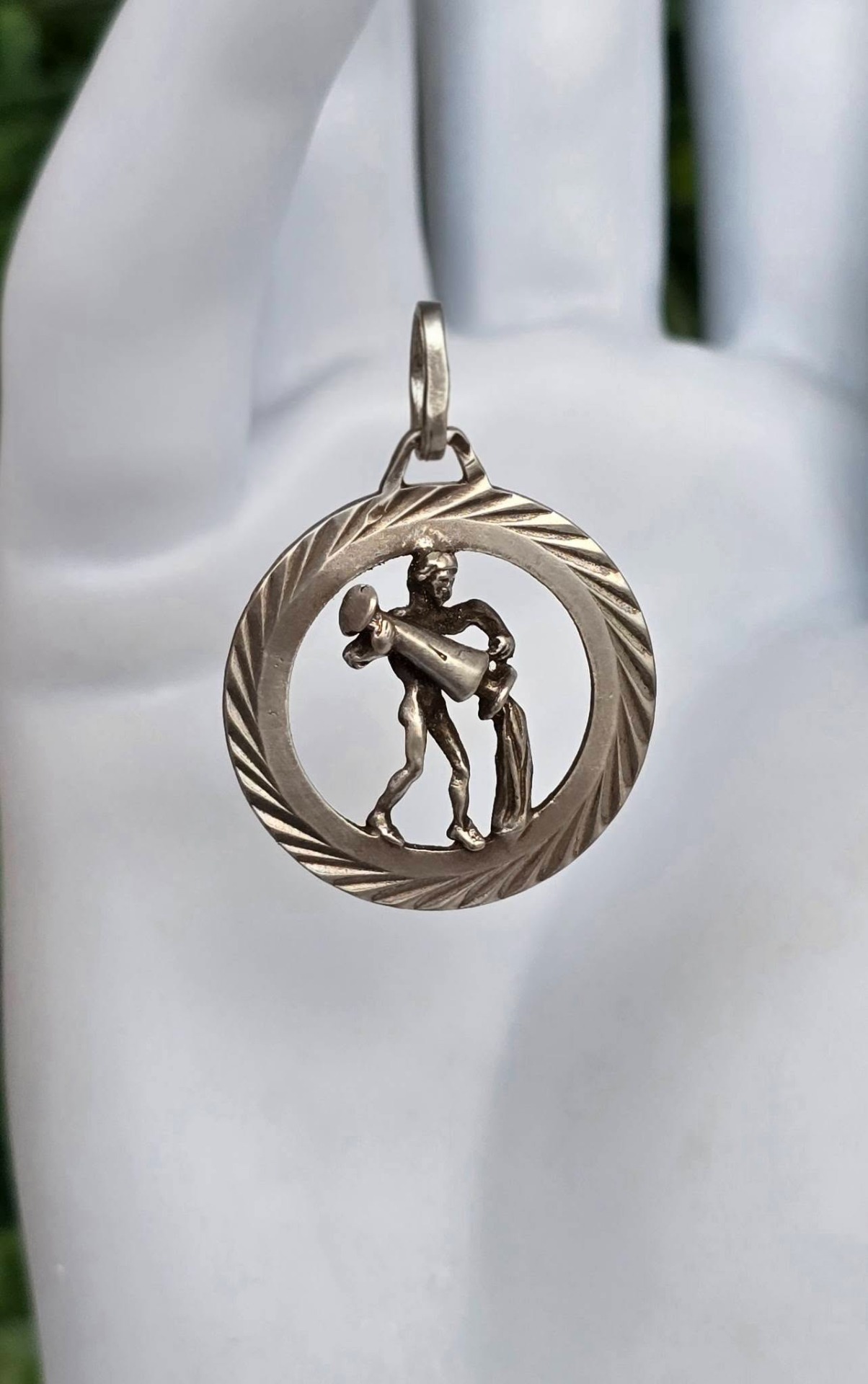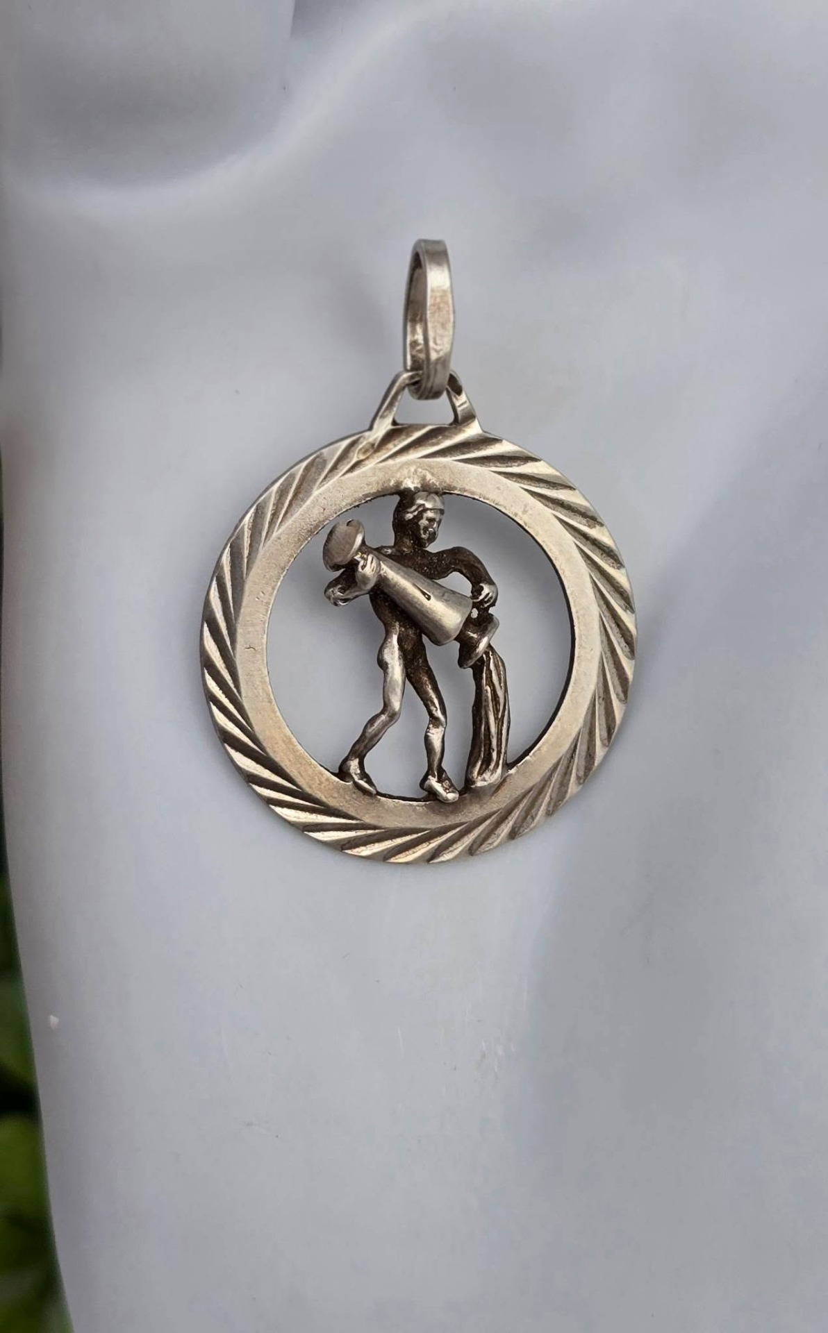 Pandantiv vechi zodiacal "Vărsător" , din argint, frumos lucrat manual
