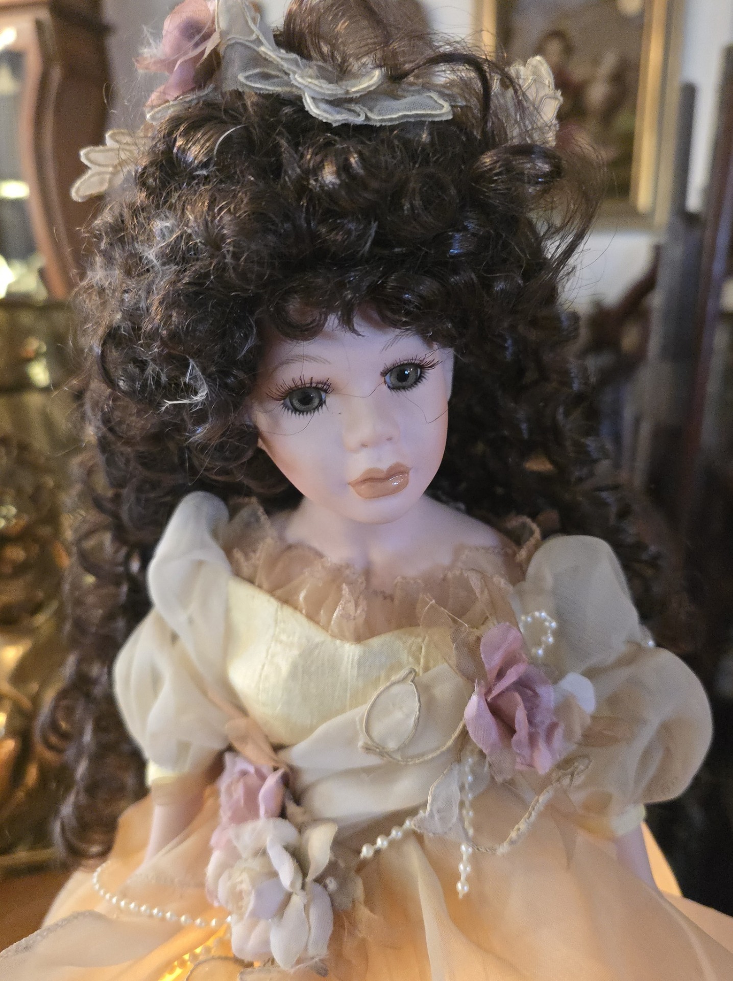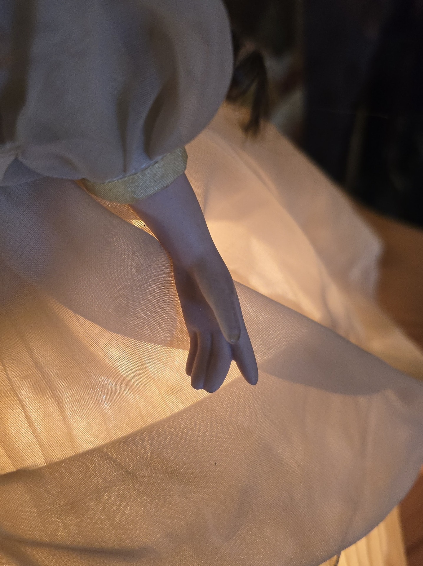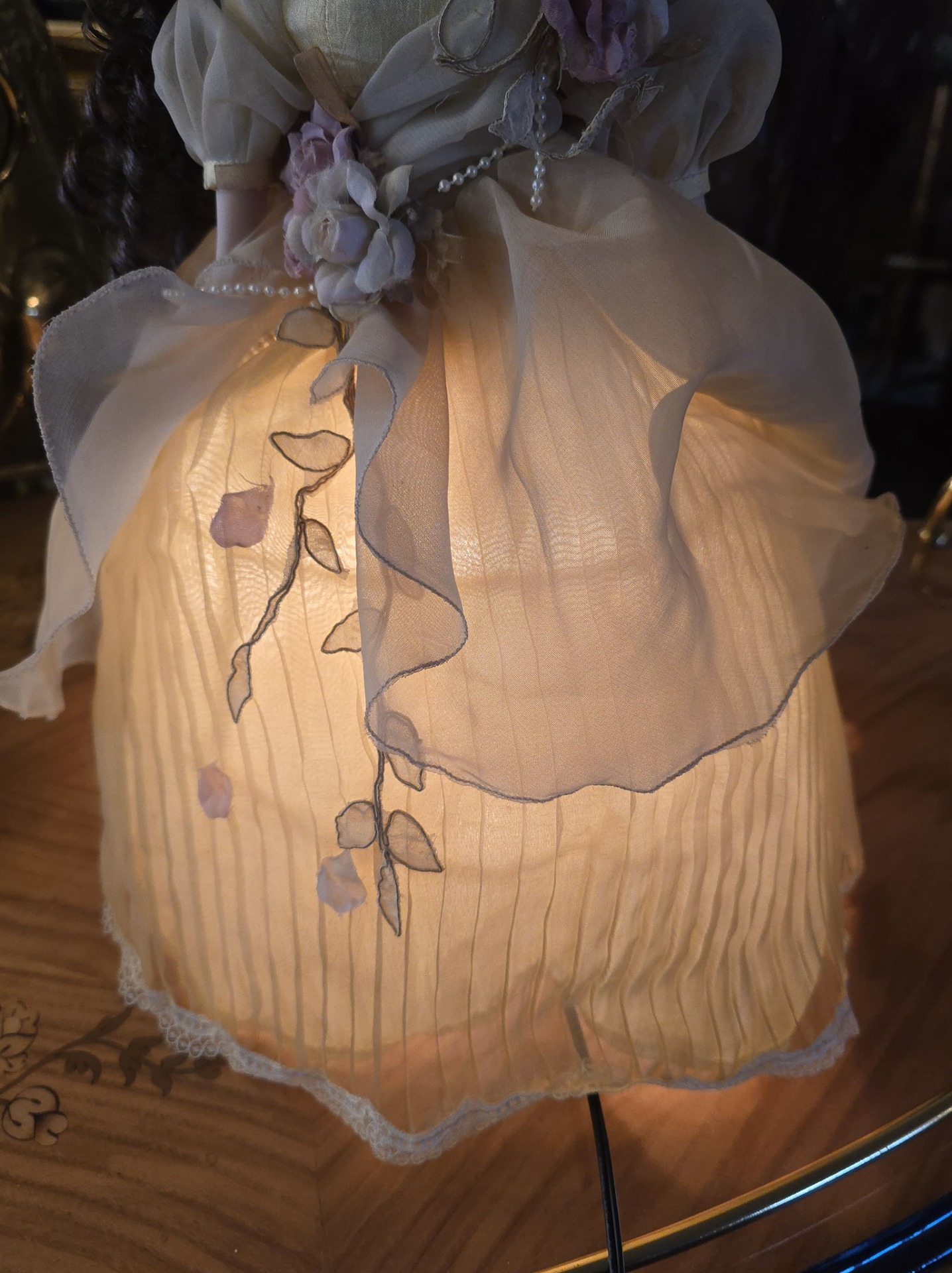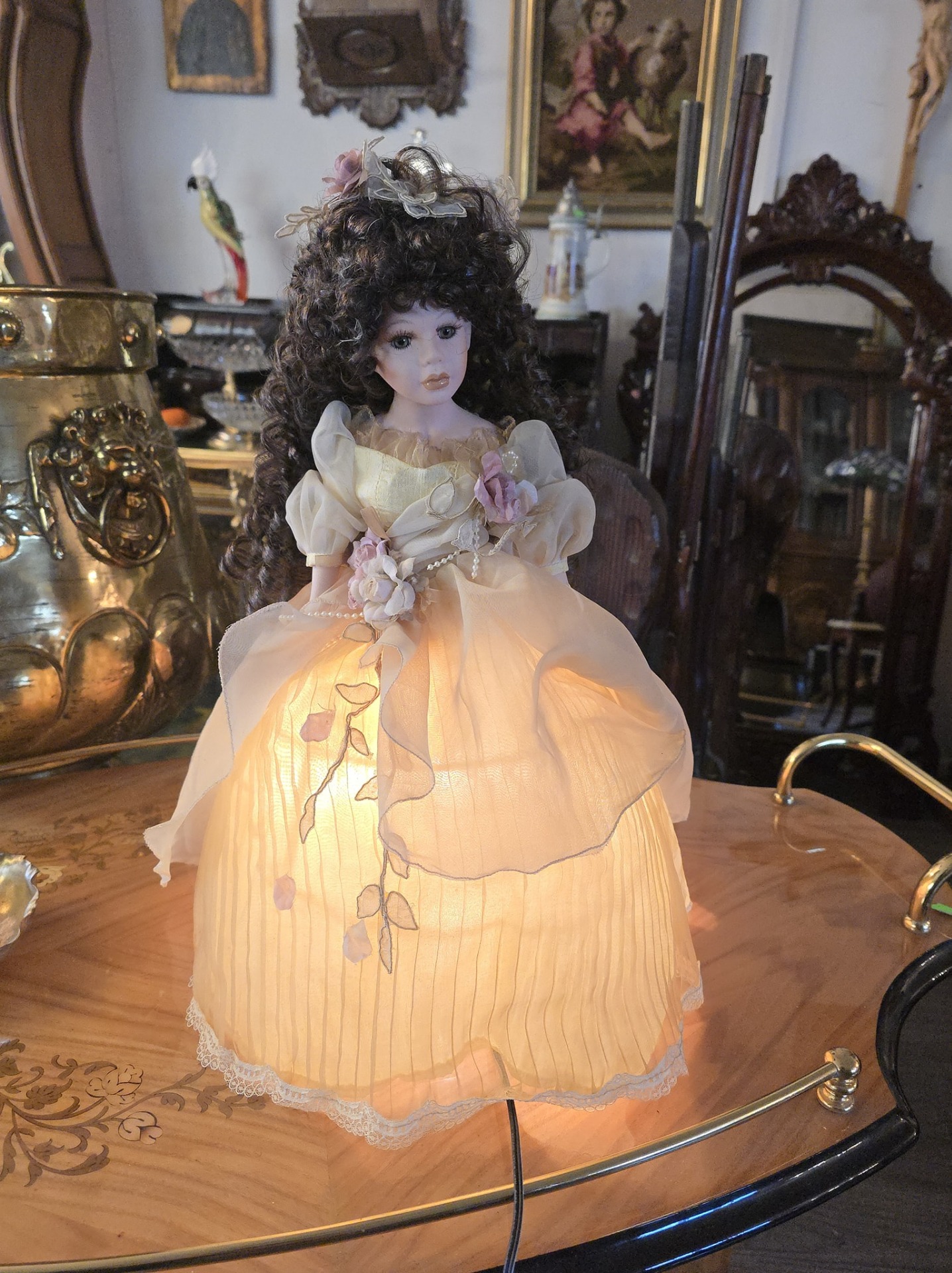 păpușă-lampă” (sau boudoir doll lamp), un obiect decorativ care combină estetica unei păpuși de porțelan cu funcționalitatea unui corp de iluminat