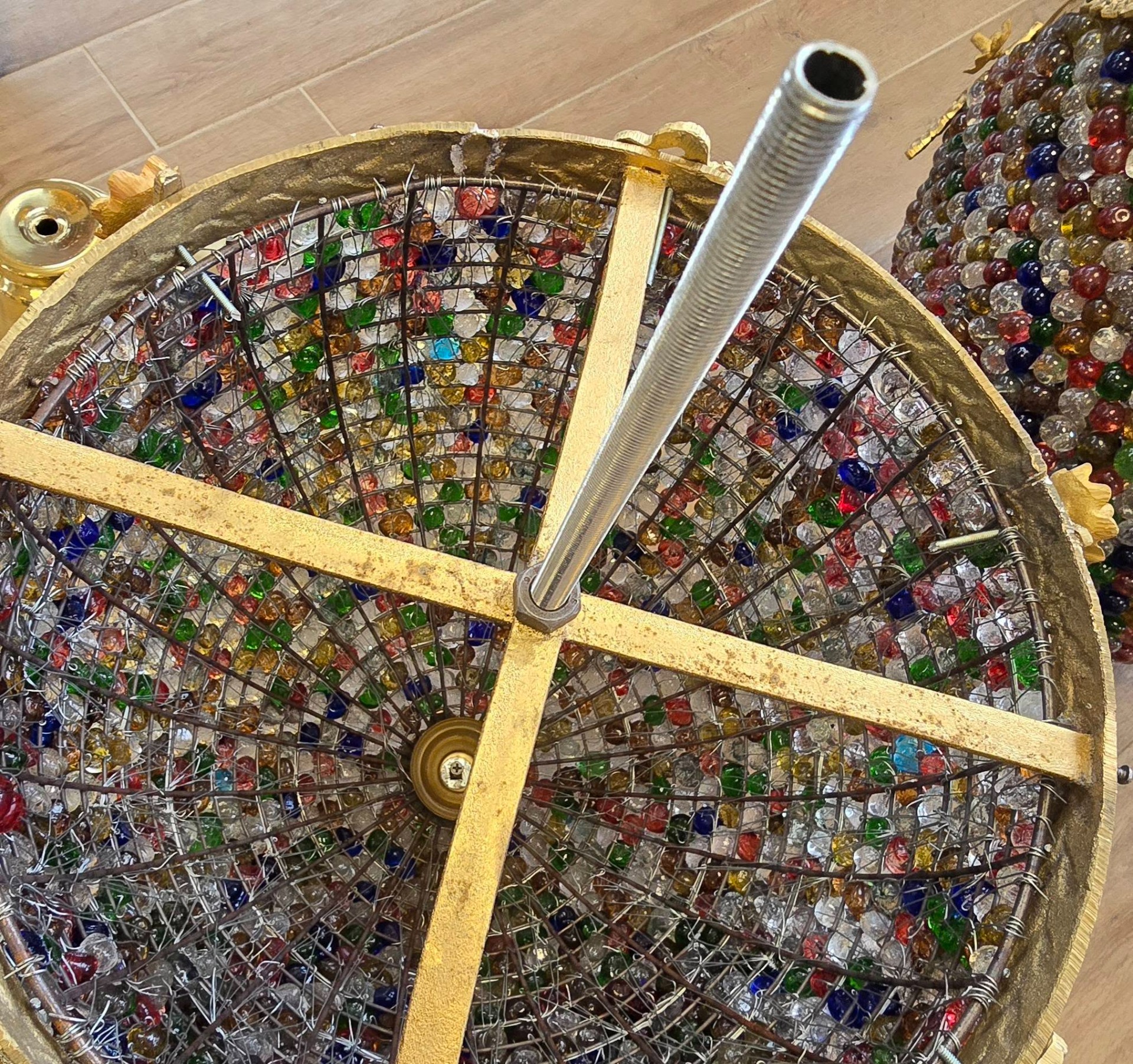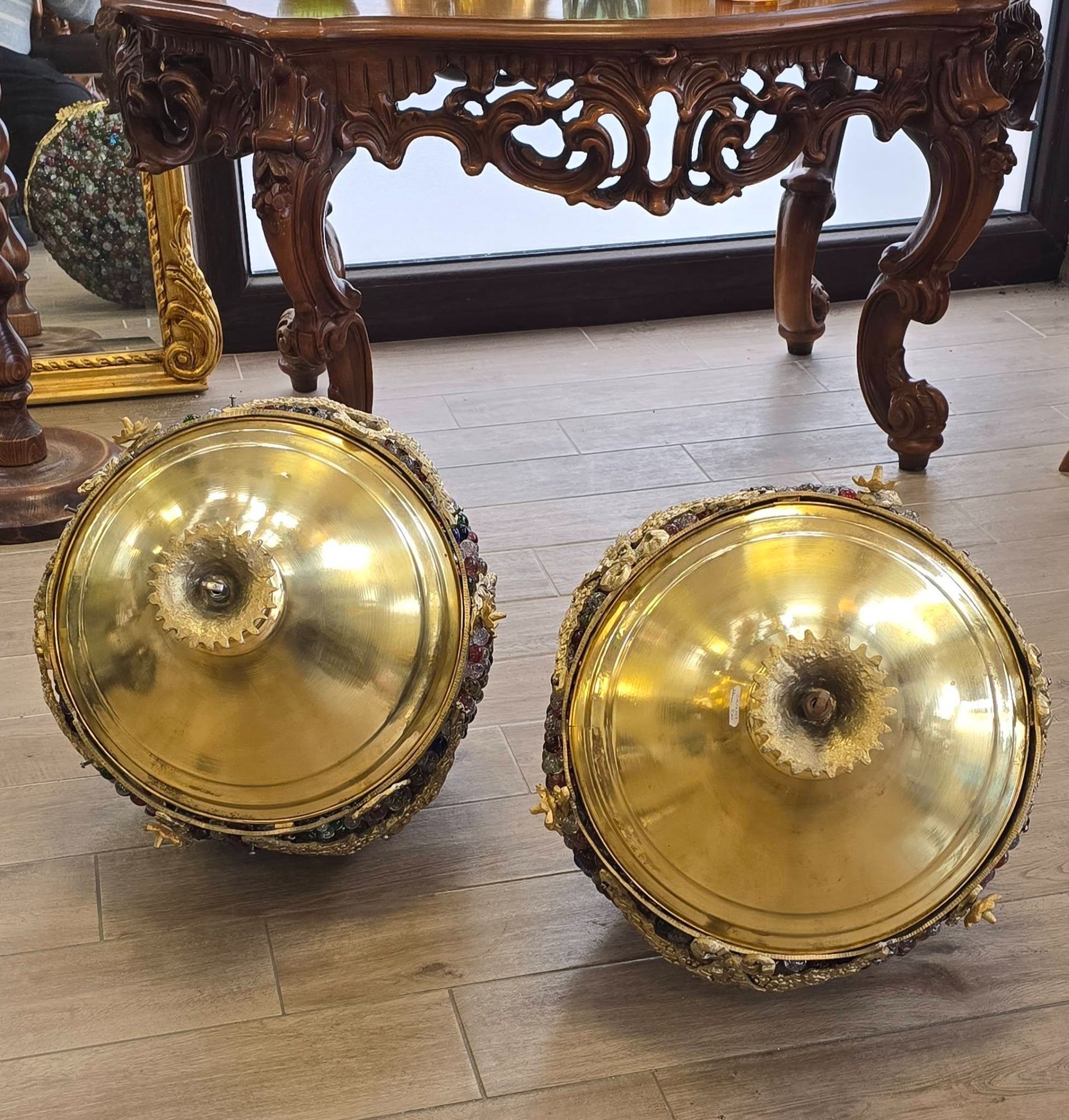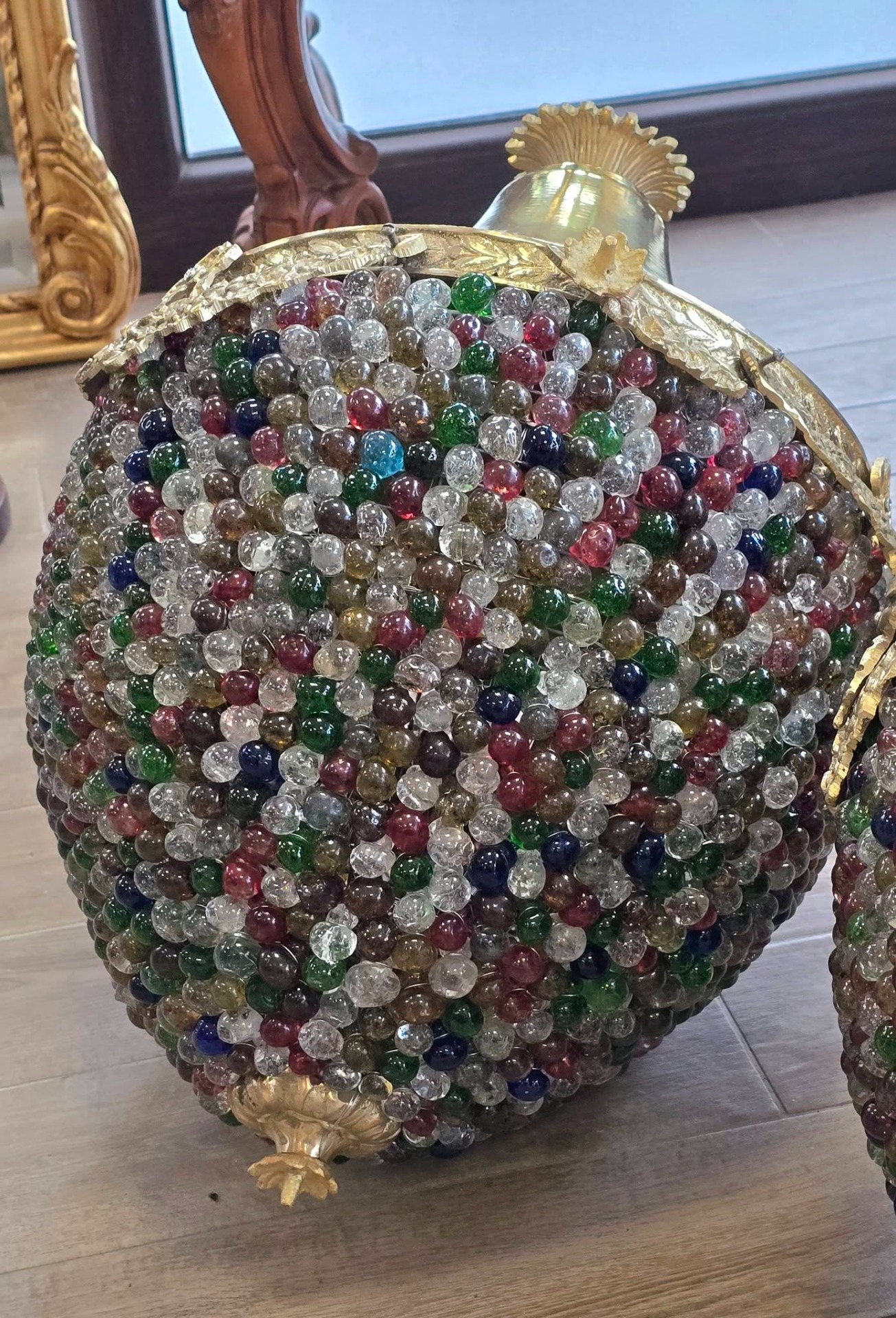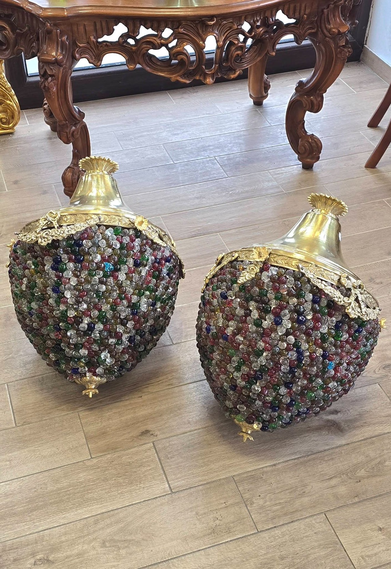 Pereche de candelabre "empire" din bronz și cristale multicolore.