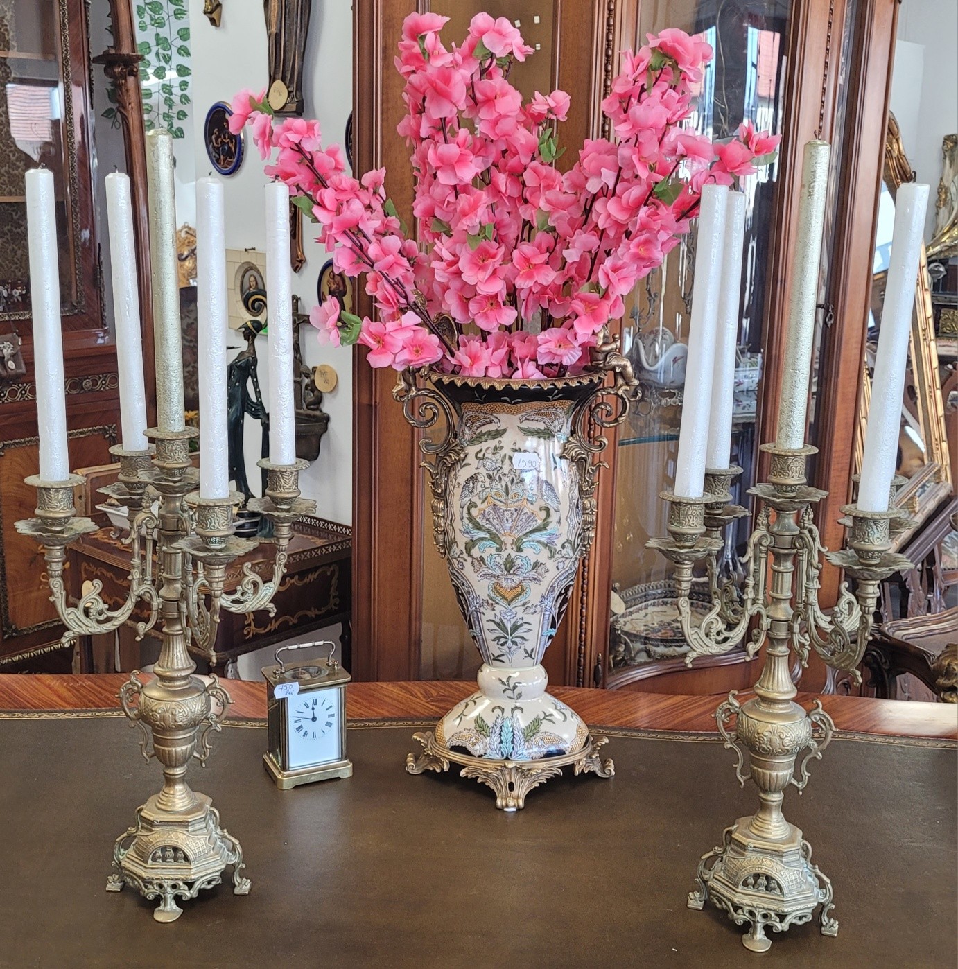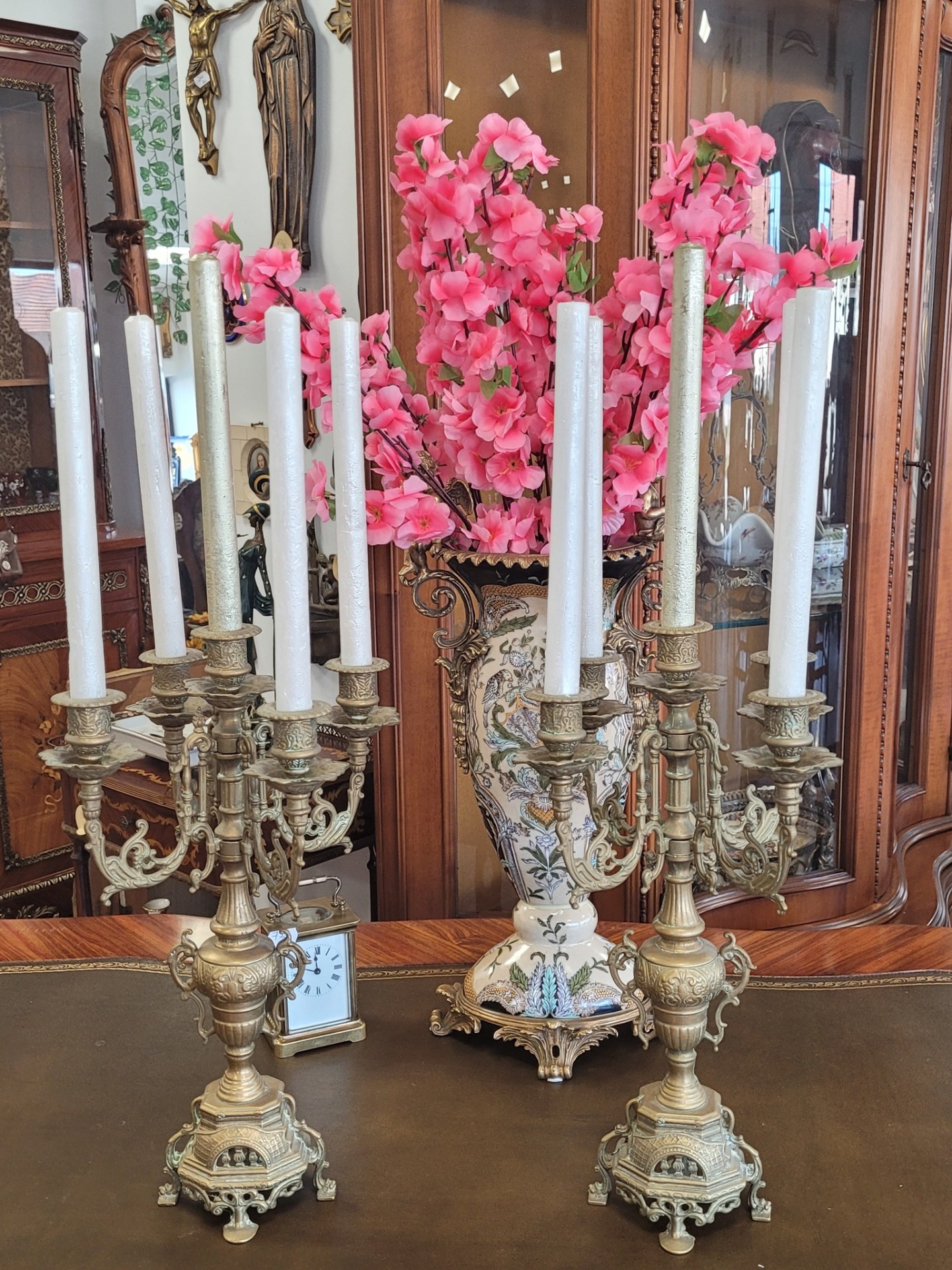 Pereche de sfeșnice din bronz, stil Ludovic al XV-lea, cu 6 brațe.