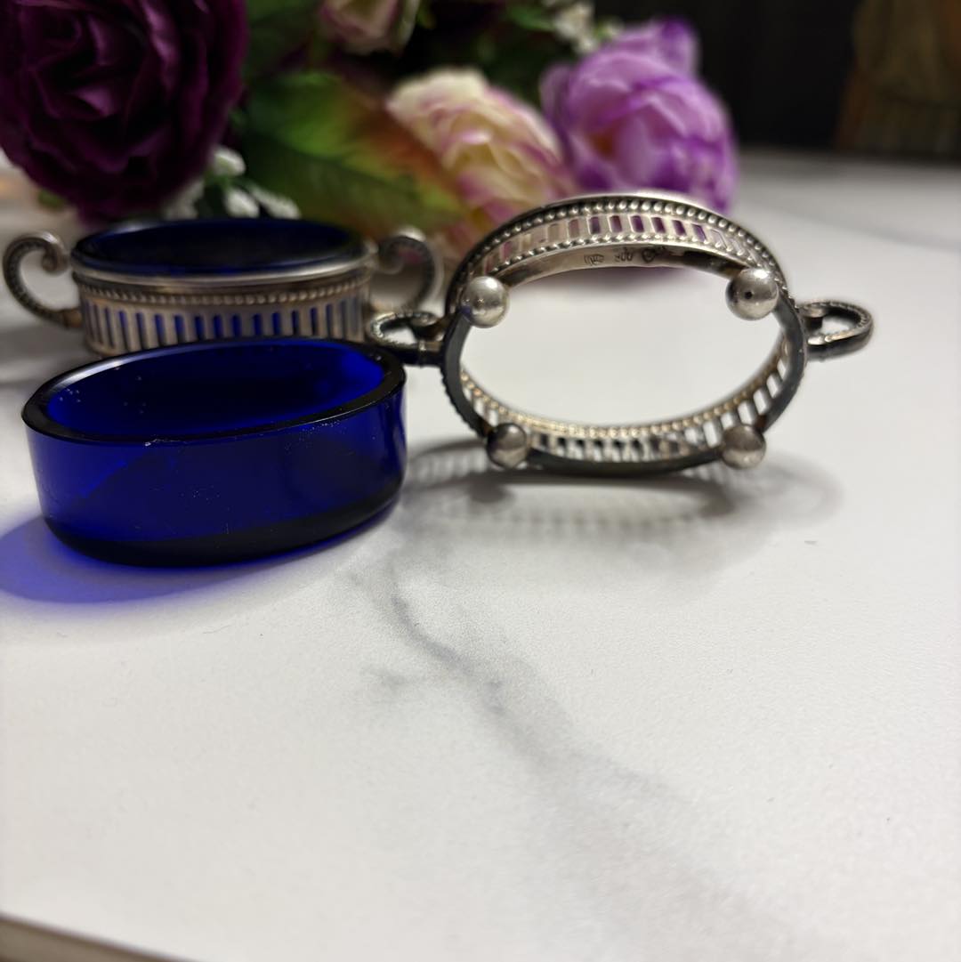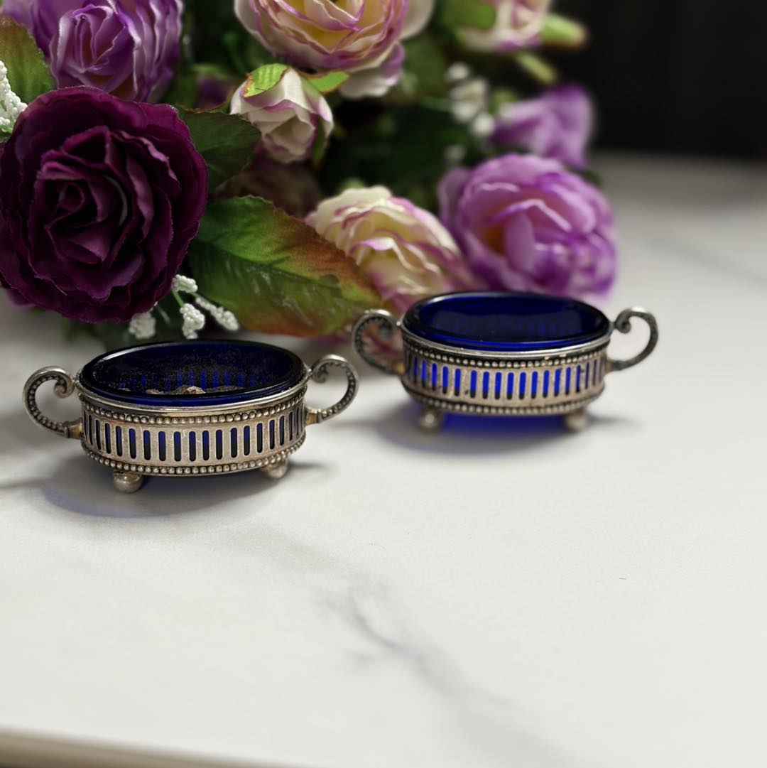 Pereche de Solnițe Regale din Argint Masiv și Cristal Cobalt .